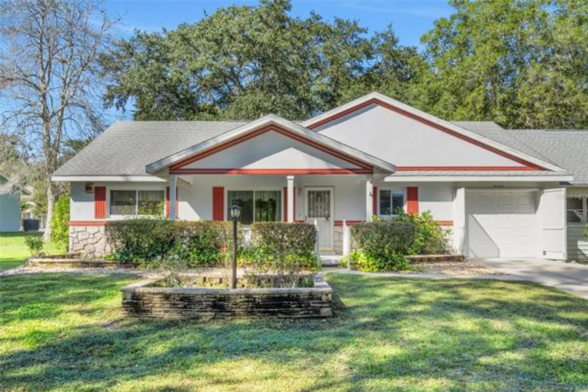 Located on a lovely tree lined street in the Friendship Colony of On Top of the World, this end unit villa has a covered front porch, a great layout, screened lanai and fenced in back yard. This Birmingham model offers 1369 square feet, 2 bedrooms, 2 full baths, space to utilize as a great room, dining/breakfast area or working space, stainless steel kitchen appliances, extra storage in the kitchen, spacious walk-in closet in the primary bedroom, 2016 roof and 2017 electric water heater. Interior features include engineered hardwood flooring in the kitchen, bedrooms and living areas. The screened lanai offers endless possibilities. Enjoy it for relaxing and entertaining, as a craft room or workshop. Just off of the lanai is an enclosed area that can be used for golf cart parking. This is a fantastic opportunity to bring your vision and make this villa your Florida lifestyle dream home! We invite you to schedule a showing today! So much to love about this home and community! On Top of the World is Ocala's desirable active 55+ community and a favorite of golf enthusiasts. Community amenities include 2 outdoor swimming pools & 1 indoor, 2 fitness centers, tennis, pickleball, bocce, shuffleboard, corn hole, horse shoes, billiards, archery range, library, dog parks, areas designated for remote control flying and race cars, restaurant and pub and over 100 clubs. HOA fee includes lawn care, trash/recycling, basic Spectrum Cable, roof repair, exterior painting every seven years, irrigation water, exterior maintenance and structure insurance, 24/7 monitored gates.