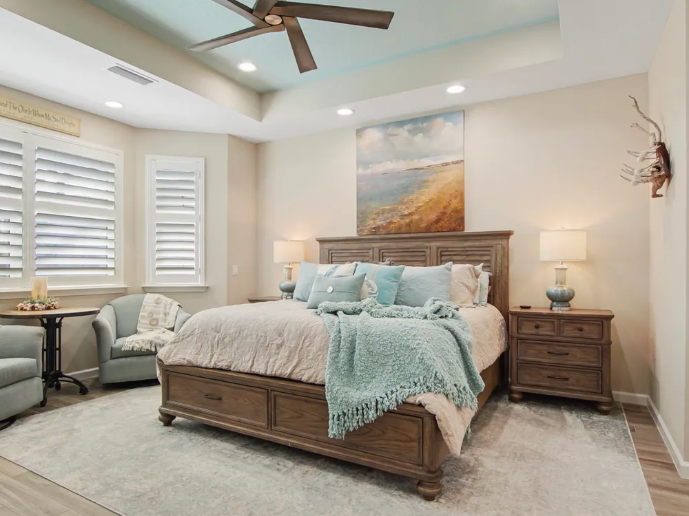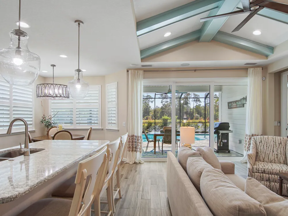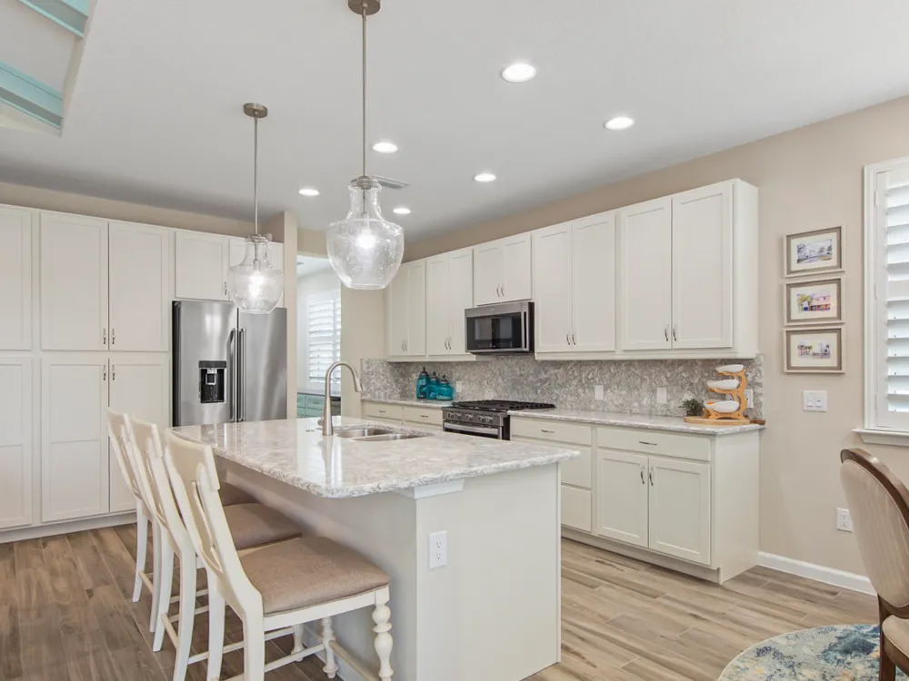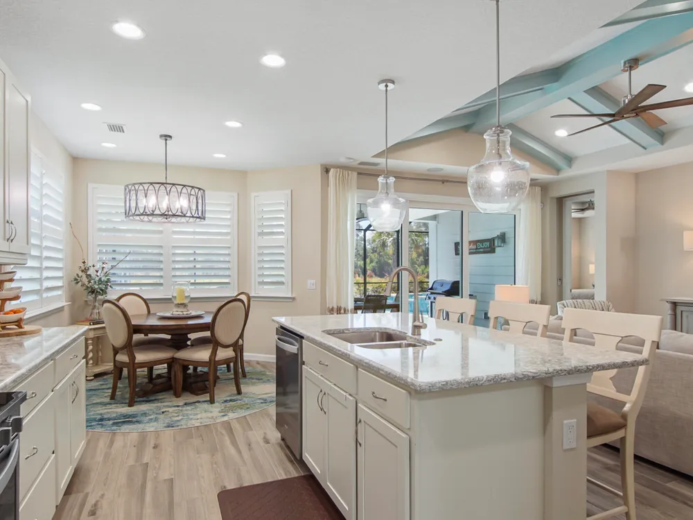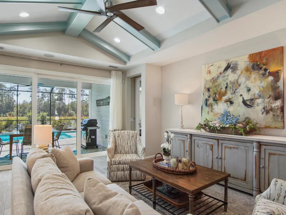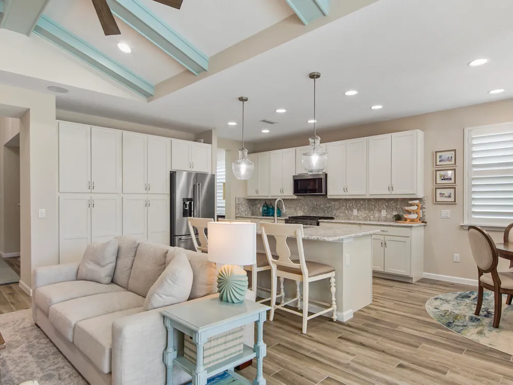Welcome to your slice of paradise in Latitude Margaritaville Panama City Beach! This stunning Parrott Model Cottage perfectly blends relaxed coastal living with upscale comfort. Step inside to find an oversized foyer that opens into a bright, open-concept living area featuring tile flooring throughout, beamed cathedral ceilings, and a seamless flow that's ideal for entertaining or quiet evenings at home. The gourmet kitchen boasts a large center island, stainless steel appliances, and a gas range that's sure to delight the home chef. The spacious master suite offers tray ceilings, his and her closets, and a luxurious en-suite bath with a large walk-in tiled shower, double vanity, and soaking tub. The home also includes a dedicated office and bonus room, giving you plenty of flexible space for guests, hobbies, or relaxation. Step outside to your own backyard oasis featuring a heated pool and jetted hot tub, all overlooking peaceful waterfront views. Whether you're hosting friends or enjoying a quiet sunset, this space is pure bliss. Ideally located near the main clubhouse and resort-style amenities, and just a short distance from the upcoming marina, this home offers the perfect mix of luxury, convenience, and coastal charm. Your Margaritaville lifestyle awaits—schedule your private showing today!