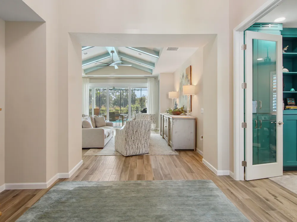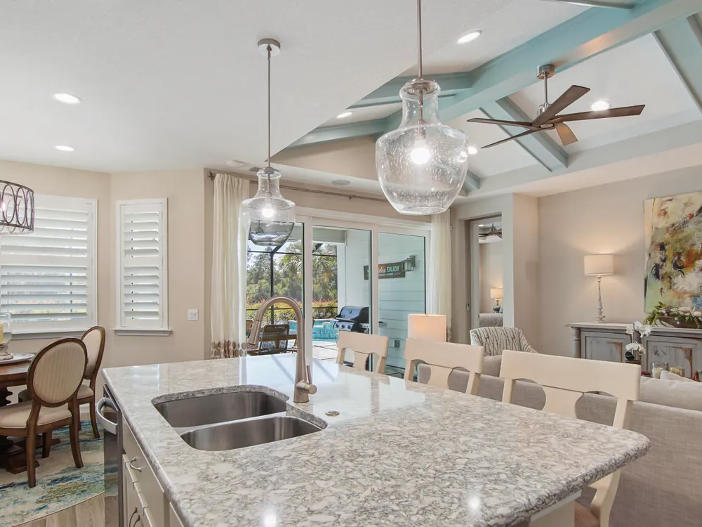 - Beamed Ceilings, Cathedral Ceiling(s), Kitchen Island, Recessed Lighting, Split Bedrooms, Entrance Foyer