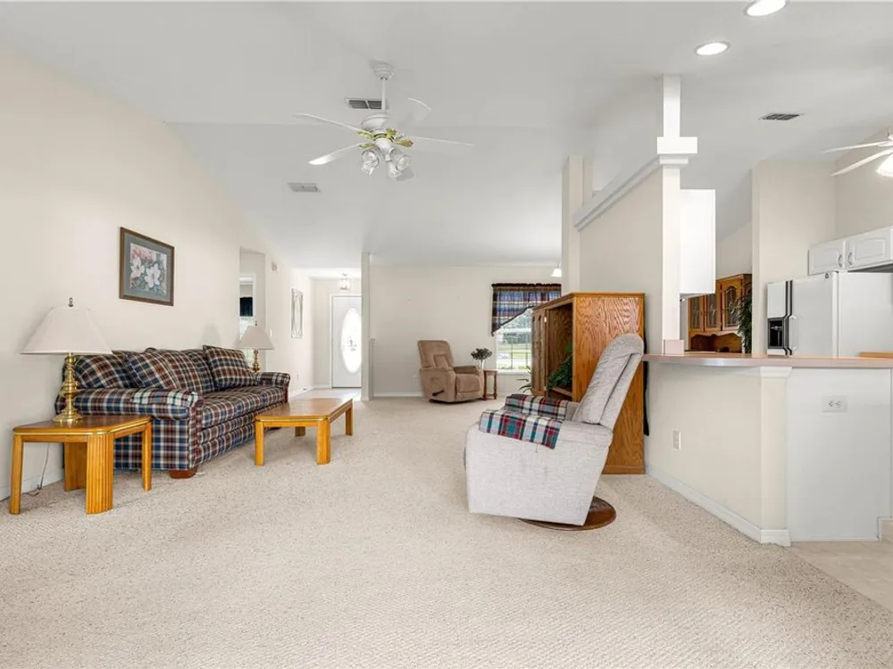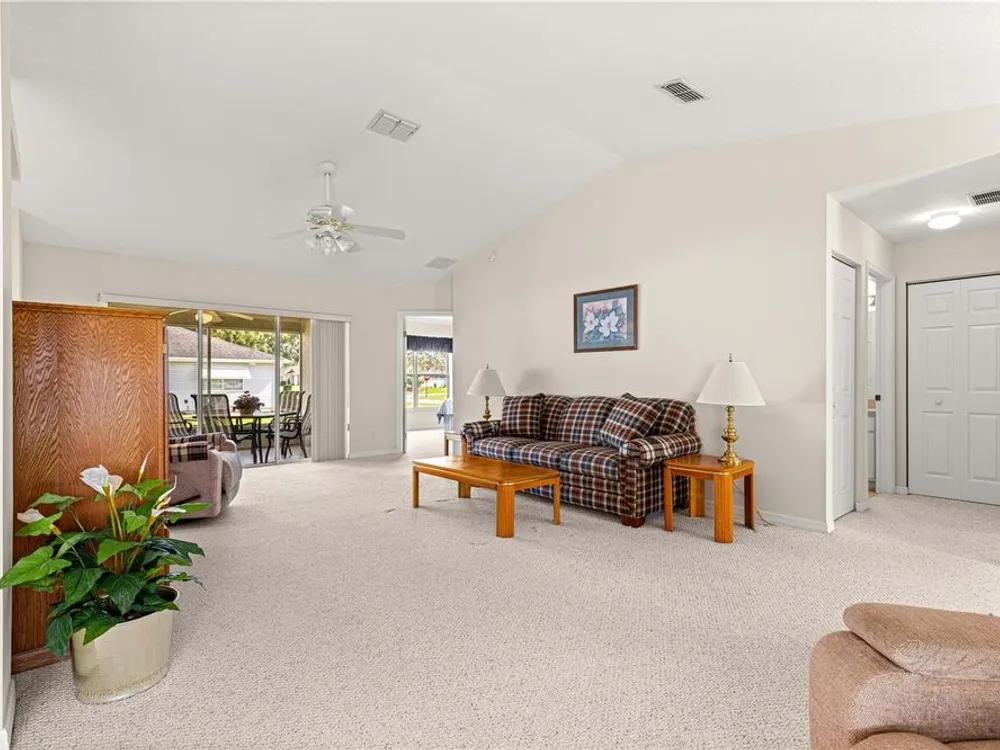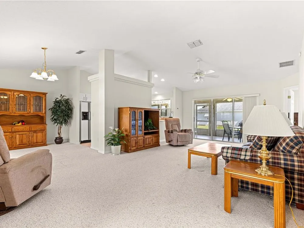 Be sure to preview this 2003 yr built "Oleander" model home featuring 3 BR 2BA and was built by one of Ocala's premier builders Triple Crown Homes. Over 1,700 sq ft of living area. Open Floor plan. The Living Room, Dining area and Kitchen are all open to each other with glass slider doors opening into the screened Lanai that includes an access door to the open patio outside. The kitchen offers plenty of cabinets along with plenty of prep area and is in close proximity to the Laundry room and Guest BR #1 which has two closets and was used as an office. The Primary Bedroom features a walk in closet, vanity sink and a private enclosed tiled shower. The 2nd Guest Bedroom also features a walk in closet and is in close proximity to the guest bath. Folks, if you are looking for a clean ready to move into home that is perfectly situated on a corner lot this property is for you. The two car garage includes an extra 8 ft along with a side access door. The Roof was replaced 2023. The AC replaced 2017. The HOA ($186 monthly) includes water, sewer and trash removal along with the use of a very impressive clubhouse, huge swimming pool, activities to meet new friends and neighbors, fitness room and a Bowling Alley. Marion Landing allows golf carts and has a super SW Ocala location to hospital, professional offices, restaurants and shopping. Take care everyone and we hope to see you soon.