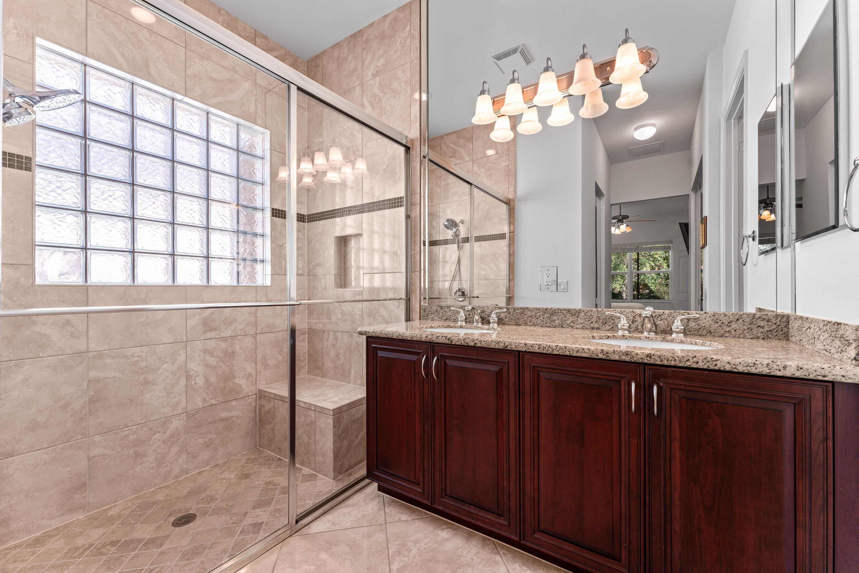 - Entrance Foyer, High Ceilings, Pantry, Walk-In Closet(s), Split Bedrooms, Impact Glass, Living/Dining Room, Kitchen/Dining Combo, Snack Bar, Entry Level Living Area, Dual Sinks, Main Level Primary, Separate Shower
