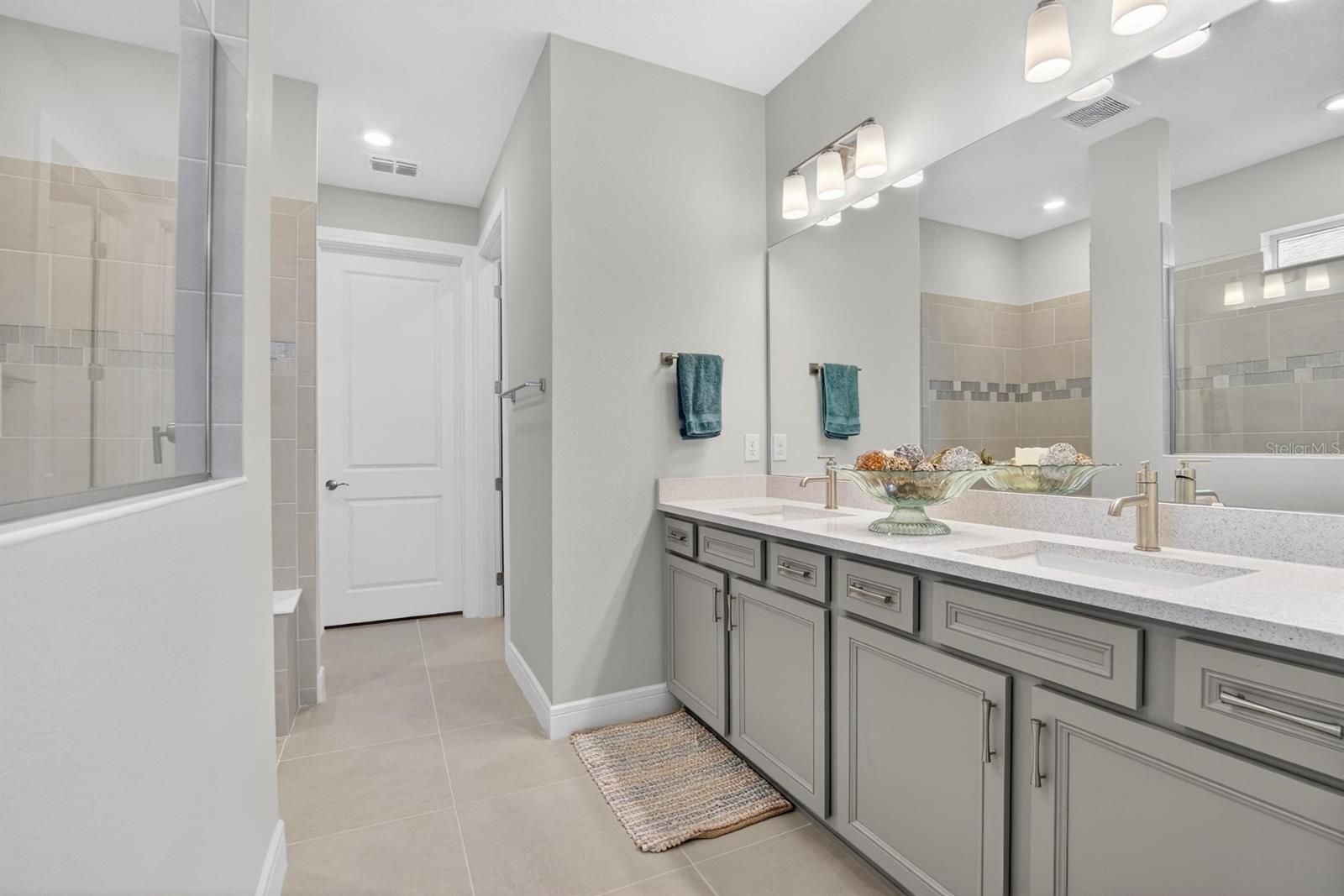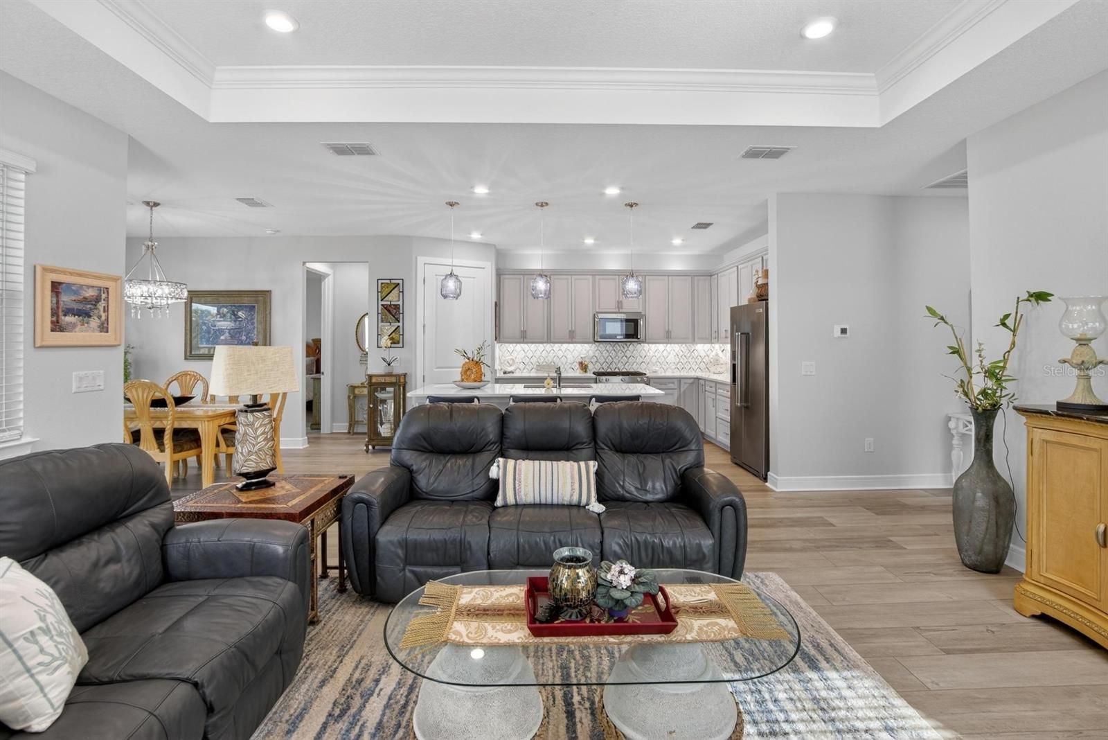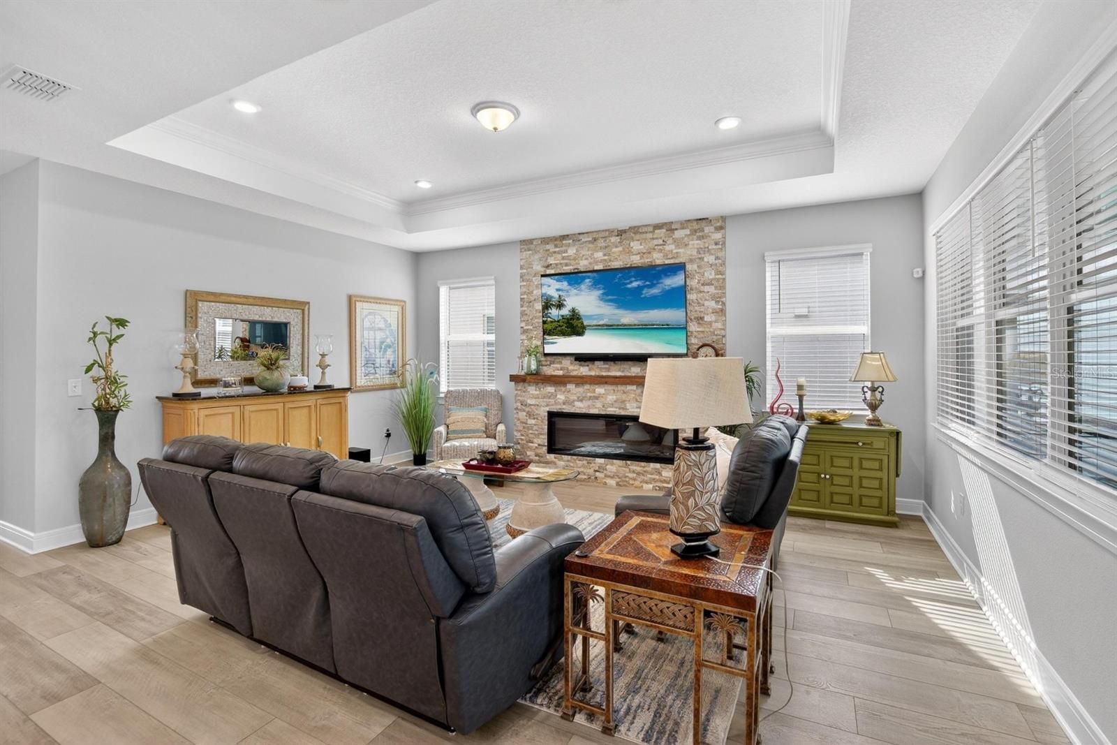 We PROUDLY present to you this MAGNIFICENT WATERFRONT BEAUTIFUL HOME located in the FANTABULOUS community of DEL WEBB BAYVIEW!! LIVE LIKE YOU'RE ON VACATION EVERY DAY THE BAYVIEW WAY!! Discover FIRST CLASS LUXURY LIVING and the area's BEST 55+ GATED & GOLF CART Community with PRIVATE ROADS, OUTSTANDING AMENITIES, ACTIVITIES GALORE, RESORT STYLE POOL with CABANA'S, HOT TUB, 25,000SQFT AMENITY CENTER, OUR OWN RESTAURANT "THE SAILFISH GRILL" which includes FULL BAR INSIDE & OUT, FLAT SCREEN TV'S, POOL TABLES, BAND SHELL AREA for LIVE MUSIC & MOVIE NIGHTS, DOCK on WATER, FIREPLACE SITTING AREA, PICKLEBALL, BOCCE BALL, SHUFFLEBOARD COURTS, WATERFALLS GALORE THROUGHOUT COMMUNITY, WALKING TRAILS, CORN TOSS, DOG PARK, FITNESS CENTER and MUCH MORE!! ARRIVING at YOUR NEW HOME, this popular MYSTIQUE MODEL, notice the STONE FRONT EXTERIOR, NEUTRAL COLORS, 2 car garage with TANDEM PARKING (golf cart/small car/workshop area), PAVERED DRIVEWAY & WALKWAY, DOORBELL CAMERA & BEAUTIFUL CUSTOM GLASS FRONT DOOR!! ENTERING INTO YOUR NEW HOME, the owner's ENHANCED this MODEL BY CREATING CUSTOMIZED FEATURES GIVING it a CLASSY & WELCOMING AMBIANCE DESIGNED & BUILT BY THE QUALITY BUILDER PULTE, this home captures the essence of COMFORTABLE & SPACIOUS LIVING!! FEATURING 2 BEDROOMS, 2 BATHS, DEN/OFFICE/STUDY (could be a 3RD BEDROOM), 1871SQFT, OPEN FLOOR PLAN, IMPACT WINDOWS/SLIDERS (for security & peace of mind), LUXURY VINYL FLOORING THROUGHOUT, FANTASTIC WATER VIEWS FROM NEARLY EVERY ROOM, NEUTRAL COLOR PALETTE INSIDE, SPLIT BEDROOMS and so MUCH MORE!! OUR GRAND LIVING/GATHERING area features a STUNNING CUSTOM STONE ELECTRIC FIREPLACE, TRAY CEILING, LOT'S OF WINDOWS & SLIDERS for NATURAL LIGHT & those STUNNING WATER VIEWS, OUR CHEF INSPIRED KITCHEN includes UPGRADED CABINETS, QUARTZ COUNTERTOPS, UNIQUE TILED DESIGNER BACKSPLASH, UPGRADED APPLIANCES, CENTER ISLAND, LIGHTS ABOVE & UNDER CABINETS, PULL-OUT DRAWERS, SOFT-CLOSE UPPERS & LOWERS, RECESSED LIGHTING & PENDANT LIGHTS ABOVE ISLAND and a WALK-IN CLOSET PANTRY!! THE DINING/CAFE AREA FEATURES 2 SETS OF SLIDERS, OUR PRIMARY/OWNERS SUITE is HUGE, FANTASTIC WATER VIEWS, WALK-IN CLOSET, LINEN CLOSET and OOH-LA-LA THE GORGEOUS BATHROOM...OVERSIZED WALK-IN SHOWER (wheelchair & walker friendly if needed), UPGRADED BATH TILE ACCENTS, BENCH, PRIVATE TOILET AREA, DUAL SINKS and VANITY WITH SOFT CLOSE DOOR/DRAWERS and SLEEK QUARTZ TOPS!! GUEST ROOM is SPACIOUS, next to our GUEST BATH which includes SLEEK QUARTZ COUNTERTOP, SOFT CLOSE DOORS/DRAWERS and BEAUTIFUL UPGRADED TILED SHOWER/TUB!! OUR DEN/STUDY/FLEX AREA includes DUAL GLASS DOORS, the INDOOR LAUNDRY AREA IS SPACOUS INCLUDING UPGRADED WASHER/DRYER that STAY, ALSO EXTRA STORAGE AREA WITH FULL SIZED FRIDGERATOR that STAYS AND OWNERS HAVE PURCHASED CABINETS WITH STONE COUNTERTOPS FOR THE LAUNDRY ROOM (have not been installed yet but can be if necessary)!! NEXT UP, LE'TS CHECK OUT THAT L-SHAPED LANAI AREA! PERFECT FOR ENTERTAINING, GRILLING WITH FAMILY & FRIENDS or PERHAPS just quietly sitting...enjoying peace & tranquility, you will SURELY ENJOY THE STUNNING EXPANSIVE WATER VIEWS OF THE LAKE, BEAUTIFUL WILDLIFE, SUNSETS and the EXTRA COMFORT DESIGNED FOR YOUR ENJOYMENT!! HOA INCLUDES ALL EXTERIOR GROUNDS MAINTENANCE INCLUDING MOWING, SHRUBS, TRIMMING, CABLE/INTERNET, RECLAIMED WATER & IRRIGATION!! CALL US TODAY CAUSE YOU KNOW WHAT WE SAY...if you SLEEP ON IT, you may not SLEEP IN IT!! FURNISHINGS AVAILABLE FOR SEPARATE PURCHASE!