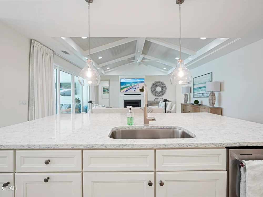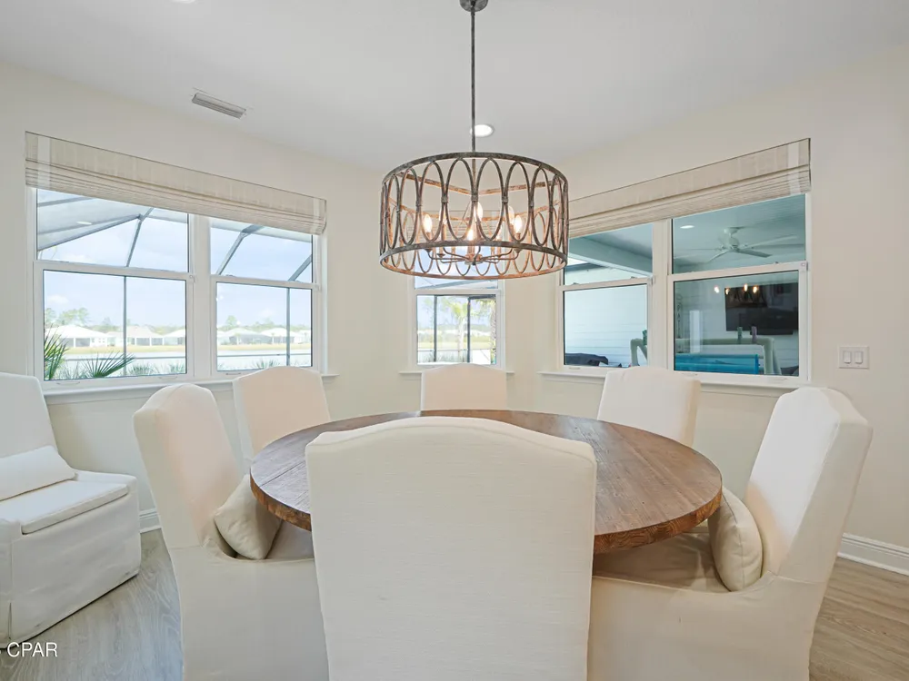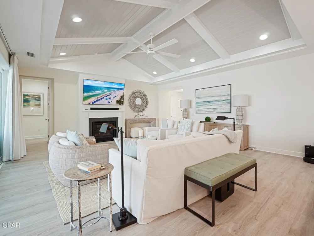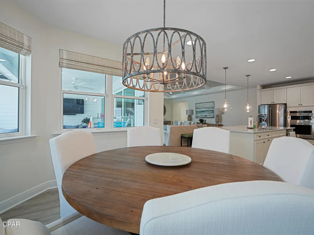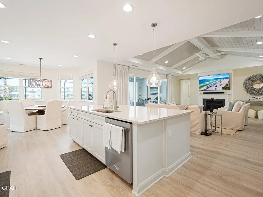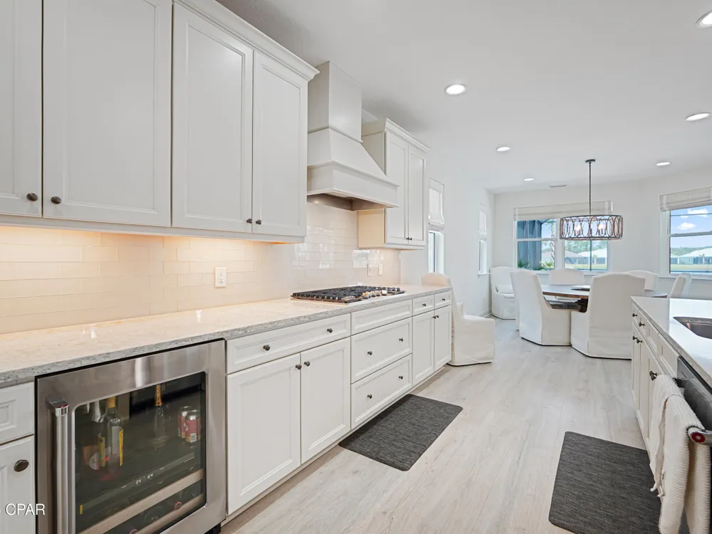 Discover this beautifully furnished Aruba model, thoughtfully designed for elegant coastal living and effortless indoor-outdoor enjoyment. Perfectly positioned to capture sparkling pond views, this home exudes sophistication, warmth, and style from the moment you step inside. The open-concept living space features stunning wood beams, a shiplap ceiling, and a fireplace feature wall, creating a grand yet inviting atmosphere. The chef's kitchen is an entertainer's dream, boasting gas cooking with a hood vent, wall oven, drawers and pull-outs for organization, undermount lighting, neutral backsplash, recessed lighting, and beautiful pendant fixtures. A wine fridge and stellar island overlooking the living room make this space as functional as it is gorgeous. The spacious main en suite is a serene retreat overlooking the pool and pond. Enjoy dual closets, a tray ceiling, and a spa-inspired bath with an upgraded tile shower featuring a rain head, corner seat, and elegant wall-mounted fixtures. Light tones and airy finishes give the entire space a calm, resort-like ambiance. The den is a standout feature, offering built-in cabinetry, a desk, and a Murphy bed with a shiplap accent wall—perfect as a guest space or home office. Guests will also love the private en suite bedroom adorned with coastal wallpaper, soft seafoam accents, tray ceiling, and custom curtains, creating a luxurious sanctuary. Sliding glass doors open seamlessly to the outdoor living area, where the Florida lifestyle shines. The pavered pool area features surround sound speakers, a gas stub for a grill, a TV setup, and plenty of room for lounging or dining al fresco—all screened for comfort and overlooking serene water views. The three-car garage leads into the laundry room, complete with additional cabinetry and a convenient key drop station for convenience and style. Don't miss your chance to own this fully furnished, turnkey Aruba model showcasing designer finishes, smart upgrades, and spectacular pond views right down to the upgraded baseboards. Living in Paradise close to Town Square, the lively hub of the community, offering: Bar & Chill Restaurant, with stunning views of the Intracoastal Waterway, State-of-the-art fitness center, plus indoor fitness classes, Lap pool, designed for both exercise and relaxation, Live entertainment at the bandshell every weekend, Bocce ball, cornhole, and pool tables for socializing and friendly competition, Zero-entry resort-style pool, offering plenty of space to lounge, Kayak & paddleboard launch, perfect for exploring the waterways, Pickleball and tennis courts to stay active and engaged. This home is not just a place to live—it's a lifestyle upgrade. The combination of waterfront tranquility, thoughtful upgrades, and resort-style amenities makes this an extraordinary opportunity in Latitude Margaritaville Watersound. Schedule your private tour today and start living the dream—it's a lifestyle upgrade.