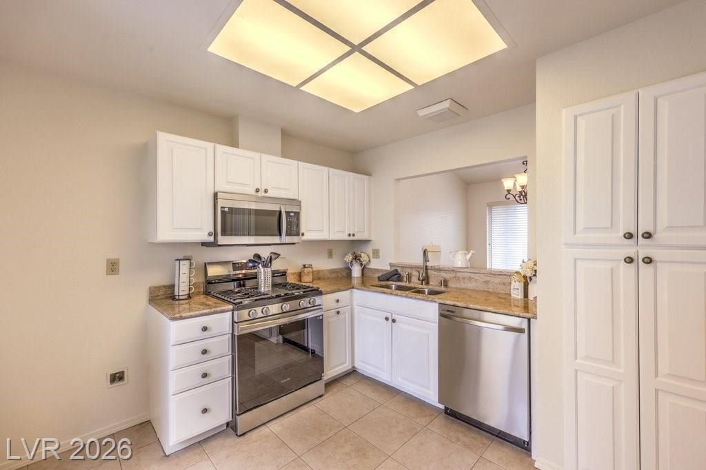 BEST VALUE IN SUN CITY SUMMERLIN!! Don't miss this completely refreshed and ready to move in townhome in the heart of one of the largest age restricted communities in Las Vegas**Open great room style floor plan with huge living area and separate dining room*sliding glass doors to open back yard space**Kitchen offers nook with sliding doors to courtyard--perfect for your early morning coffee**designer touches include painted cabinets, granite countertops and new range, microwave and dishwasher**Fresh paint*updated laminate flooring throughout*new appliances*ceiling fans*window coverings*sparkling clean and ready for you!