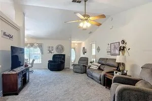 Light, bright, and larger than many 3-bedroom homes in Marion Landing — this move-in ready home delivers the space, flexibility, and value buyers are looking for. Featuring 2 bedrooms plus a versatile flex room just off the kitchen with a bathroom nearby, this layout can easily function as a 3-bedroom home with minimal effort (simply add a closet!). Major updates are already done for you: NEW roof (2024), fresh exterior paint (2024), and HVAC (2020). A smart split floor plan offers vaulted ceilings, tile flooring in the kitchen, baths, and other wet areas, and carpet throughout the living and bedroom spaces for a warm, comfortable feel. The kitchen features a breakfast bar and overlooks the spacious living area, while the primary suite offers a walk-in closet and private bath. Enjoy your mornings in the enclosed 220 sq ft Florida room overlooking the easy-care yard. Additional highlights include an oversized 2-car garage, tray ceiling details, and excellent storage. Marion Landing is one of Ocala’s most desirable 55+ communities, offering a private 8-lane bowling alley, clubhouse, pool & spa, tennis, shuffleboard, planned activities, and low $186/month HOA. Fantastic SR-200 location close to shopping, dining, medical, and I-75. Now priced at $250,000 to get noticed — this home lives larger than it looks.