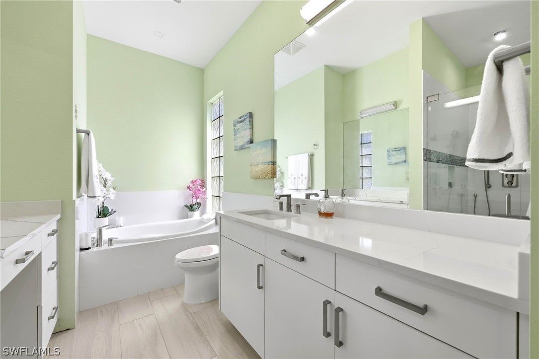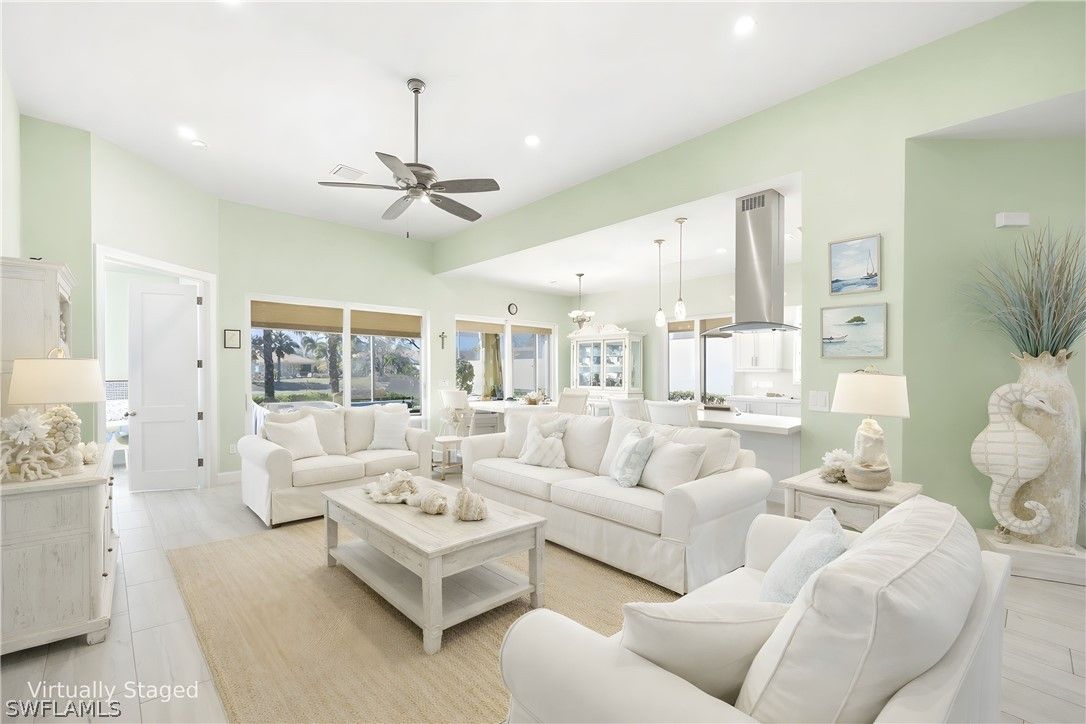 COMPLETELTY RENOVATED SOUTHERN EXPOSURE Oakmont NO POOL . Featuring a new roof (2020) and hurricane-impact windows and doors (2021), this residence has been thoughtfully remodeled throughout with a designer kitchen, updated baths, new flooring, upgraded air handler and ductwork. Soaring ceilings and Divosta’s solid poured concrete construction enhance the bright, open layout, while Quartz countertops, white shaker cabinetry, and stainless appliances deliver timeless elegance. AC and water heater approximately 5 years old. Enjoy a peaceful water view from the screened lanai in the highly sought-after VeronaWalk community. Verona Walk offers 24 hr. guarded gated entry, lighted tennis, bocce ball, basketball and pickle ball courts, resort-size community Lagoon pool, lap pool, tot lot, over 20 miles trails, 24/7 gym, post office, café/restaurant, ice cream Shoppe, hair salon, car wash, gas station, library, computer center, ballroom, card rooms, and a full-time activities director. Convenient to both Naples and Marco Island beaches, shops and fine dining, regional hospital and Edison college nearby. The low HOA dues also include lawn care & irrigation, basic cable TV.