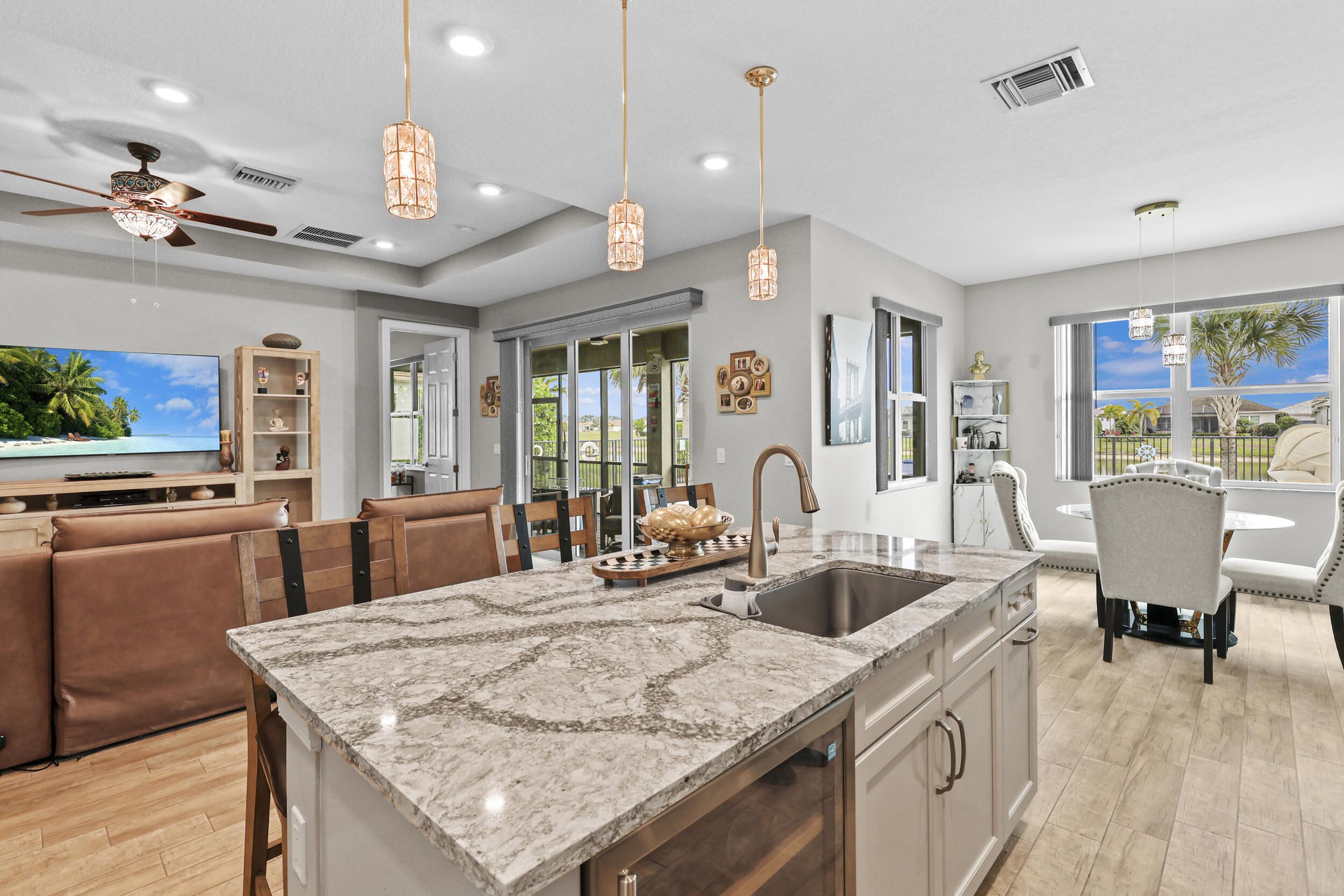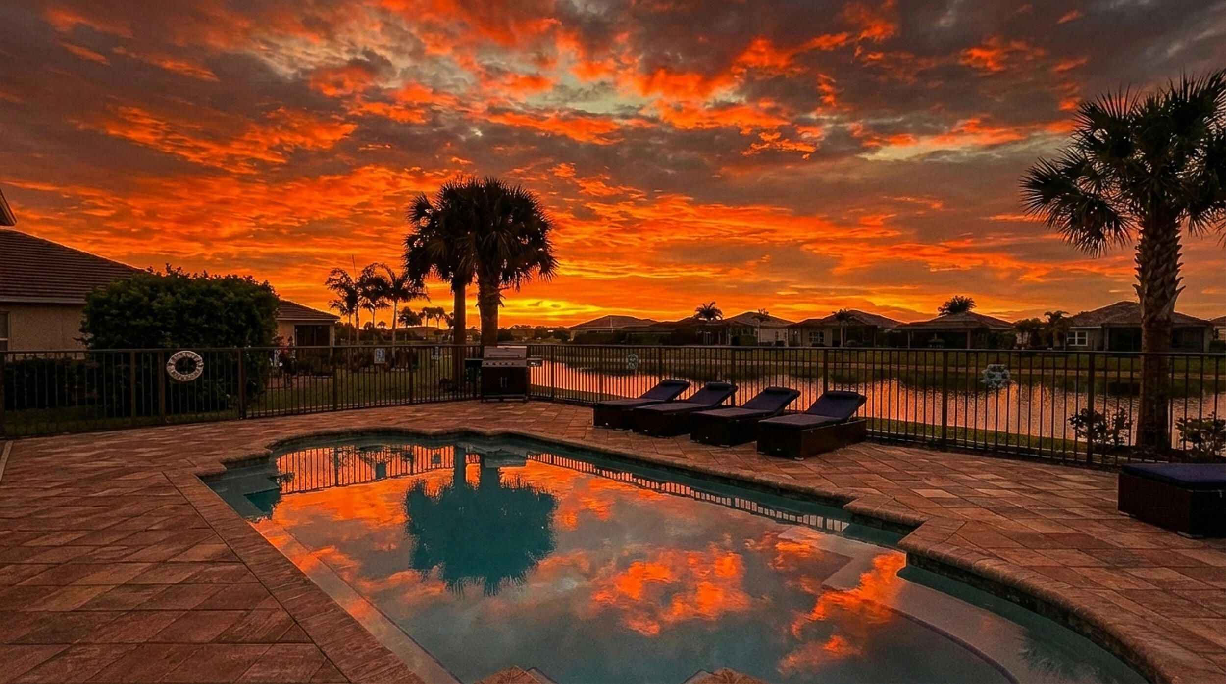 Stunning 2019 Kolter Homes residence featuring the desirable Conner model in the highly sought-after PGA Village Verano community. This well-maintained 2 bed / 2 bath + flex room home offers 1,731 sq ft of open living space with tile roof and a premium waterfront lot showcasing serene lake views. Enjoy true Florida living with a private heated pool and solar panels for added energy efficiency. The functional floor plan provides excellent flow for everyday living and entertaining. Located in a gated, resort-style community with access to pools, fitness centers, tennis, pickleball, and more. A rare opportunity for waterfront living.