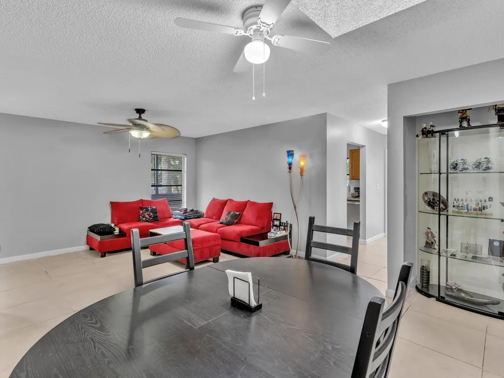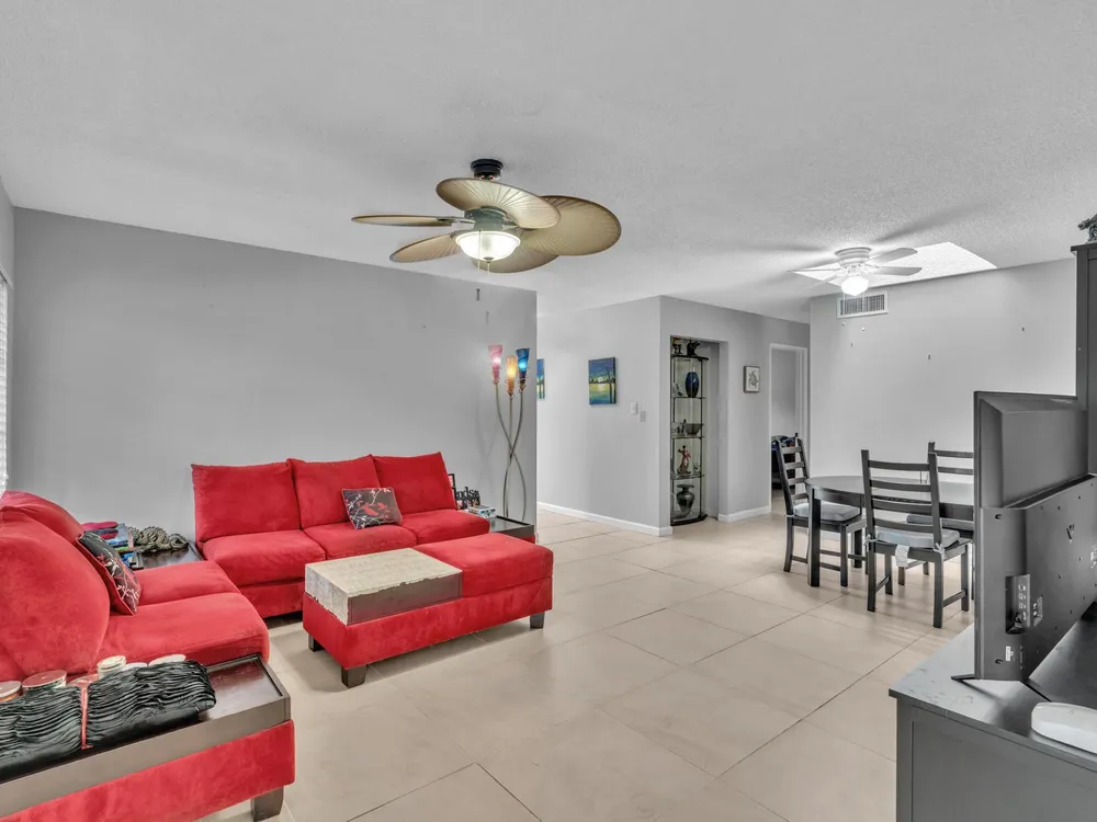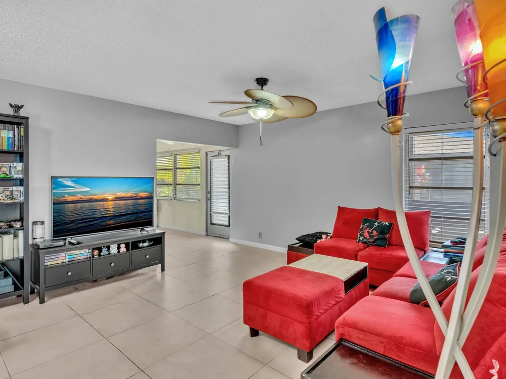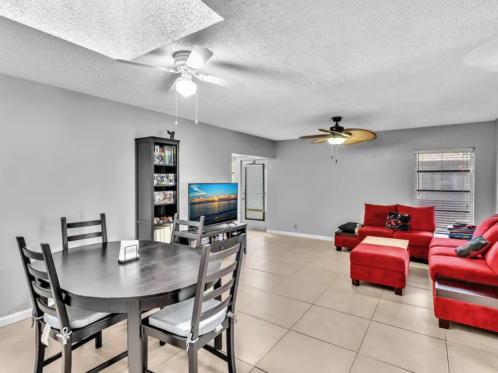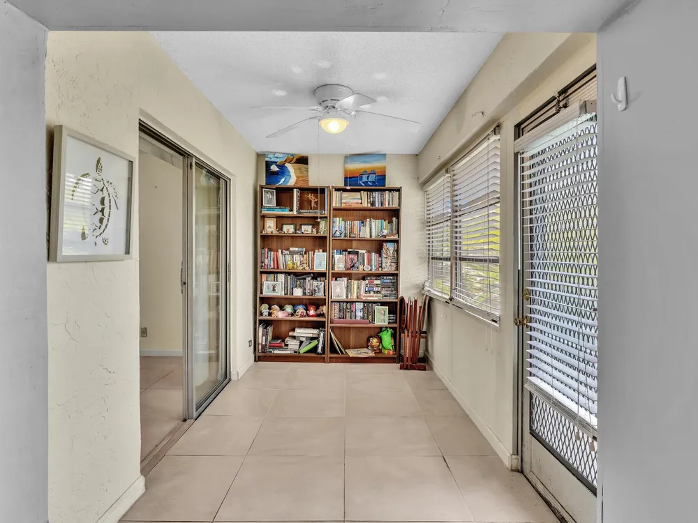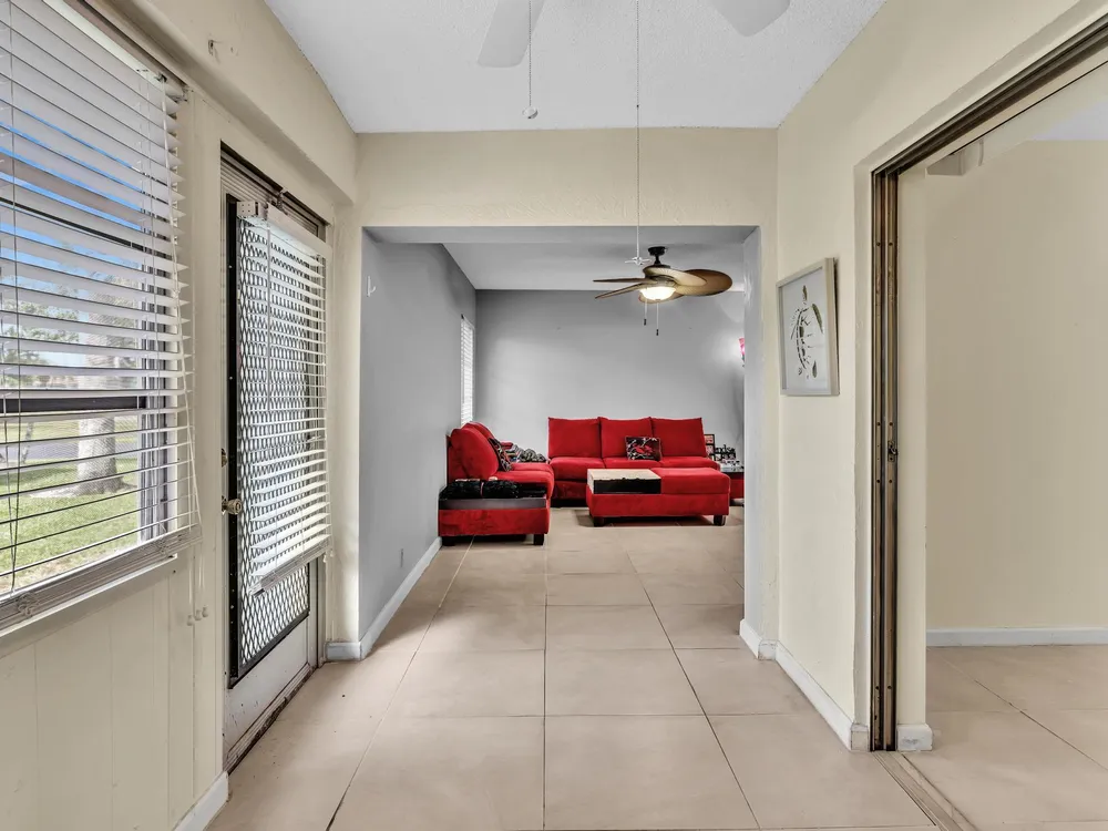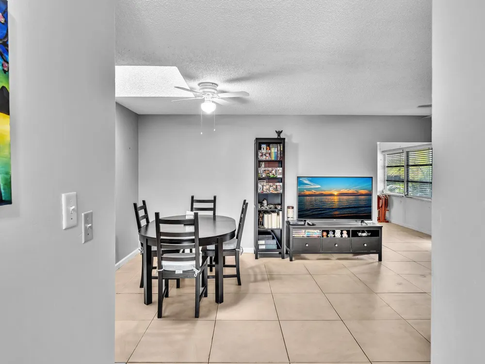 Welcome to 8736 Tyrone Terrace, Unit D, a beautifully updated 2-bedroom, 2-bathroom corner villa with a den, nestled in the serene 55+ gated community of Whisper Walk in Boca Raton. This meticulously maintained home offers an inviting open floor plan with neutral tones throughout.Interior Features: Spacious Living Area: The Florida room seamlessly extends the living space, providing a bright and airy atmosphere under air conditioning. Updated Kitchen: Equipped with modern appliances and ample cabinetry, perfect for culinary enthusiasts. Master Suite: Generously sized with multiple closets, offering abundant storage. Additional Highlights: Brand new glass front door, tile flooring throughout (no carpet), and a full-size washer and dryer for your convenience.