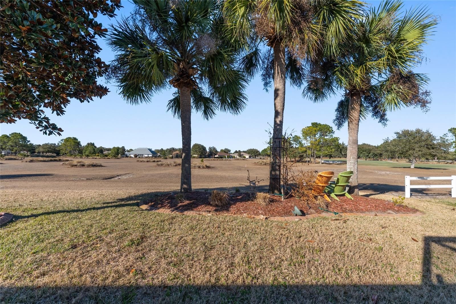 One or more photo(s) has been virtually staged. Golf Course Views | Premium Lot | Expanded Sterling in Candler Hills at On Top of the World Stunning views of golf course and approximately 8 acre dry retention pond set the stage for this beautifully expanded Sterling model located on a premium lot in the highly sought-after Candler Hills neighborhood of On Top of the World. This fee-simple home has the CDD bond paid off, helping keep ownership costs lower. Overlooking both the lush fairway and a landscaped open area, this home offers privacy, serenity, and breathtaking scenery from nearly every main living space. This custom home features nearly 2,300 sq. ft. of living space and offers 3 bedrooms, 2 bathrooms, a den/office with door, formal dining room, living room, and a grand great room in a bright, open split-bedroom floor plan. The great room, living room with octagon tray ceiling, kitchen, breakfast nook, office/den, and primary suite all capture panoramic golf course views. Ceiling heights reach up to 11 feet and are enhanced by crown molding, custom wall details, and custom paint throughout. The bright updated kitchen includes granite countertops, tile backsplash, pull-out cabinetry, large pantry, upgraded stainless steel appliances, and a solar tube skylight that fills the space with natural light. Both the kitchen and bathrooms feature granite surfaces. Flooring includes solid oak wood and ceramic tile in the main living areas, luxury vinyl in the den/office, and carpet in the guest bedrooms. Additional features include a gas fireplace outlet in the great room (ready for a future fireplace), hideaway screen doors on both the front entry and the primary bedroom doors leading to the lanai, allowing for fresh air and seamless indoor-outdoor living. The spacious owner’s suite is a true retreat with a private sitting area/second office, two walk-in closets, a large updated ensuite bath, and direct access to the patio and golf course views. Two additional bedrooms and a full bath are located on the opposite side of the home for added privacy. Recent improvements include: New roof (2025) New water heater (2025) New dishwasher (2025) Refrigerator (2023) Microwave (2023) Gas range (2023) HVAC (2019) Newer garage door & epoxy garage floor coating. The seller is also offering a one-year home warranty for the buyer’s peace of mind. Outdoor living is exceptional with a north-facing, stone-paved lanai, an enclosed Carolina room with sliding door panels, and a large open birdcage patio with sealed pavers—perfect for entertaining or relaxing while enjoying the golf course setting. Additional features include an oversized extended garage, a ceiling storage area above the garage (attic storage without a pull-down ladder), water softener, upgraded irrigation system, French drain, and newer picture windows. Candler Hills is a private, gated luxury golf community offering three golf courses, indoor and outdoor pools (including the Lodge’s beach-entry pool), two fitness centers, tennis, pickleball, racquetball, billiards, game rooms, and a Cultural Arts Center. Enjoy live music, dining, shopping, and nearby medical facilities—plus golf-cart access to local conveniences. On Top of the World is ranked among the Top 50 Master-Planned Communities in the U.S. by Where to Retire Magazine. This exceptional home delivers the perfect blend of luxury, comfort, and the ultimate active-adult lifestyle. This home is truly move-in ready—so you could be living your Florida dream in as little as 30 days.