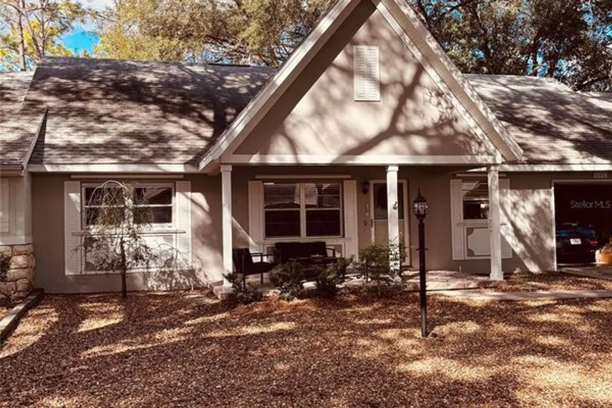 Enjoy easy Florida Living in this inviting 2-bedroom, 2-Bath villa located in the popular On Top of the World community. The home features a spacious eat-in kitchen that can easily double as a flex space for dining, hobbies, or everyday living. The enclosed Lanai includes built-in bookcases, making it a great spot for a home office, den, study or workout area. Start your mornings or unwind in the evenings on the front porch while soaking in the Florida Weather and chatting with neighbors. Or for more privacy, sit on the back patio or screened in porch. The oversized garage comfortably fits both a car and golf cart, with room for storage. On Top of the World offers an active 55+ lifestyle with three golf courses, pools, tennis courts and dog parks for your furry friends. There are also clubs to join and concerts offering a variety of music styles on the weekends.