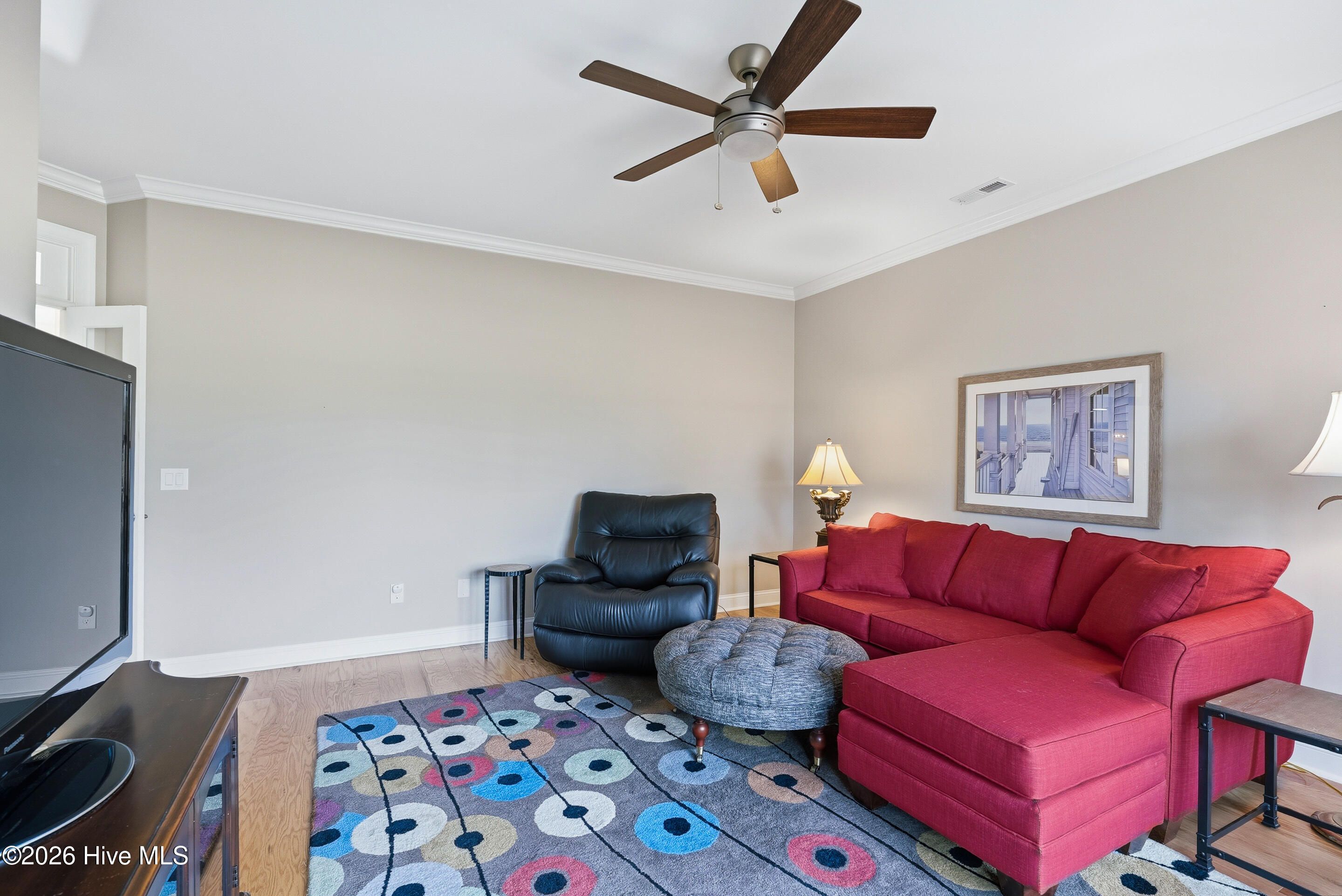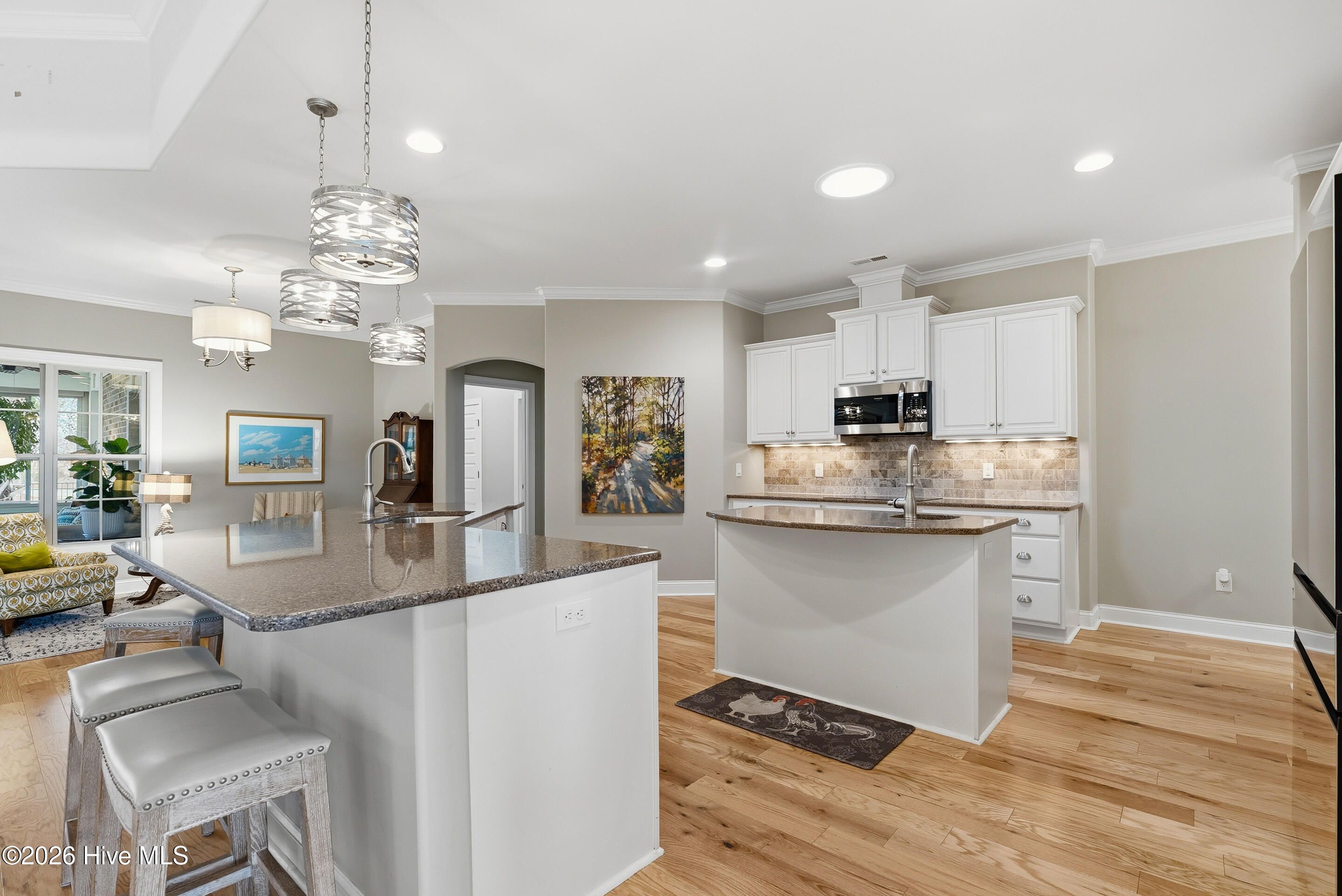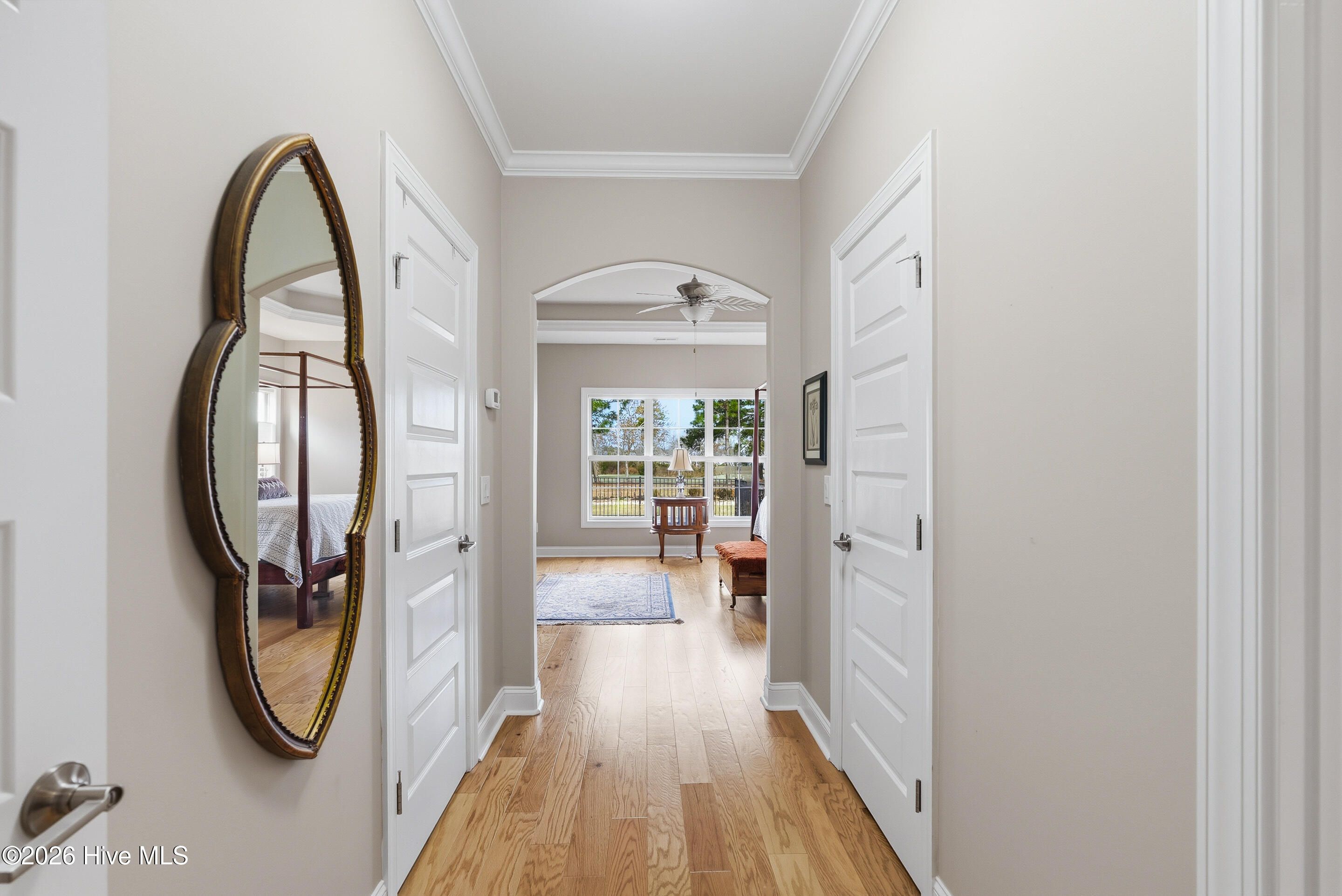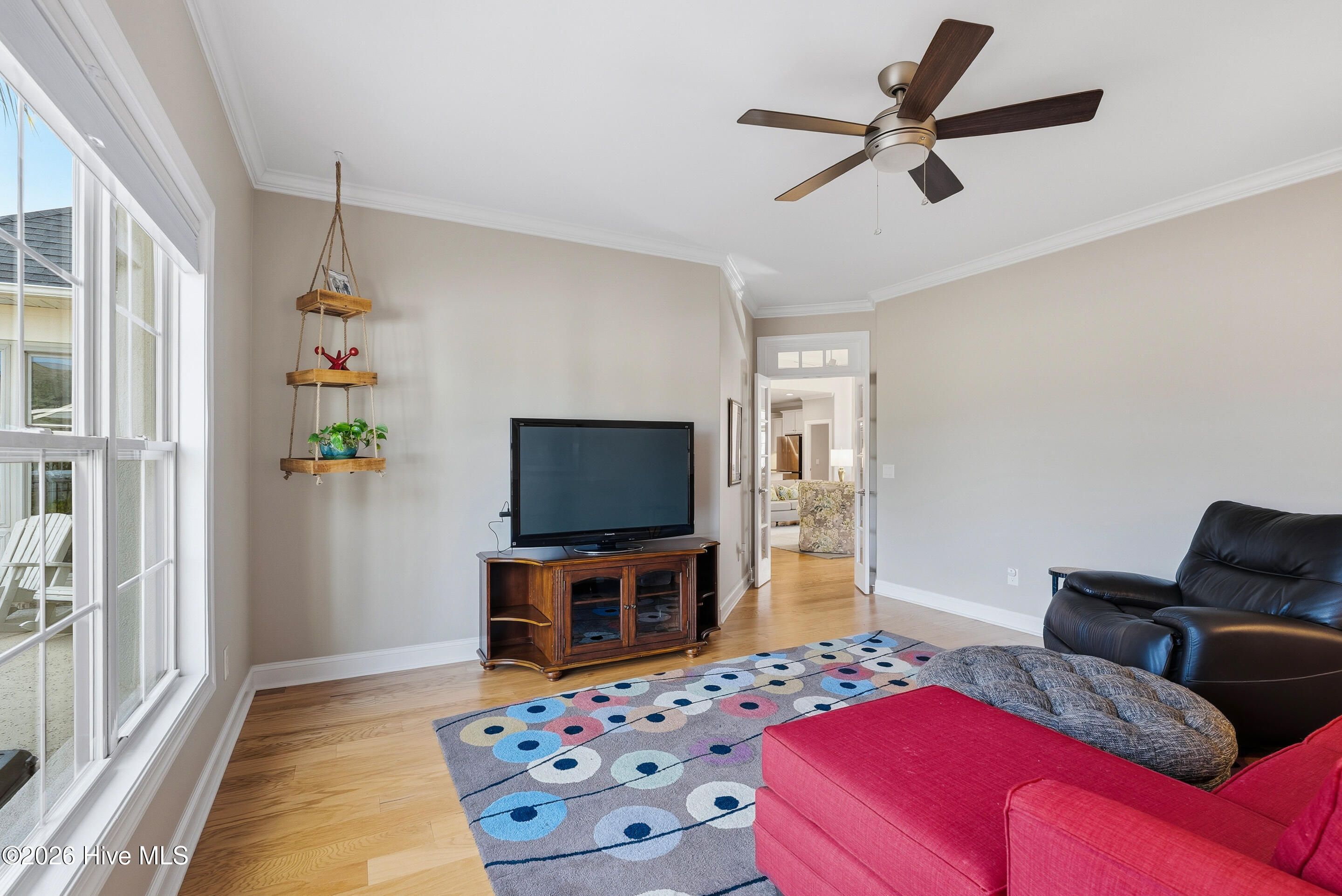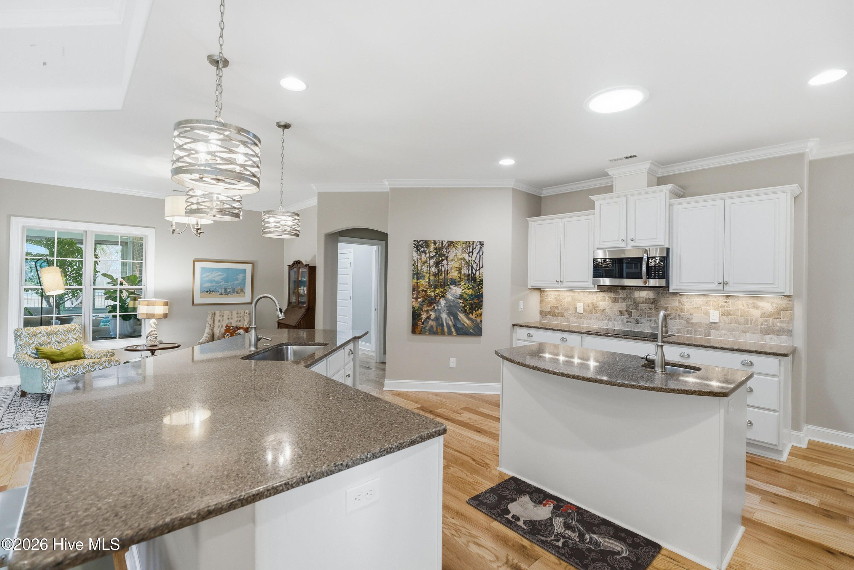 Welcome home to this beautifully maintained 4-bedroom, 4-bath executive home in the desirable gated community of Compass Pointe! Designed with both elegance and functionality in mind, this home showcases thoughtful upgrades and meticulous care throughout. Step through the charming double glass-pane doors into a grand open-concept living space featuring rich hardwood flooring, tray and coffered ceilings, and an abundance of natural light. The dining area, living room, and kitchen flow seamlessly together and extend into a spacious 24x33 heated and cooled sunroom--creating the perfect year-round space for relaxing or entertaining while enjoying views of the golf course. The well-appointed kitchen features a large quartz island with seating and a separate food prep island, and an amazing, huge walk-in pantry, double wall ovens, and a solar tube for additional natural light. Gather around the cozy gas fireplace in the living room, flanked by custom built-ins, or unwind in the sunroom as you watch the golfers pass by. The thoughtfully designed split floor plan offers privacy and flexibility. One wing of the home features two bedrooms and two full baths--including a private ensuite--and an aditional versatile den ideal for an office, media room, or flex-space. The primary retreat is situated on the opposite side of the home and includes convenient access from the luxurious bath to the laundry room, as well as an office. Upstairs, an oversized bonus room with a full bathroom provides endless possibilities for a guest suite, hobby room, or additional living space. The spacious garage accommodates two vehicles plus a golf cart and includes a built-in storage closet. Step outside to the fenced backyard where a propane fire pit creates the perfect setting for entertaining friends and family. From the interior to the garage, this home offers exceptional storage throughout. Residents of Compass Pointe enjoy resort-style amenities including championship golf, tennis and pickleball courts, indoor and outdoor pools, a lazy river, walking and biking trails, a dog park, wellness center, and more.