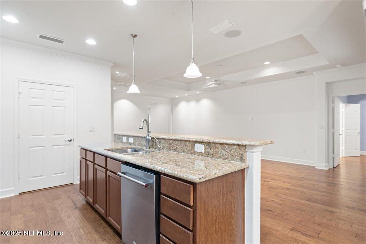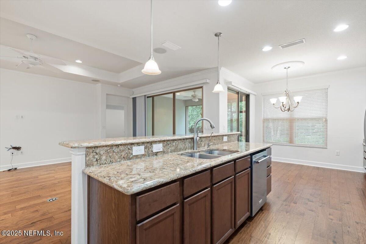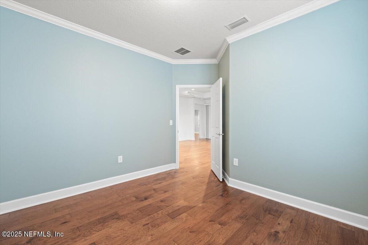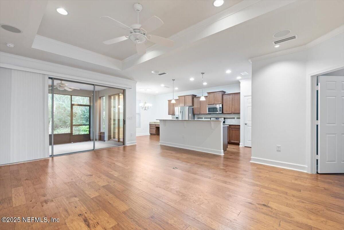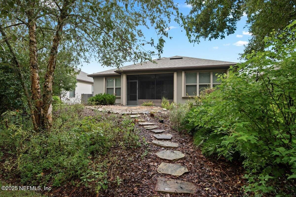 Welcome to 875 Wandering Woods Way, an immaculate 3BR/2BA home with study in Del Webb Ponte Vedra's premier 55+ community. Inside, enjoy large plank wood floors, tray ceilings, crown molding, wide baseboards, solid surface countertops, and stainless steel appliances. The great room and lanai feature in-ceiling speakers for effortless entertaining. Step outside to a serene backyard with a spacious screened lanai and flagstone pavers, perfect for relaxing with morning coffee or evening gatherings. Meticulously maintained with major updates including a new roof (2023), new HVAC (2024), RO system (2025), water softener, whole-house gutters, elastomeric exterior paint, and a full custom installed hurricane shutter system for all windows and doors. Move-in ready, this home blends comfort, style, and security with the unmatched amenities and lifestyle of Del Webb Ponte Vedra, just minutes from the beach.