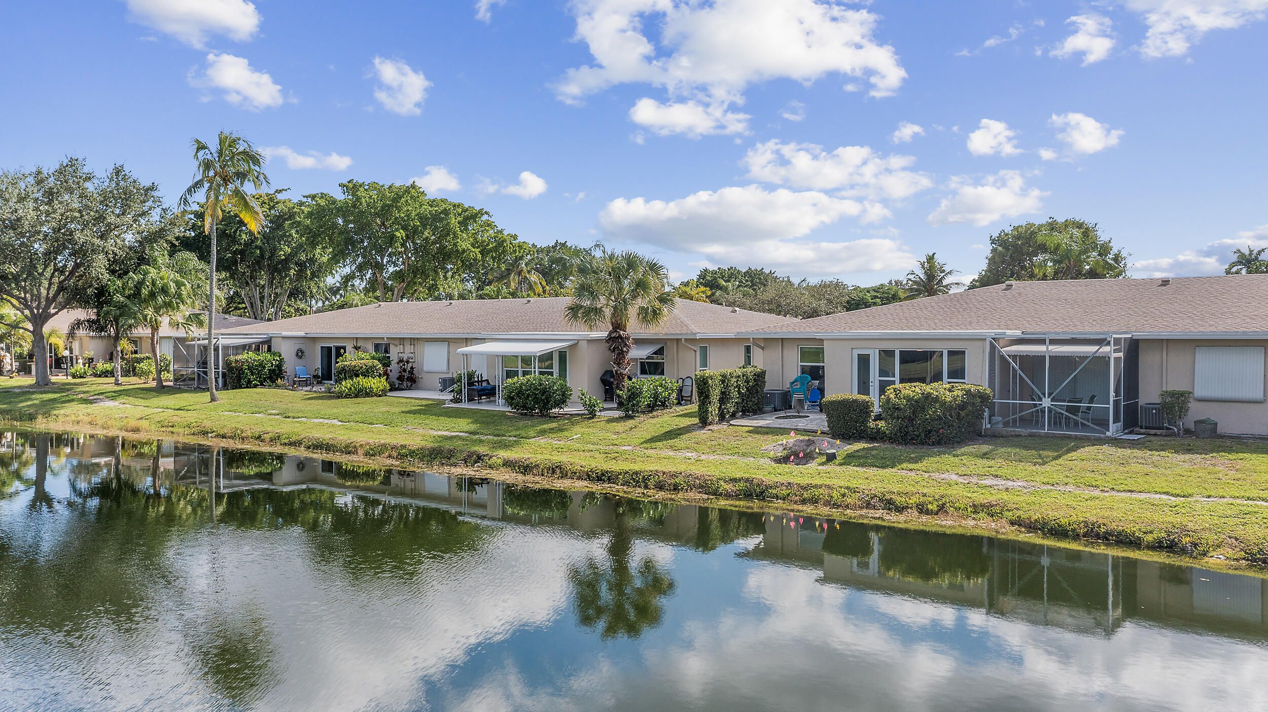 Welcome to Boca Lakes, a gated 55+ community in West Boca. This lakefront villa has a split floor plan with 2 bedrooms, each with ensuite baths and ample closets--the primary with a walk-in. The kitchen features quartz countertops, pantry, stainless steel appliances, and casual dining space. Enjoy lake views from the screened Florida room and open patio. Includes partial impact windows, 2021 roof, 2021 A/C, Newer Electrical panel, and stacked washer/dryer. Community covers cable, lawn, pest, sewer, trash, and water. Short walk to clubhouse/pool, near shopping and dining.