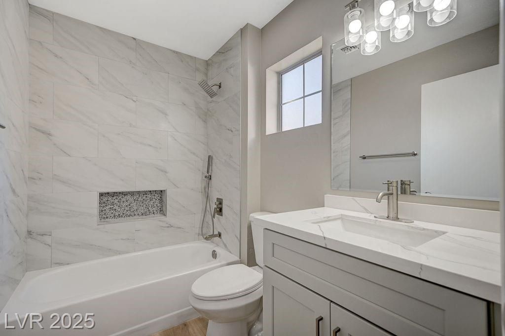 Beautifully remodeled home in the age restricted 55+ Sun City Summerlin community!! This home features new quartz countertops throughout, new custom cabinets throughout, new stainless steel appliances, microwave, refrigerator, kitchen backsplash, custom master bath room dual vanities, tankless water heater, covered patio, fenced side yard, new exterior/interior paint, new laminate flooring and carpet with 5 inch baseboards, new plumbing and lighting fixtures, epoxy garage floor and vaulted ceilings! Very close to the Smiths shopping center with rear golf cart access! Sun City Summerlin has again won best Premier 55+ community in the state of Nevada and #3 in the US with 3 golf courses, 2 restaurants, 4 club houses, many amenities including 4 indoor/outdoor pools/spa, fitness centers, tennis/pickle ball courts, racquetball court, baseball park, miniature golf, roaming security patrols, over 80 social clubs, 24 hr bar/gaming, entertainment theatre and activities galore!!