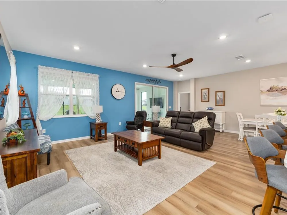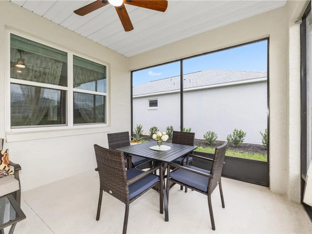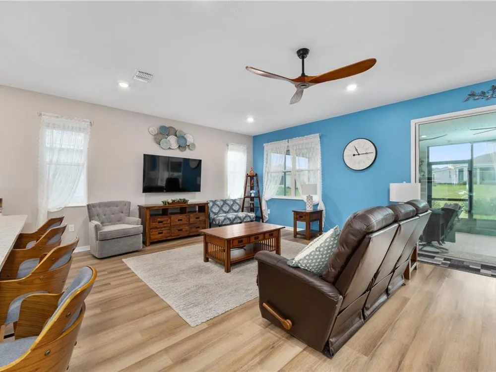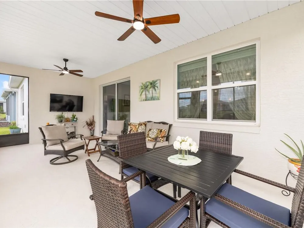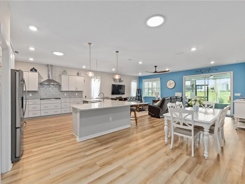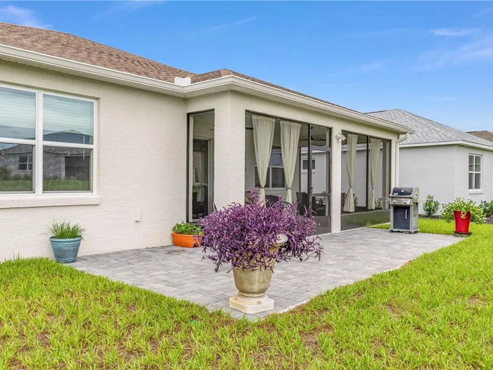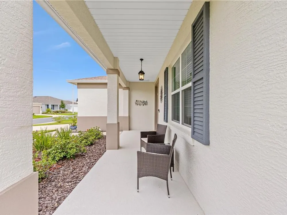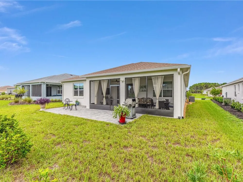 EXTENDED GARAGE! EXTENDED LANAI! Welcome to this beautifully upgraded Wisteria model Smart Home in the desirable community of Weybourne Landing at On Top of the World. Ideally situated on a lot with extra green space, this home offers three bedrooms, two full bathrooms, and a two-car garage with a four-foot extension and epoxy floors. With over $77,000 in builder upgrades and additional after-market enhancements, this home is move-in ready and designed for both comfort and style. Step inside to find luxury vinyl plank flooring throughout, quartz countertops in both the kitchen and bathrooms, and a gourmet kitchen featuring upgraded cabinetry with dovetail drawers, soft-close doors, pull-outs, a lazy Susan, a wine rack, glass tile backsplash, and stainless-steel appliances. The spacious primary suite provides a spa-like retreat with custom mirrors, a frameless glass shower, and upgraded tile finishes. The extended covered lanai and additional outdoor paver patio create the perfect outdoor living space, while the laundry room is equipped with built-in cabinets and a utility sink for added convenience. Other features include an upgraded front door, two solar tubes that bring in natural light, a water softener system, and a collection of smart home upgrades such as an Ecobee thermostat, Hunter Hydrawise irrigation system, and keyless garage entry. This house has it all!! Living in Weybourne Landing means enjoying outstanding community amenities, including a resort-style pool, dog park, pickleball courts, and mini golf. This home combines beautiful upgrades, outdoor entertaining space, and thoughtful design, making it a rare opportunity in one of Ocala’s most desirable 55+ communities.