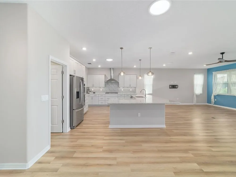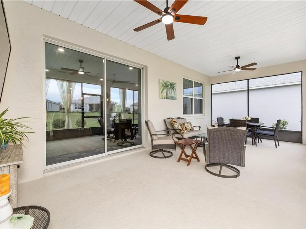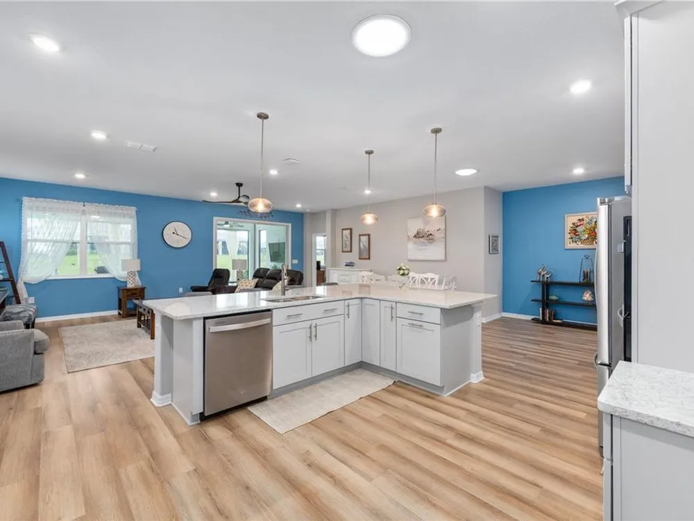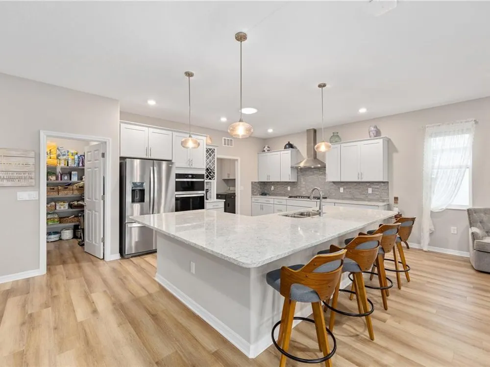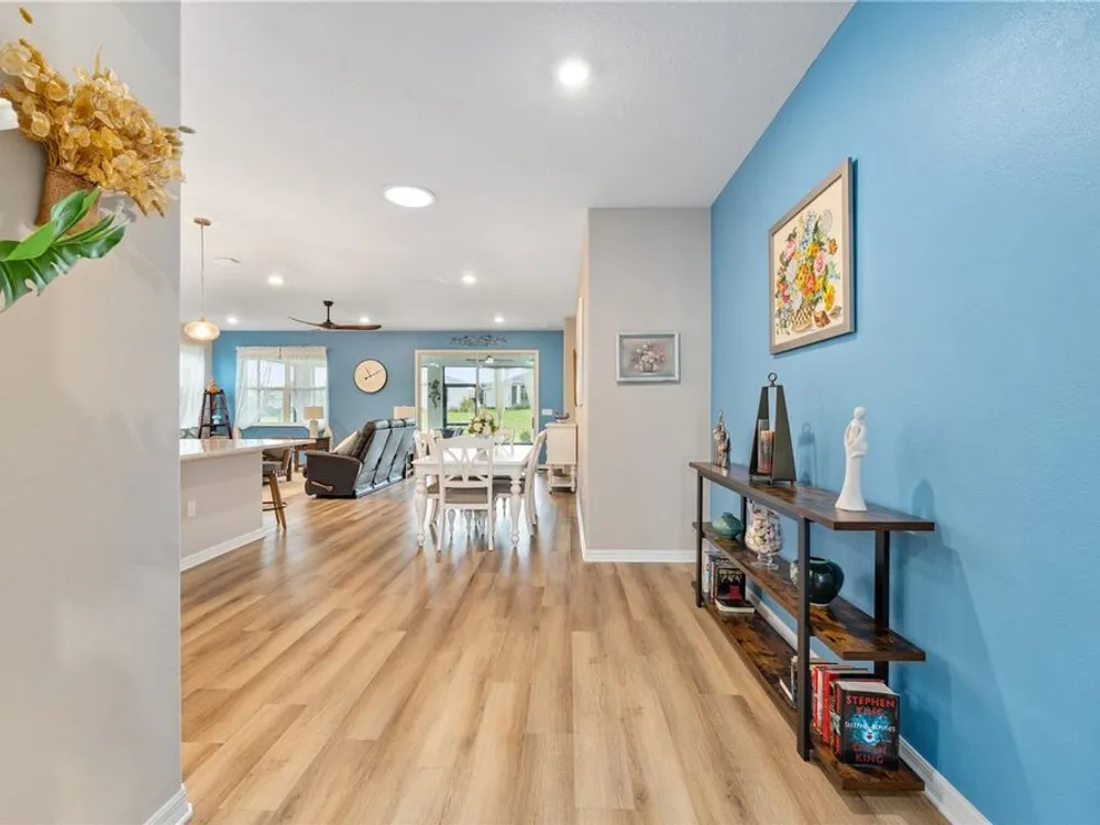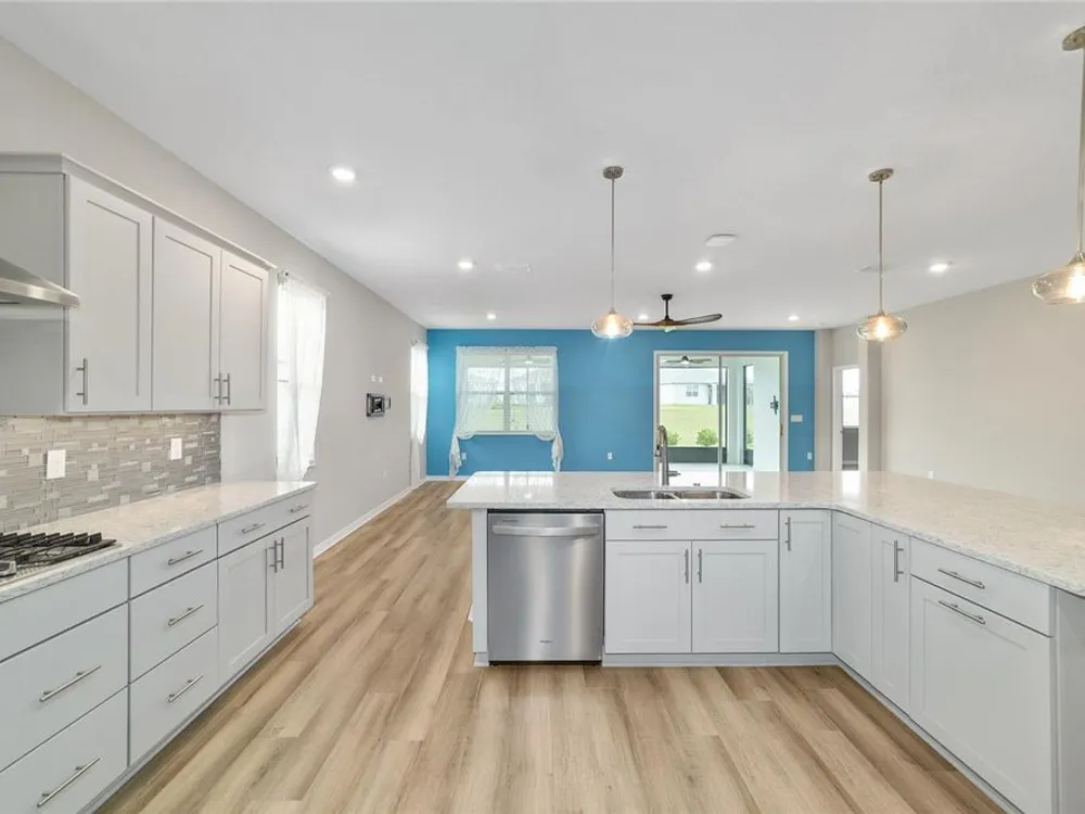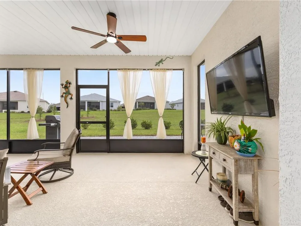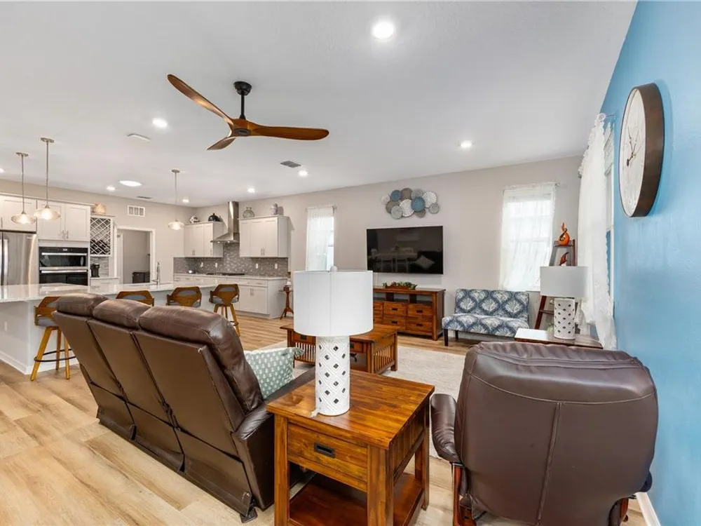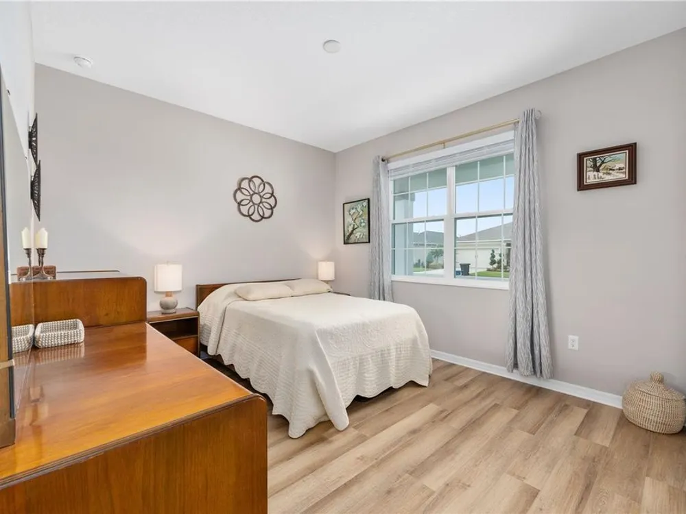 EXTENDED GARAGE! EXTENDED LANAI! Welcome to this beautifully upgraded Wisteria model Smart Home in the desirable community of Weybourne Landing at On Top of the World. Ideally situated on a lot with extra green space, this home offers three bedrooms, two full bathrooms, and a two-car garage with a four-foot extension and epoxy floors. With over $77,000 in builder upgrades and additional after-market enhancements, this home is move-in ready and designed for both comfort and style. Step inside to find luxury vinyl plank flooring throughout, quartz countertops in both the kitchen and bathrooms, and a gourmet kitchen featuring upgraded cabinetry with dovetail drawers, soft-close doors, pull-outs, a lazy Susan, a wine rack, glass tile backsplash, and stainless-steel appliances. The spacious primary suite provides a spa-like retreat with custom mirrors, a frameless glass shower, and upgraded tile finishes. The extended covered lanai and additional outdoor paver patio create the perfect outdoor living space, while the laundry room is equipped with built-in cabinets and a utility sink for added convenience. Other features include an upgraded front door, two solar tubes that bring in natural light, a water softener system, and a collection of smart home upgrades such as an Ecobee thermostat, Hunter Hydrawise irrigation system, and keyless garage entry. This house has it all!! Living in Weybourne Landing means enjoying outstanding community amenities, including a resort-style pool, dog park, pickleball courts, and mini golf. This home combines beautiful upgrades, outdoor entertaining space, and thoughtful design, making it a rare opportunity in one of Ocala’s most desirable 55+ communities.