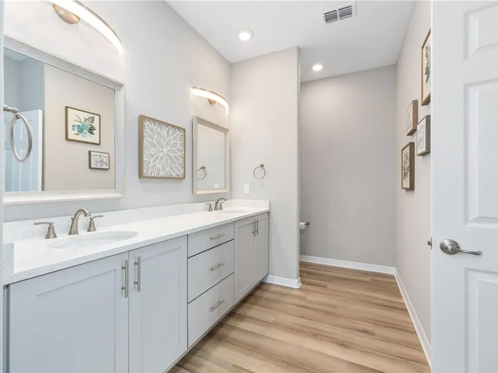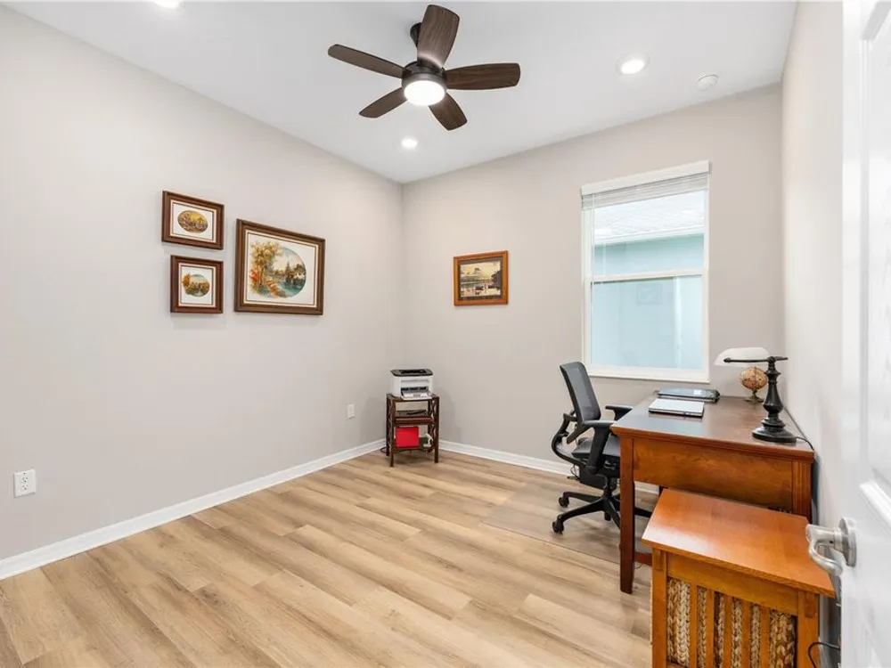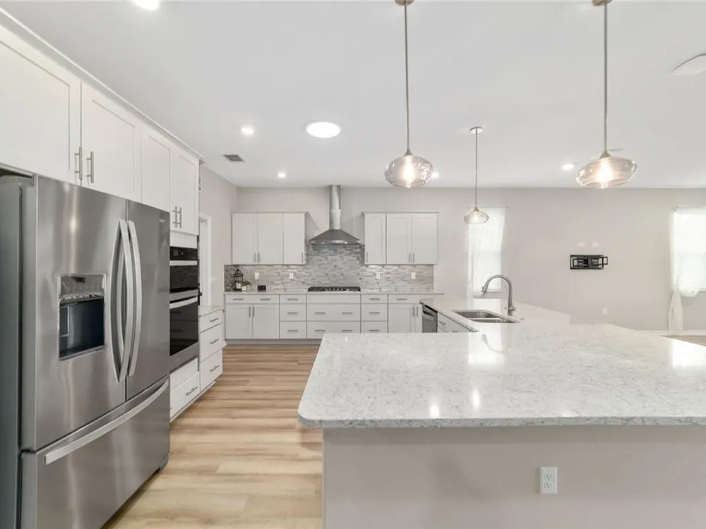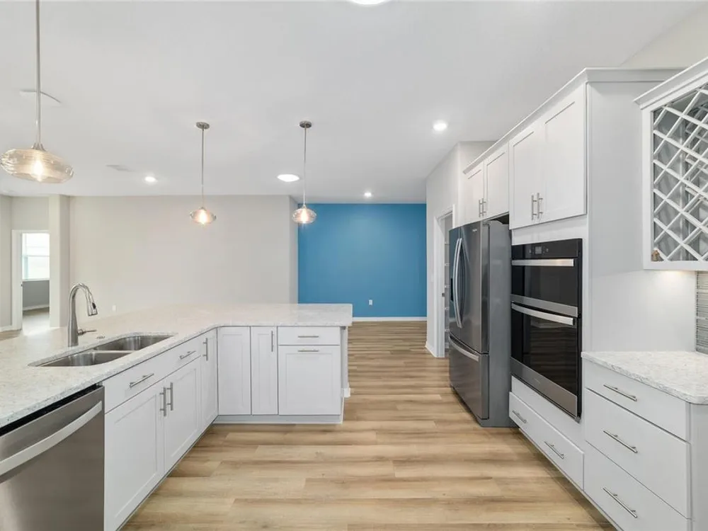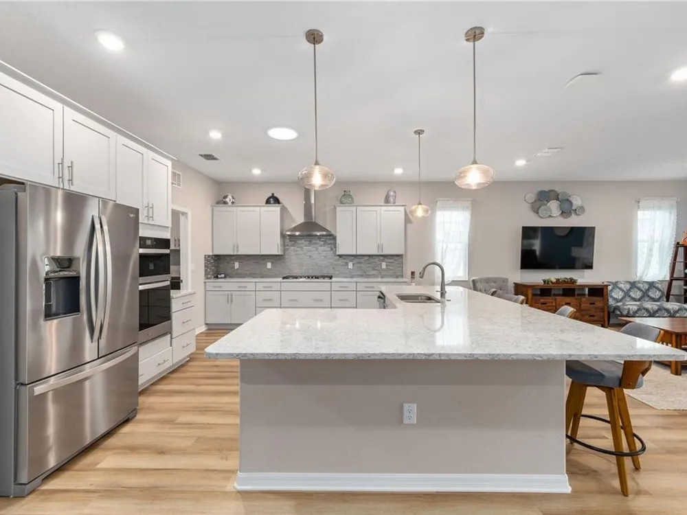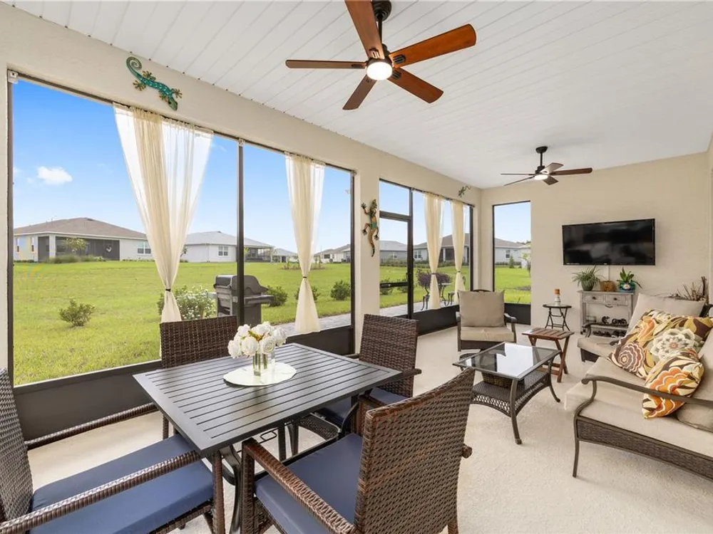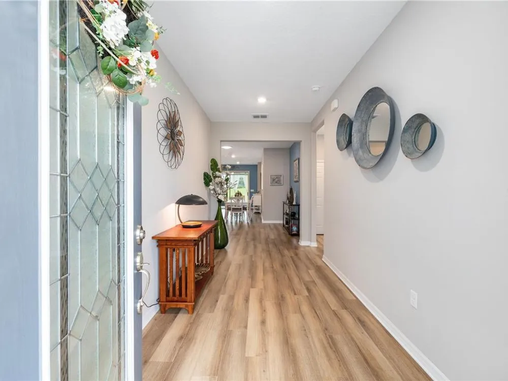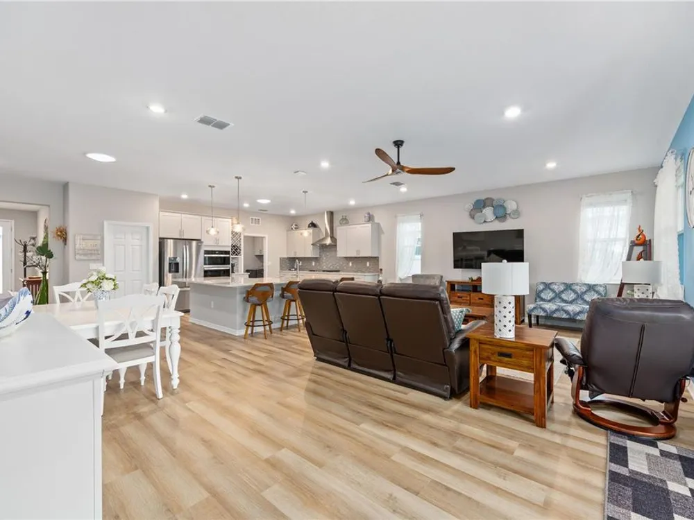 EXTENDED GARAGE! EXTENDED LANAI! Welcome to this beautifully upgraded Wisteria model Smart Home in the desirable community of Weybourne Landing at On Top of the World. Ideally situated on a lot with extra green space, this home offers three bedrooms, two full bathrooms, and a two-car garage with a four-foot extension and epoxy floors. With over $77,000 in builder upgrades and additional after-market enhancements, this home is move-in ready and designed for both comfort and style. Step inside to find luxury vinyl plank flooring throughout, quartz countertops in both the kitchen and bathrooms, and a gourmet kitchen featuring upgraded cabinetry with dovetail drawers, soft-close doors, pull-outs, a lazy Susan, a wine rack, glass tile backsplash, and stainless-steel appliances. The spacious primary suite provides a spa-like retreat with custom mirrors, a frameless glass shower, and upgraded tile finishes. The extended covered lanai and additional outdoor paver patio create the perfect outdoor living space, while the laundry room is equipped with built-in cabinets and a utility sink for added convenience. Other features include an upgraded front door, two solar tubes that bring in natural light, a water softener system, and a collection of smart home upgrades such as an Ecobee thermostat, Hunter Hydrawise irrigation system, and keyless garage entry. This house has it all!! Living in Weybourne Landing means enjoying outstanding community amenities, including a resort-style pool, dog park, pickleball courts, and mini golf. This home combines beautiful upgrades, outdoor entertaining space, and thoughtful design, making it a rare opportunity in one of Ocala’s most desirable 55+ communities.