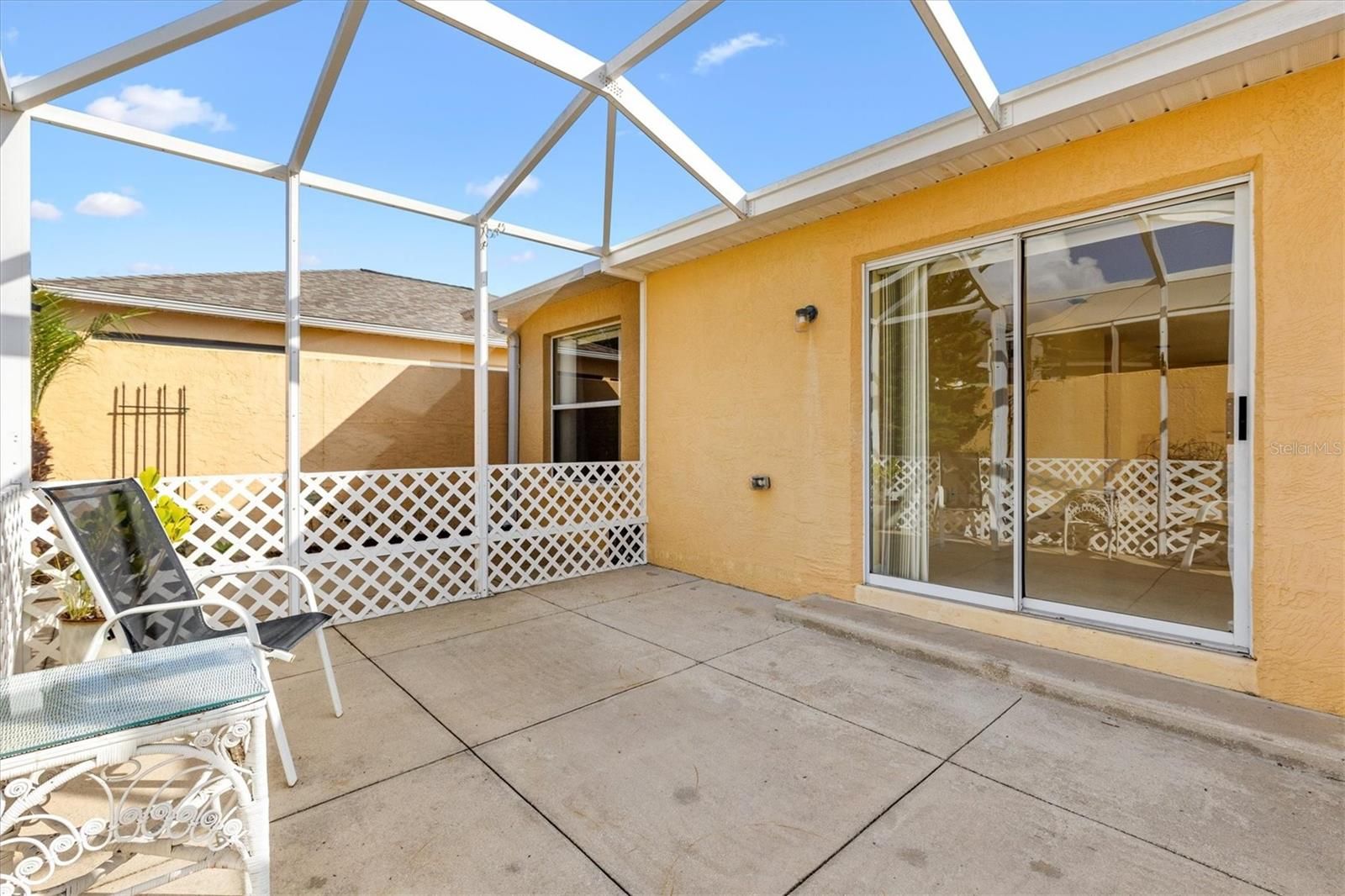 Welcome to this charming 2-bedroom, 2-bathroom courtyard villa located in the desirable Villas of Berea. This home offers peace of mind with the BOND PAID and a newer roof installed in July 2024. On the exterior, you'll find a motorized garage screen door creating ample ventilation throughout. As you enter the inside, you’ll appreciate the open and split floor plan, designed for both comfort and privacy, along with no carpet throughout for easy maintenance and a clean, modern feel. The villa is low maintenance, making it perfect for full-time living or a seasonal retreat. Step out back to enjoy the screened birdcage, ideal for relaxing, entertaining, or enjoying Florida’s beautiful weather. Conveniently located near the Glenview Championship Golf Course, this home is also close to grocery stores, medical facilities, multiple amenities and recreation centers, and the brand-new Costco, offering unmatched convenience. This move-in-ready villa is the perfect opportunity to enjoy The Villages ® lifestyle—schedule your private showing today!