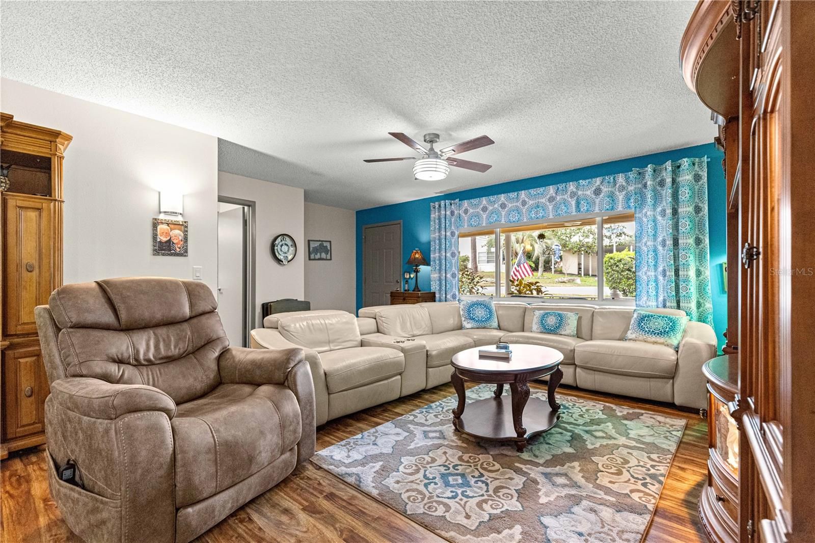 - Ceiling Fan(s), Eat-in Kitchen, Kitchen/Family Room Combo, Open Floorplan, Main Level Primary, Stone Counters, Thermostat, Walk-In Closet(s)