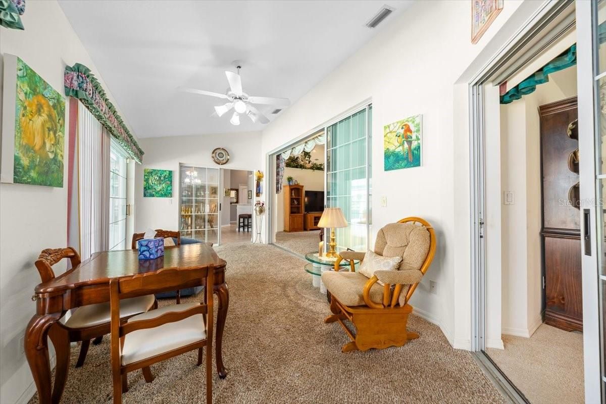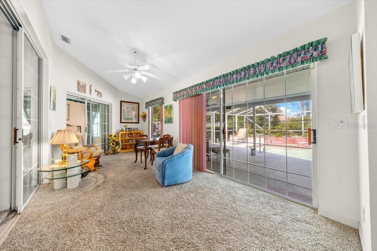 HOME WARRANTY INCLUDED! Welcome to this 3-bedroom, 2-bathroom home featuring a 2-car garage, storage shed, and a POOL surrounded by mature landscaping. Upon approaching the front double doors, you are welcomed by a spacious living area showcasing a stone wood-burning fireplace that leads to an enclosed lanai providing additional usable space with sliders. The kitchen is equipped with a built-in oven and microwave, a pantry, cabinet lighting, and granite countertops that overlook the pool. The laundry room has cabinets, a wash sink, and includes a washer and dryer. Two generously sized guest bedrooms come with fan/light combo with ample closet space for storage. The guest bathroom has been updated with granite and features a glass shower with direct access to the pool. The owner's suite is spacious, featuring a sitting area, fan/light combo and two walk-in closets, along with an ensuite bathroom that includes two sinks, a makeup area, a large tub, and a glass shower. Step through the large sliding door to the screened pool area, which offers seating space, a 12X29 pool with a waterfall, and a fenced large backyard with mature landscaping, complemented by an additional storage shed/workshop. The 2-car garage provides extra space, complete with stairs leading to the attic and an extra refrigerator for storage. This home is ready for its next family to enjoy all its benefits. Call today to schedule your showing.