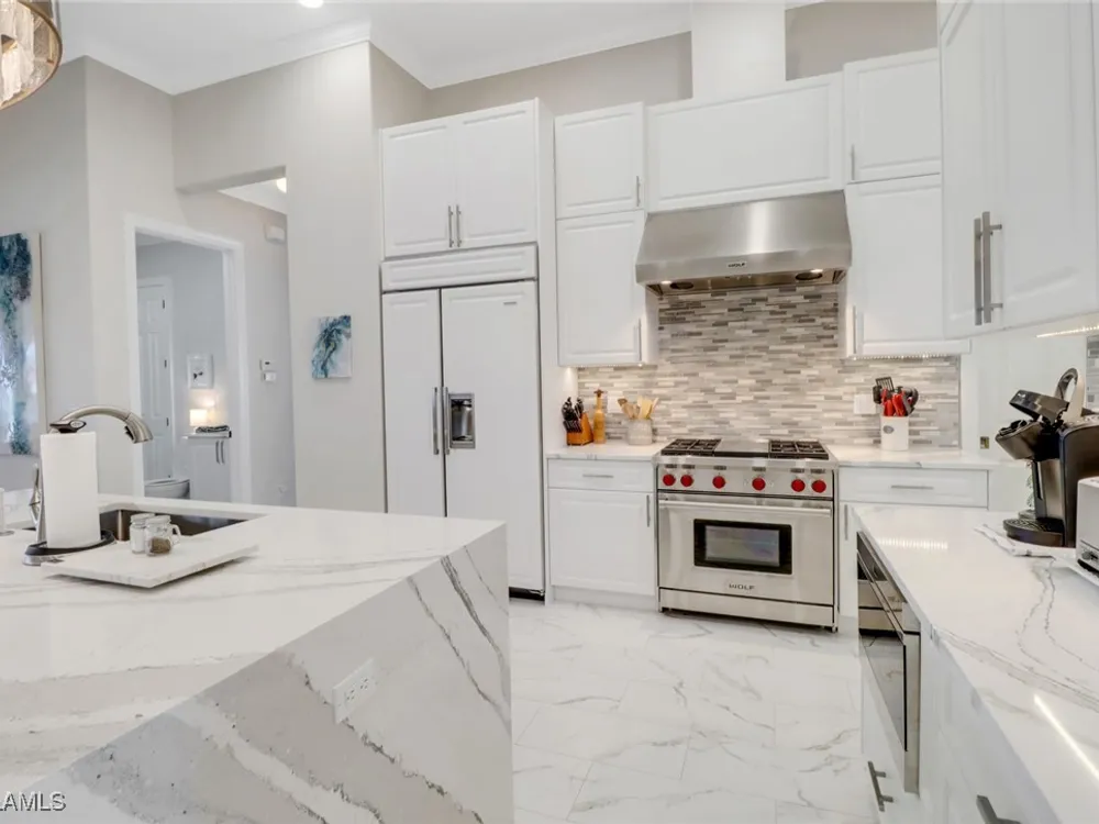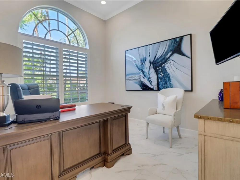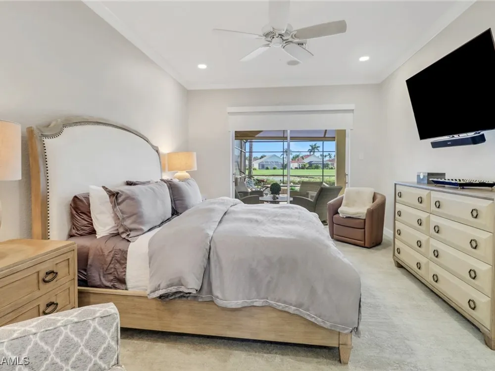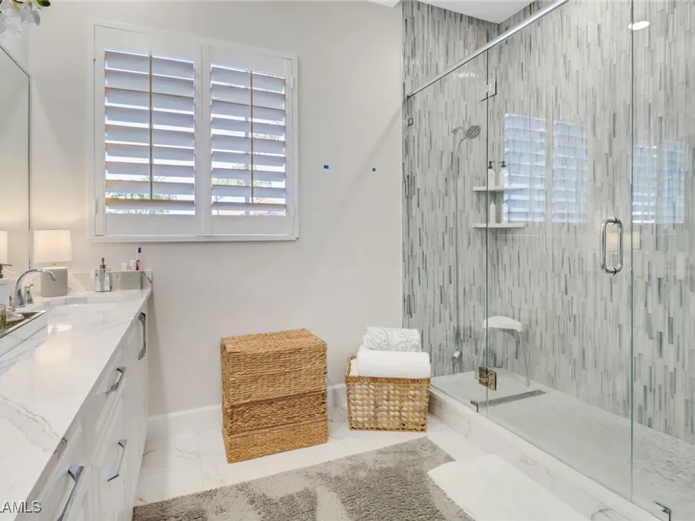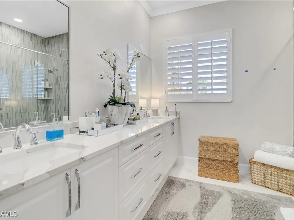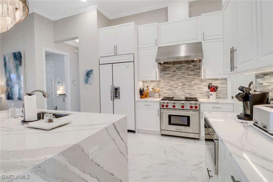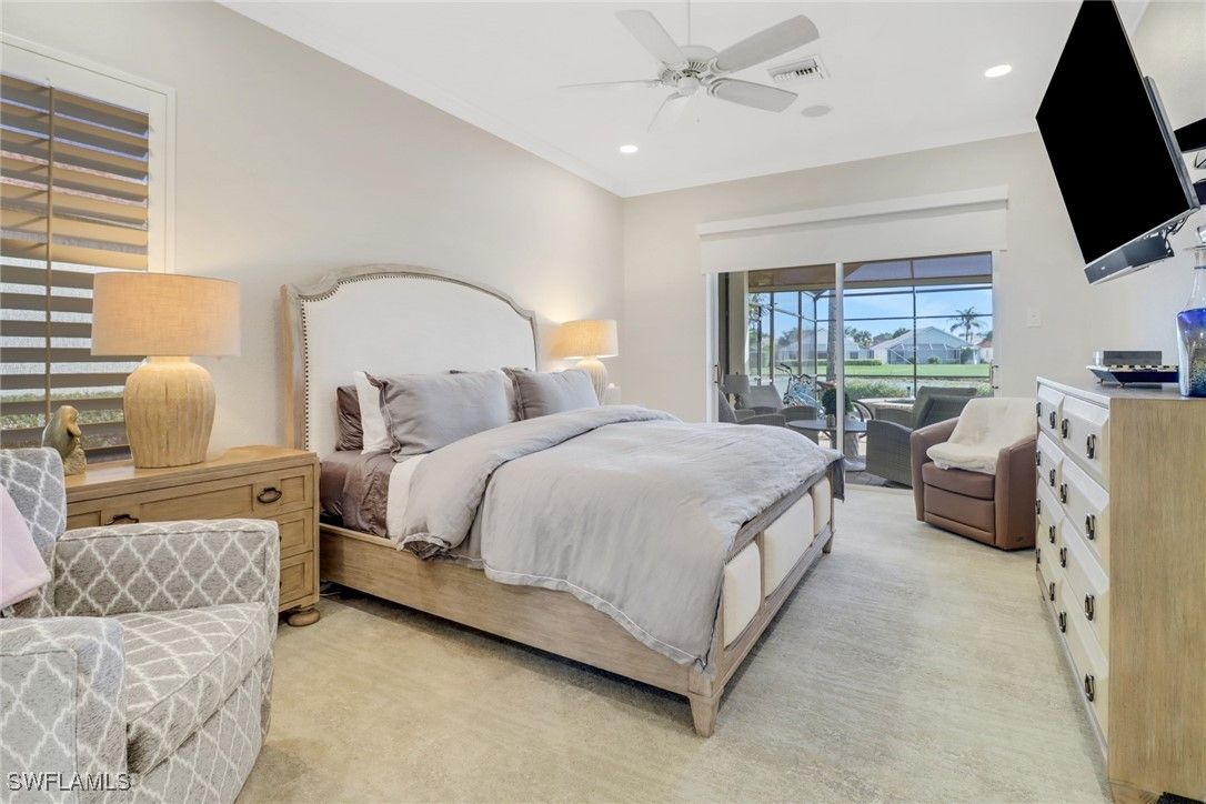 Welcome to this exquisitely remodeled ranch-style home with a brand-new roof in the highly sought-after Mustang Island neighborhood of Lely Resort, Naples, FL. Situated on a serene lakefront lot with breathtaking views of the Mustang Island Golf Course, this furnished 3-bedroom, 2-bathroom residence offers luxurious Florida living at its finest. Inside you'll find soaring ceilings, custom cabinetry, fitted blinds, and elegant mirrors enhance the home’s sophisticated charm. The open-concept design seamlessly connects the living and dining areas to the gourmet kitchen, a chef’s dream with a gas range, spacious island, and cozy breakfast nook. The master suite provides two walk-in closets, dual sinks, and a spa-like walk-in shower. The home is complemented with a versatile den, stylish dry bar, and plush carpeted bedrooms. Outside, the expansive screened patio is perfect for entertaining or unwinding, featuring a fully equipped summer kitchen, cooling fans, wine cooler, and heated pool with hot tub, all overlooking the lake and holes 10 and 11 of Mustang Island's golf course. For added peace of mind, the home includes custom storm-safe shutters and a whole-house gas generator, a rare find in this community. Don’t miss this incredible opportunity for a ready-to-move-in home, your own piece of paradise in Lely Resort!