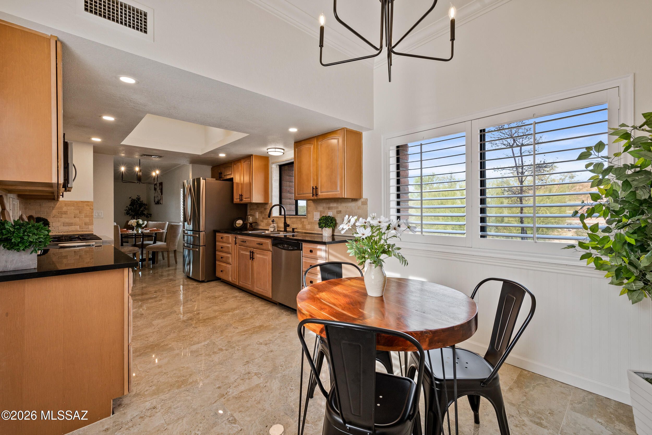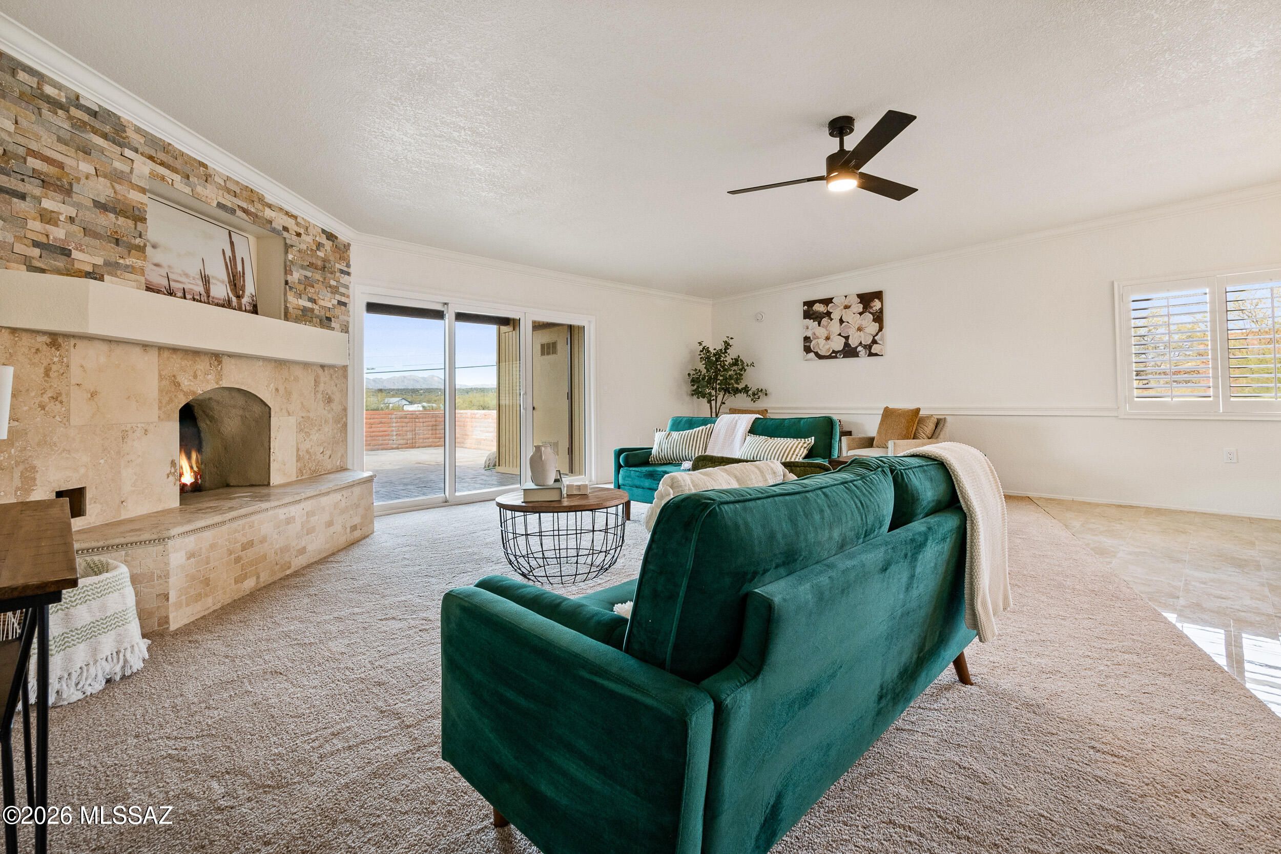 Welcome to this beautifully refreshed desert retreat in desirable northwest Tucson. This inviting home offers a bright, open living space anchored by a charming fireplace and seamless indoor-outdoor flow to a private patio--perfect for relaxing or entertaining. Recent updates include fresh interior and exterior paint, new carpet, modern lighting, updated fixtures, baseboards, switches, and added safety features throughout. The kitchen shines with new fixtures and lighting, while both bathrooms feature updated fixtures, mirrors, and toilets. Low-care desert landscaping enhances curb appeal and easy living. Set in a peaceful community with mountain views, this move-in-ready home blends comfort, style, and effortless Arizona living.