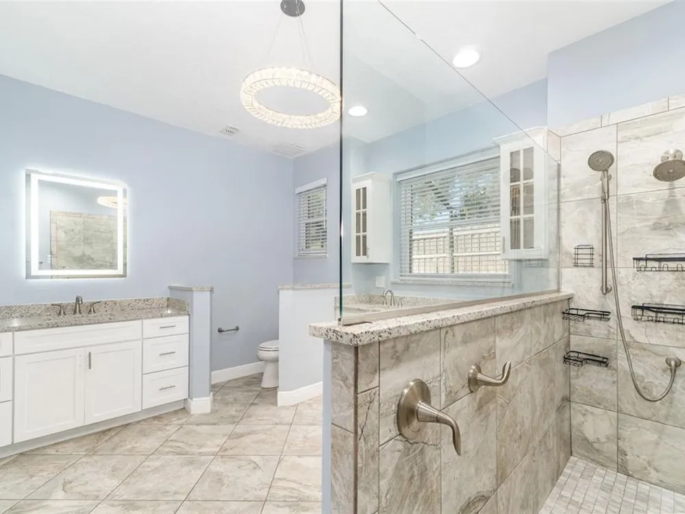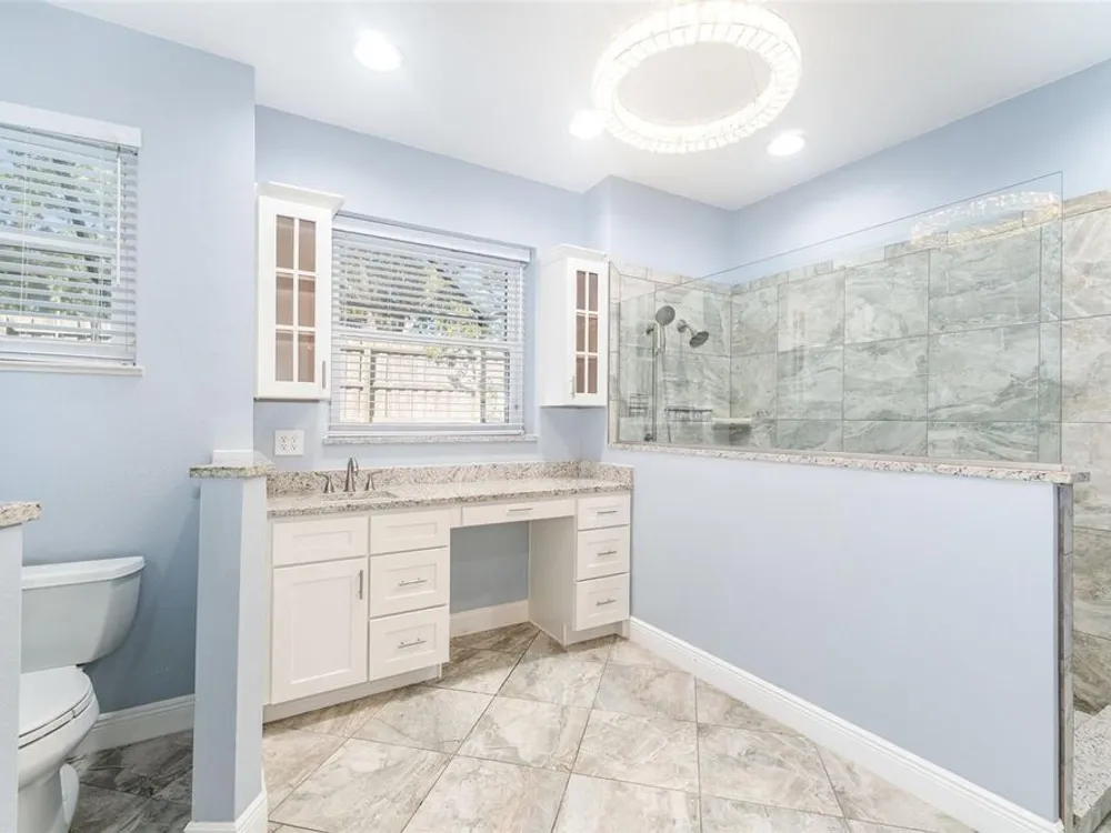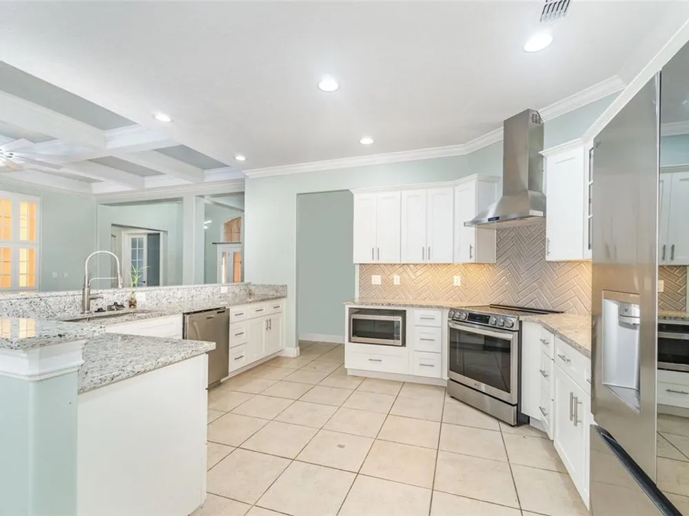 Welcome to the sought-after community of Majestic Oaks! This beautifully updated 4-bedroom, 3-bath home in Ocala offers over 2,700 sq. ft. of spacious living. The interior features laminate flooring in the main living areas, tile in the kitchen, built-in bookcases, ceiling fans, and a custom tray ceiling in the living room that opens to the kitchen. The newly renovated kitchen (January 2025) boasts custom backsplash, new granite countertops, a modern sink with glass rinser, and stainless steel appliances (installed December 2024), including a refrigerator with sphere ice maker. Enjoy peace of mind with a 2023 roof and a versatile flex space perfect for a home office or den. The primary suite offers dual walk-in closets, dual vanities with retractable faucets, and a luxurious walk-in shower. Fresh interior paint (2024) adds a clean, inviting feel throughout. Step outside to your private Florida retreat featuring a fully screened solar-heated pool, a new drain field (December 2024), fenced backyard, rain gutters, and upgraded garage lighting. This well-maintained home blends indoor comfort with outdoor enjoyment. Conveniently located near shopping, dining, and recreation—this move-in ready home is a must-see! Schedule your showing today!