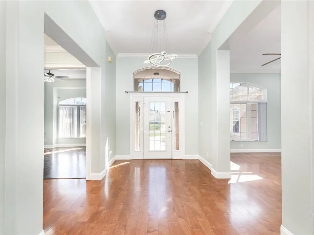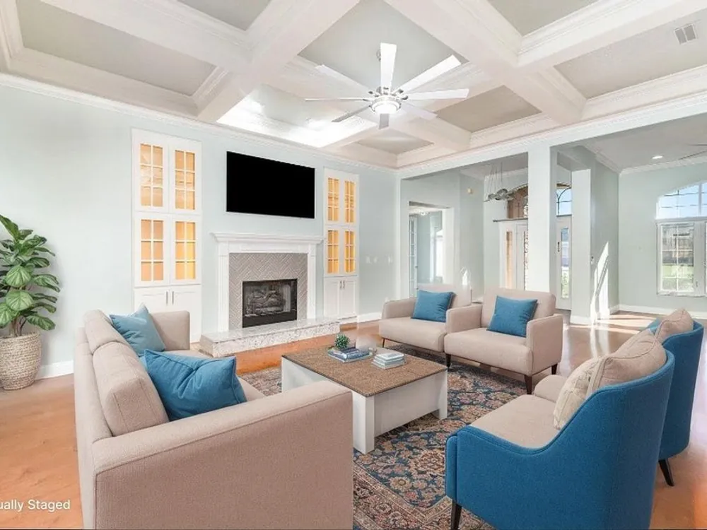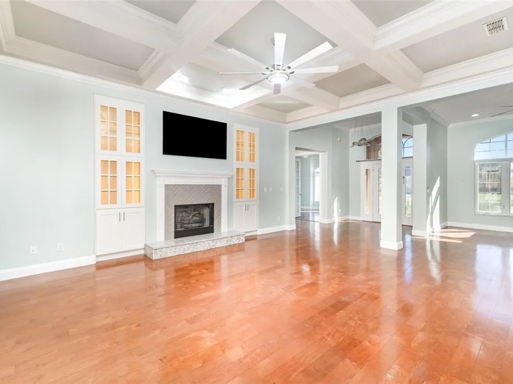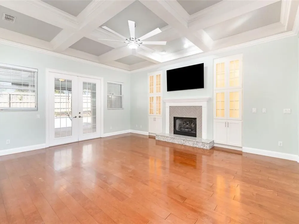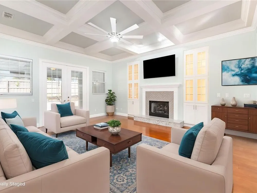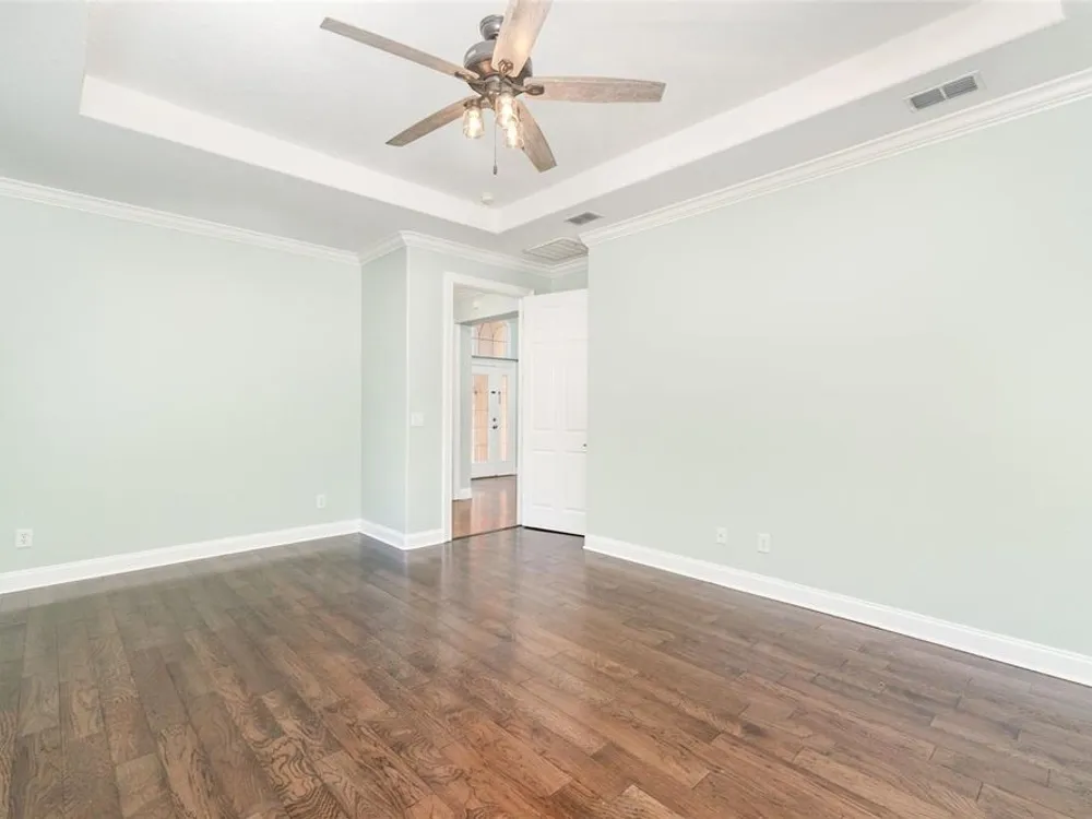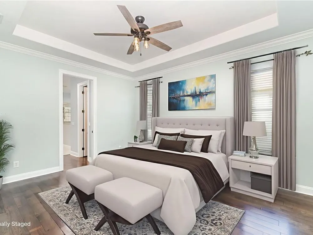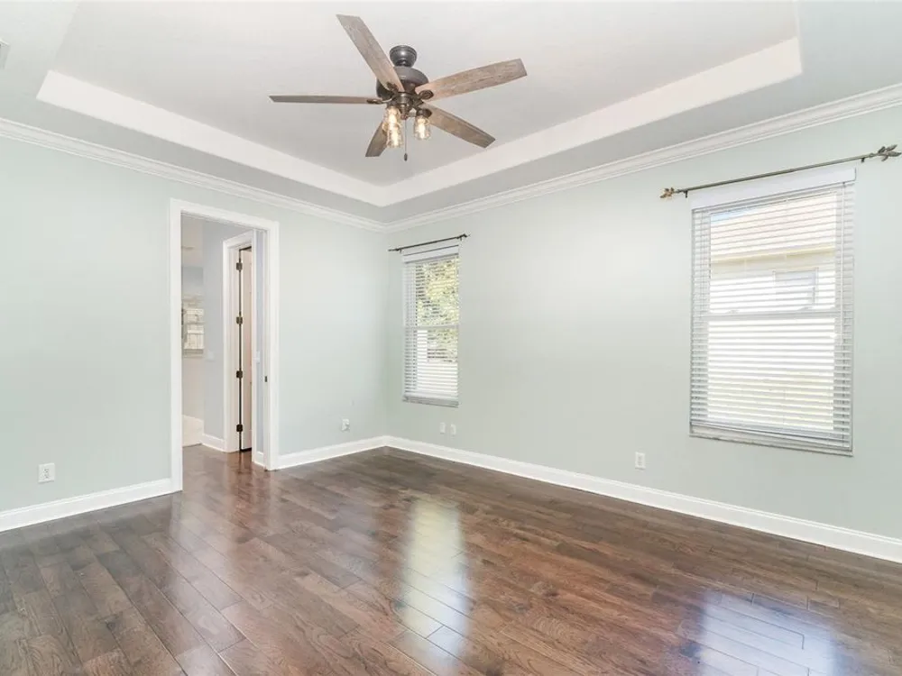 - Ceiling Fan(s), Crown Molding, Kitchen/Family Room Combo, Open Floorplan, Solid-Wood Cabinets, Split Bedrooms, Stone Counters, Tray Ceiling(s), Walk-In Closet(s)