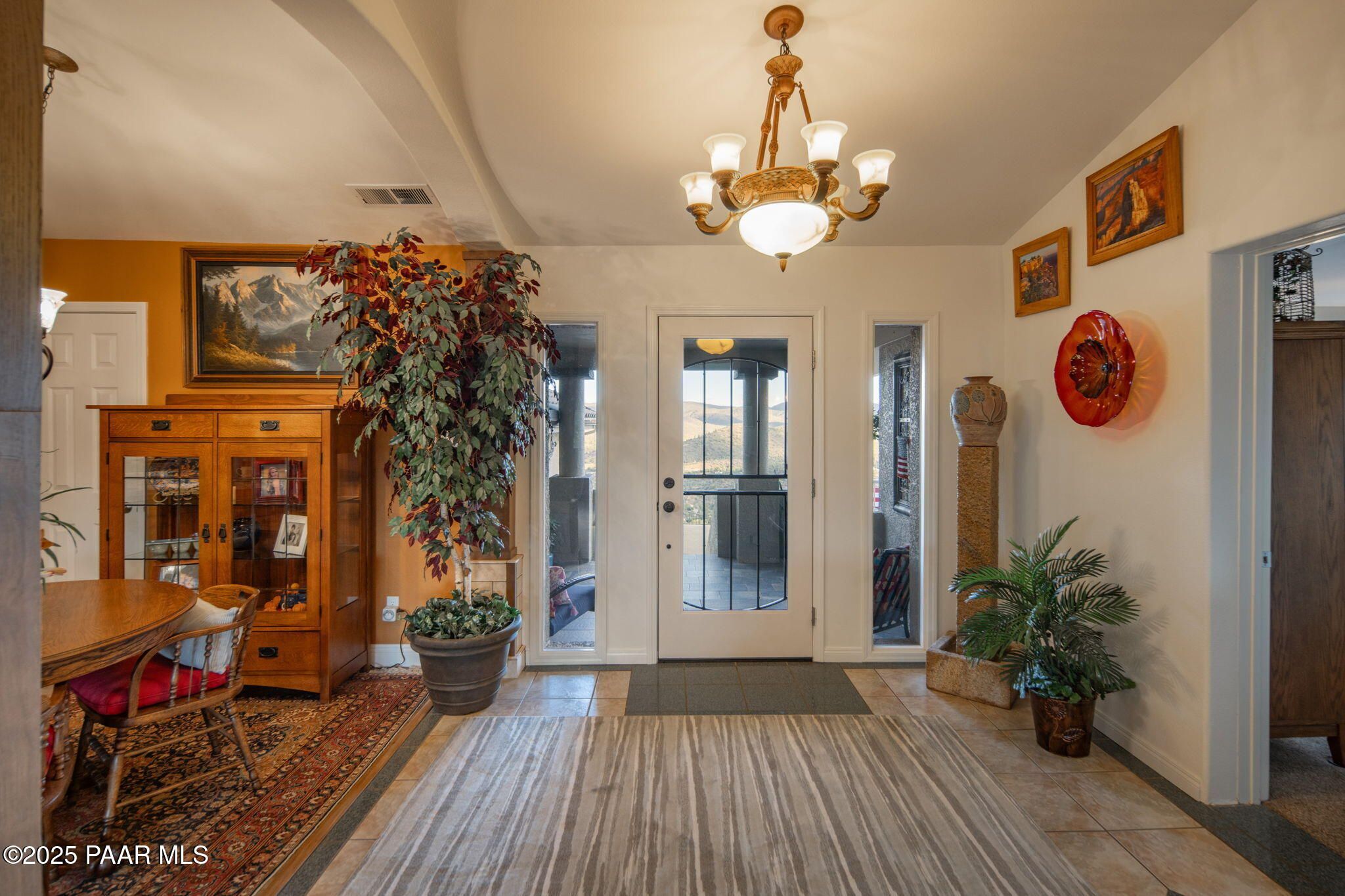 This custom built all steel home sits at the very top of Yavapai Hills with expansive 270 panoramic. This includes views of the Bradshaw mountains, Mingus mountain, Glassford Hill, the Dells, Willow Lake, city lights and Thumb Butte. This house boasts an open floor plan with a gorgeous kitchen featuring custom cabinets, stainless appliances and seamless granite counters. The split floor plan offers plenty of privacy.The large master suite has views to the North, walk in closet and large master bath. Enjoy Prescott's year round weather from the outdoor living spaces, front deck, back deck with pergola and garden sitting area. This turnkey home wont disappoint. Upgrades include: interior/exterior paint, lvp flooring, new tile, wood case triple pane windows, 11in walls with 8in insulation, owned solar, 5 new skylights, new garage doors, a new hvac system and an owned solar system.Make sure to watch the virtual tour