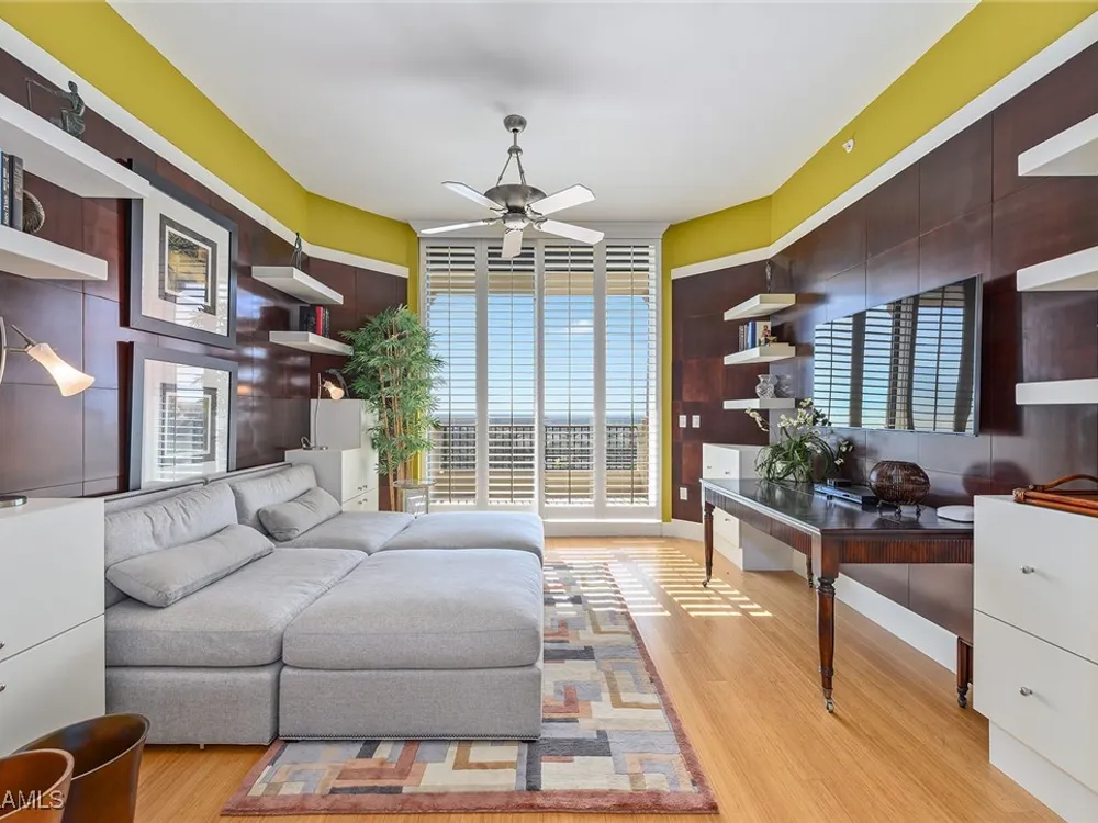 Gorgeous high-floor three-bedroom plus den, 3.5-bath gulf view designer renovation with custom finishes and upgrades throughout. Your private foyer welcomes you into an expansive living and entertaining space highlighted by designer light fixtures, custom ceiling trim, and the finest decor choices. Featuring soaring 10-foot ceilings and oversize floor-to-ceiling sliding glass doors allowing in maximum light and views. Entertaining spaces abound with an open chef's kitchen with granite countertop peninsula, casual seating and breakfast area, formal dining, a well-thought-out and designed custom bar, and an expansive outdoor screened-in lanai. Parking includes two under-building parking spaces. Trieste residents enjoy a resort-style pool with a private entertainment cabana, an updated social room, a fitness center, a lobby, a theater and on-site guest suites. Bay Colony residents enjoy the private Beach Club with a restaurant, pool, bar and fully attended beach services as well as tennis at the Bay Colony Tennis Club.