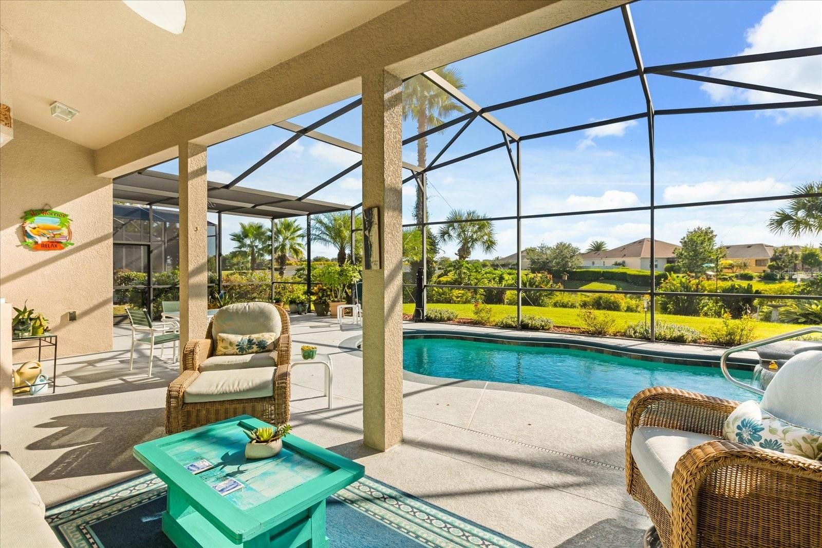REDUCED! Welcome to your dream home in the HIGHLY DESIRABLE LAKES OF MOUNT DORA community! This elegant 3 bedroom, 2 bath residence with nearly 2,000 square feet of living space offers the perfect blend of comfort, luxury, and resort style living in one of Florida’s most celebrated 55+ gated communities. As you arrive, you will notice the pristine curb appeal and meticulously maintained landscaping with stylish curbing, setting the stage for what awaits inside. Step through the front door into an open, light filled floor plan that showcases custom details throughout. The spacious great room features a wall of sliding glass doors that frame majestic views of your private pool and the sparkling lake beyond. With a reversed kitchen layout designed to capture those same pool and lake views, you will love preparing meals with granite countertops, custom banquette seating in the breakfast nook, and a solar tube that fills the kitchen with natural light. The master suite is a true retreat, offering two custom designed closets, a spa like bath, and direct access to your outdoor oasis. Guests will enjoy privacy in the split bedroom layout with a full bath nearby. A versatile additional bedroom is perfect as an office, den, or creative space, complete with custom built in shelving and filing cabinetry. Plantation shutters in nearly every room add timeless charm, while high end touches such as motorized solar shades, landscape enhancements, and custom storage make this home as functional as it is beautiful. Step outside to your private paradise where a screened lanai, sparkling pool, and serene lake views create the ultimate backdrop for entertaining or simply enjoying a quiet evening at sunset. NEW ROOF INSTALLED NOVEMBER 2025! The Lakes of Mount Dora lifestyle is unmatched. Cruise over 4.5 miles of interconnecting waterways, enjoy a state of the art clubhouse with tennis, pickleball, billiards, fitness center, craft and card rooms, library, resort style pool, and a grand ballroom for social gatherings. Just minutes from historic downtown Mount Dora, you will have access to charming shops, dining, and year round art and craft festivals. This move in ready, lovingly maintained home is an absolute MUST SEE. Do not miss the opportunity to live the Florida vacation lifestyle you have always dreamed of. Let me be the first to Welcome YOU Home!