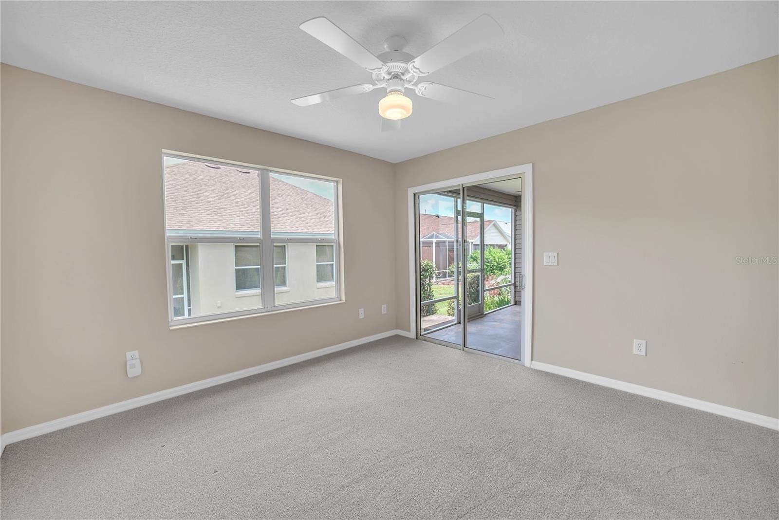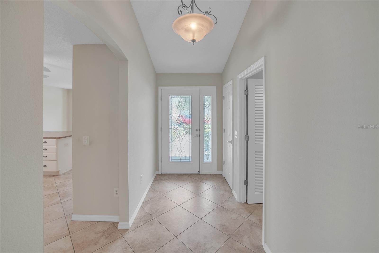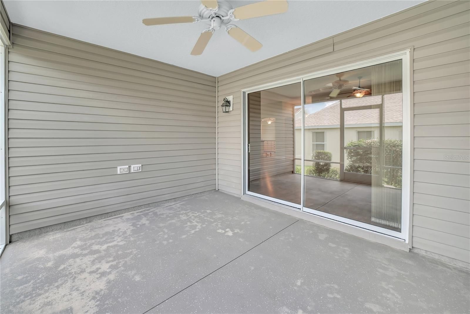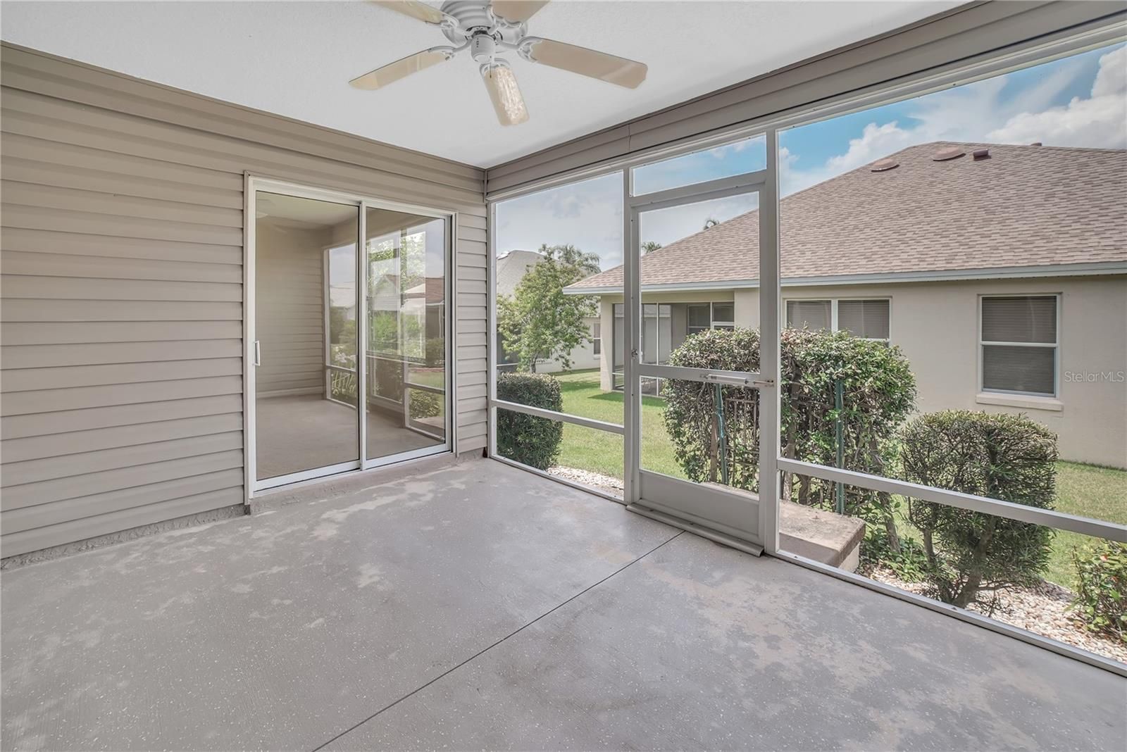 Welcome to Florida living at its finest in The Villages, Florida’s premiere retirement community! Located in the highly sought-after Village of Sabal Chase, this beautifully maintained, move-in ready home offers comfort, convenience, and charm just 1 mile from Lake Sumter Landing. This inviting residence boasts great curb appeal with low-maintenance vinyl siding and a welcoming front entry. Step inside to discover an open floor plan highlighted by volume ceilings and warm, rich hardwood floors that flow seamlessly through the spacious living and dining areas—perfect for entertaining or relaxing in style. The generously sized kitchen is a delight with ample cabinet and counter space, along with a cheerful eat-in area ideal for enjoying your morning coffee. A thoughtfully designed split-bedroom layout ensures privacy, with the primary suite featuring dual walk-in closets and an en suite bath complete with dual vanities, a private toilet room, and a separate shower. Two additional bedrooms with built-in closets share a convenient hall bathroom, offering comfortable accommodations for guests or hobbies. The laundry room is smartly positioned just off the garage for easy everyday living. At the end of a busy day filled with golf, pickleball, or socializing, you’ll love unwinding on your fully screen-enclosed porch—perfect for enjoying a peaceful evening breeze or entertaining friends in comfort.Additional highlights include a newer HVAC system (2021) and brand-new hot water heater (2025) for added peace of mind. Perfectly situated near Bacall & Bogart Executive Golf Courses, Lake Miona Recreation Center, and just minutes from both CR 466 and 466A—this home places you close to everything The Villages has to offer: golf, pickleball, pools, shopping, dining, medical facilities, and two of the area’s most vibrant town squares. Don’t miss this opportunity to own a slice of paradise in one of the most desirable neighborhoods in The Villages!