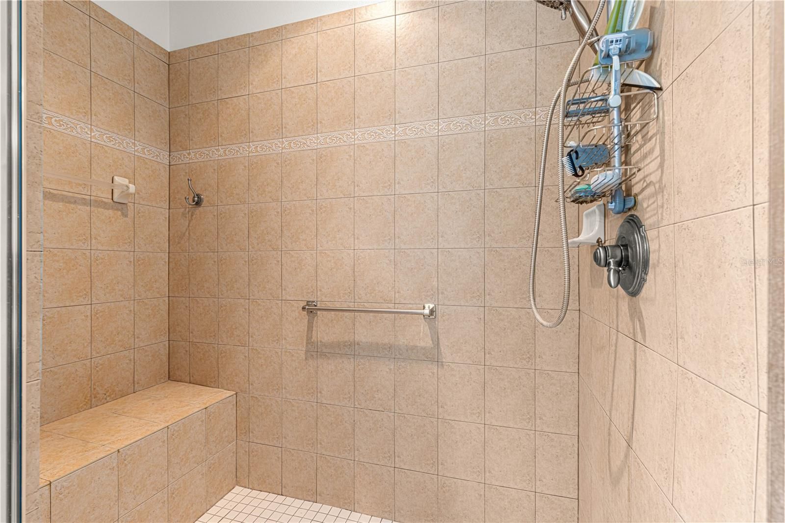 - Ceiling Fan(s), Eat-in Kitchen, High Ceilings, Living/Dining Room, Main Level Primary, Split Bedrooms, Stone Counters, Thermostat, Walk-In Closet(s), Window Treatments