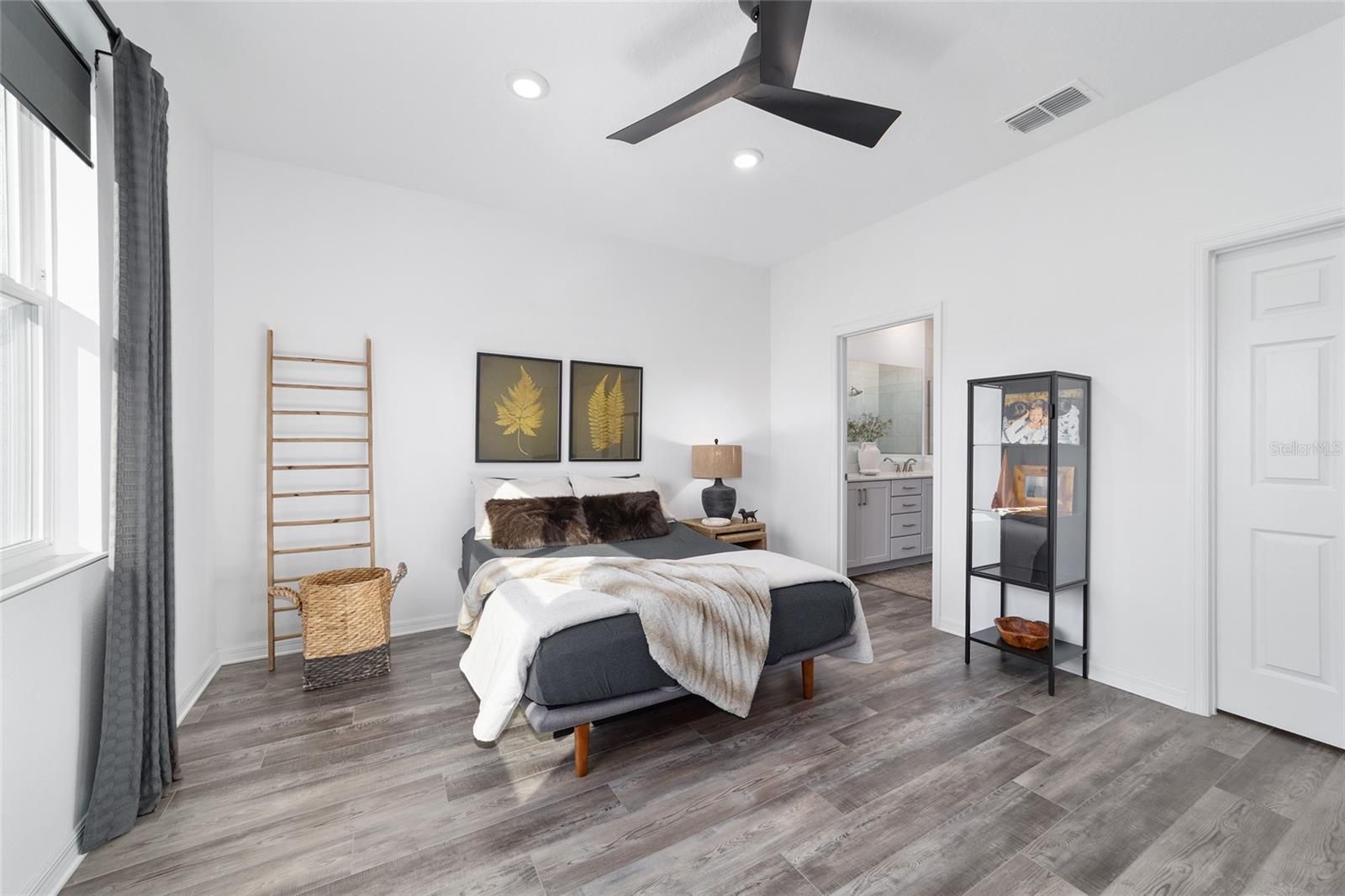 - Ceiling Fan(s), High Ceilings, Kitchen/Family Room Combo, Living/Dining Room, Open Floorplan, Main Level Primary, Stone Counters, Thermostat, Walk-In Closet(s), Window Treatments