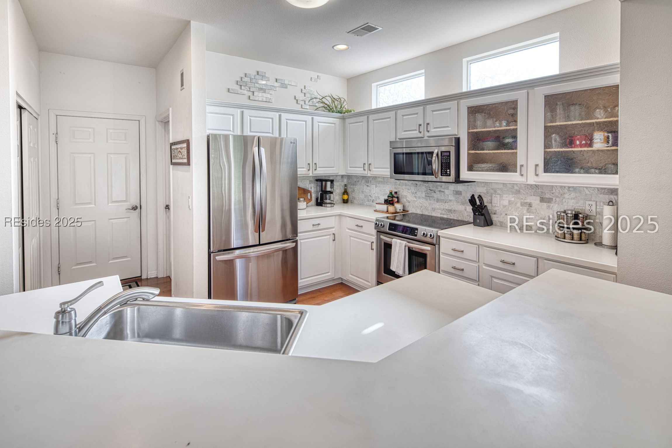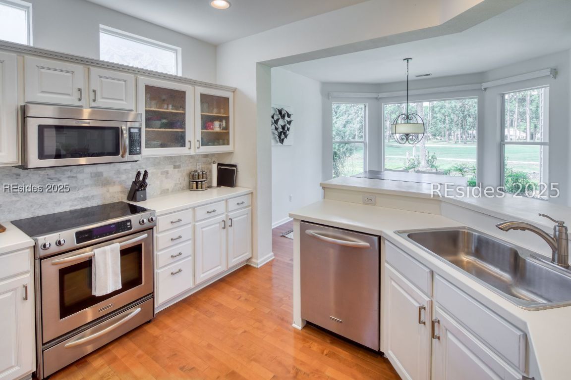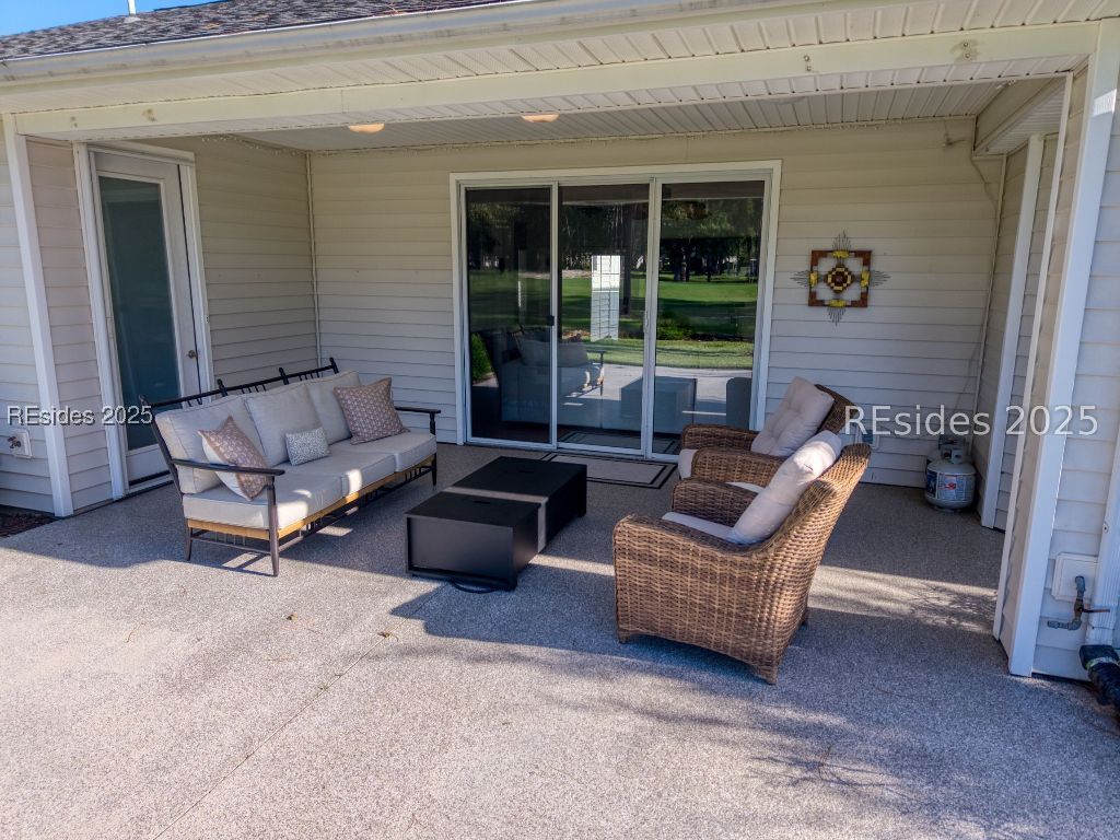 How would you like to wake up to this amazing golf view each morning?! This is the only double fairway view in Sun City Common, enjoy beautiful vistas of holes 15 and 16 on the newly renovated Okatie Creek golf course. Move in ready Hamilton Jefferson model has been meticulously maintained and a pleasure to show. The open floor plan offers 2 bedrooms (each with bay windows), 2 full baths, den/home office, large great room with gas fireplace, spacious dining room with bay window, and a fabulous kitchen with stainless steel appliances and updated backsplash. The separate laundry room is inside the home and is not a pass through from the garage. 2021 HVAC, plantation shutters in some rooms, hardwood floors in main living & bedrooms (no carpet). Enjoy the terrific views from the covered porch and extended patio, the perfect location for morning coffee or an evening cocktail. Reduced $15,000!