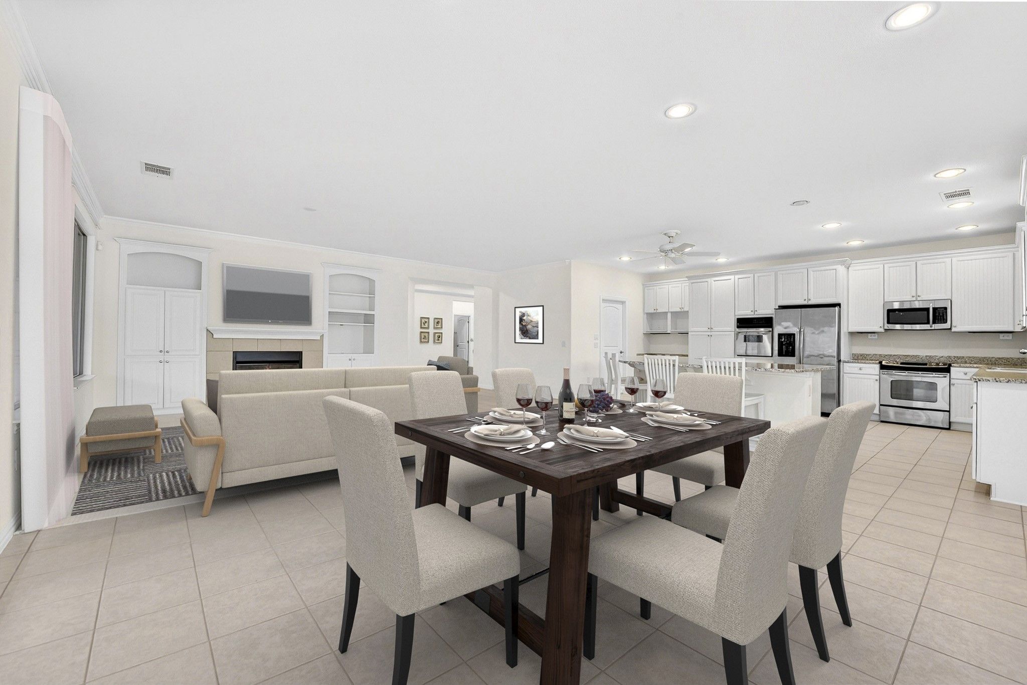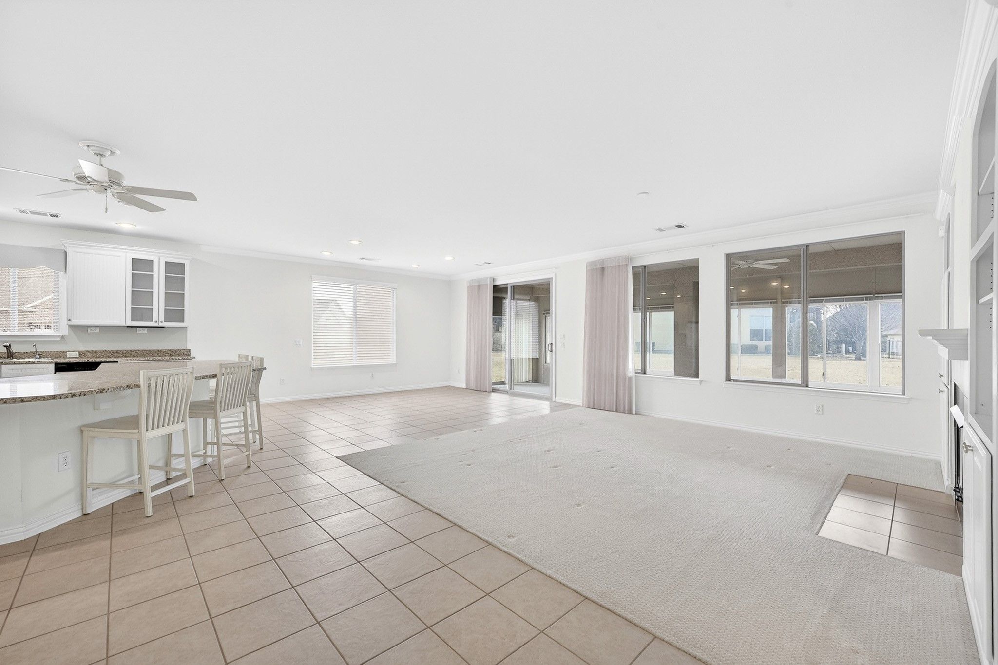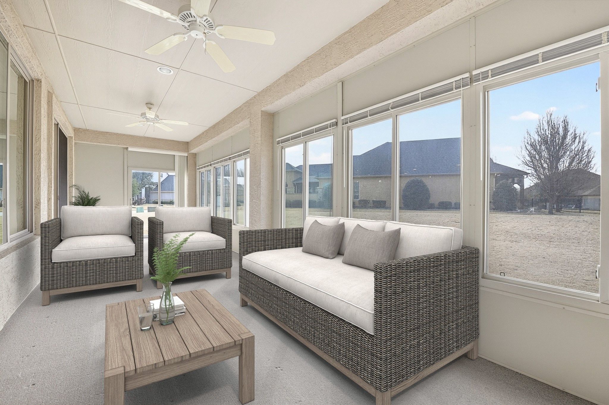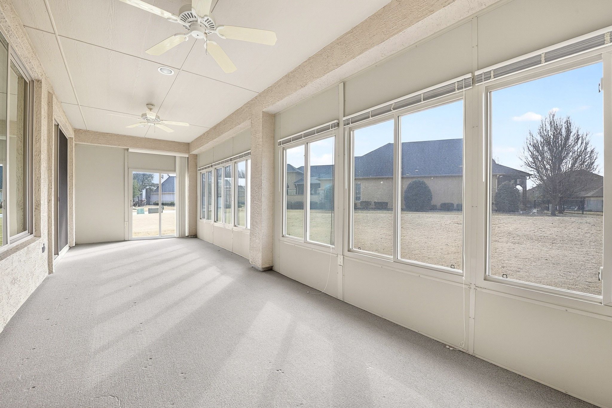 A favorite floorplan in the sought-after Robson Ranch community, this Talavera offers exceptional space, comfort, and functionality with three full bedrooms, two-and-a-half baths, and a rare three-car garage. The expansive kitchen—one of the largest in Robson Ranch—is a true centerpiece, featuring stainless steel appliances, granite countertops, under-cabinet lighting, a massive center island, abundant cabinetry, and a reverse osmosis water filtration system. The breakfast bar opens seamlessly to the dining and living areas, making it ideal for both everyday living and entertaining. Step outside to enjoy the generously sized covered patio, thoughtfully enclosed to provide additional living space while still allowing you to relax and take in the surroundings. Located across the street from the golf course, the backyard offers a peaceful setting to unwind and enjoy watching the game. The three-car garage is equally impressive, complete with a storm shelter, four-foot extension, built-in cabinetry, and a whole-house surge protector. Washer, dryer, and refrigerator are included for added convenience. Living at Robson Ranch means enjoying a true resort-style lifestyle every day, with an incredible array of amenities including golf, pickleball, tennis, softball, bocce, indoor and outdoor pools, a fitness center, library, woodshop, and so much more. This vibrant, active community offers something for everyone.