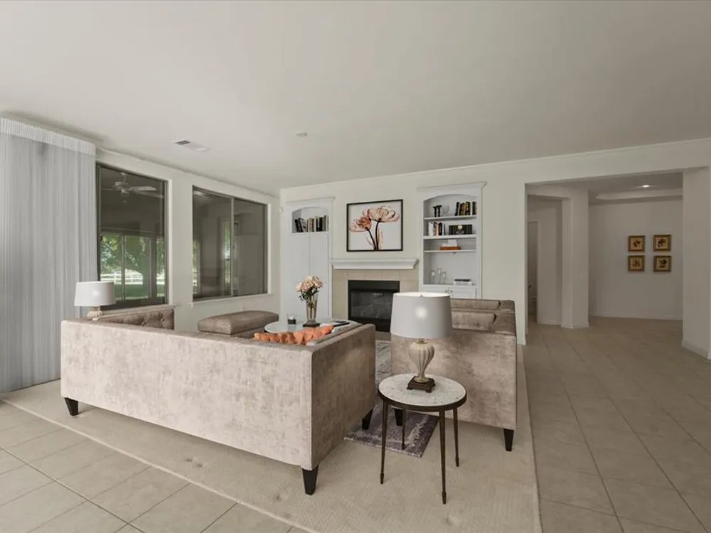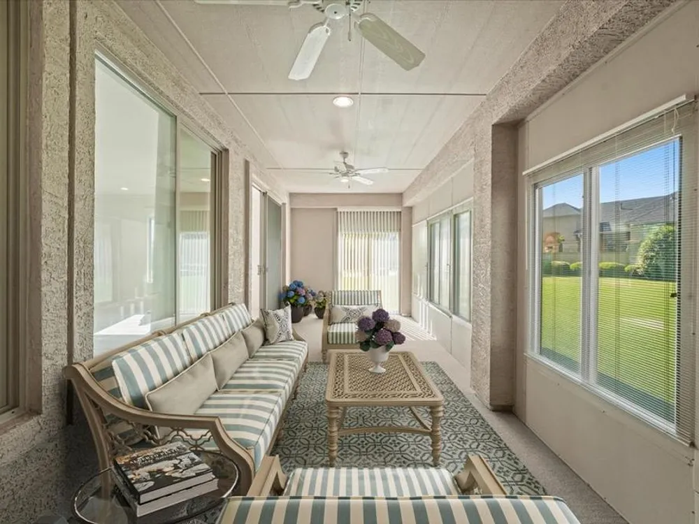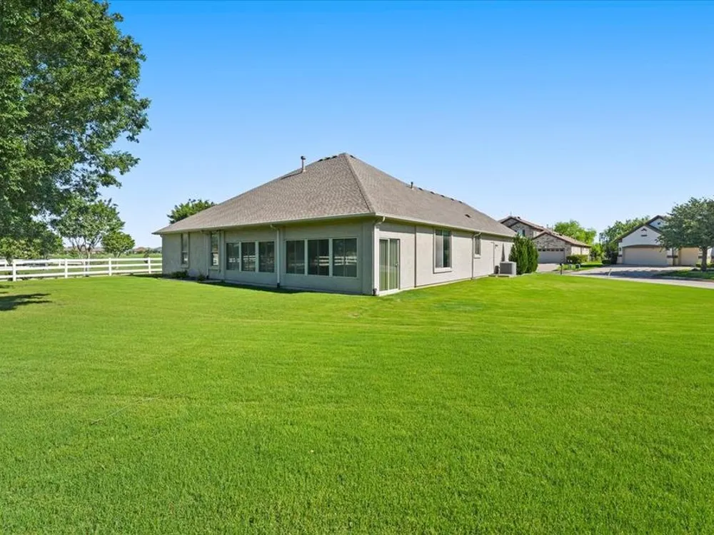 Experience resort-style living in this beautifully upgraded 3 bed, 2.5 bath home with a rare 3-car garage in the sought-after Robson Ranch community. Located close to the golf course, this home offers sweeping views and premium outdoor living. Inside, enjoy an open-concept layout with a spacious living area, high ceilings, and abundant natural light. The kitchen features granite countertops, stainless appliances, and a reverse osmosis water system, washer and dryer included with the home. The primary suite is a private retreat with a large walk-in closet and spa-like bath. Two additional bedrooms offer space for guests or a home office. This home is packed with upgrades, including a portable generator, storm shelter, and extended garage for added storage or workspace. Relax on the closed in patio and take in the views. Enjoy all the amenities Robson Ranch has to offer—golf, pools, fitness, and more—in this move-in ready home designed for comfort, security, and style.