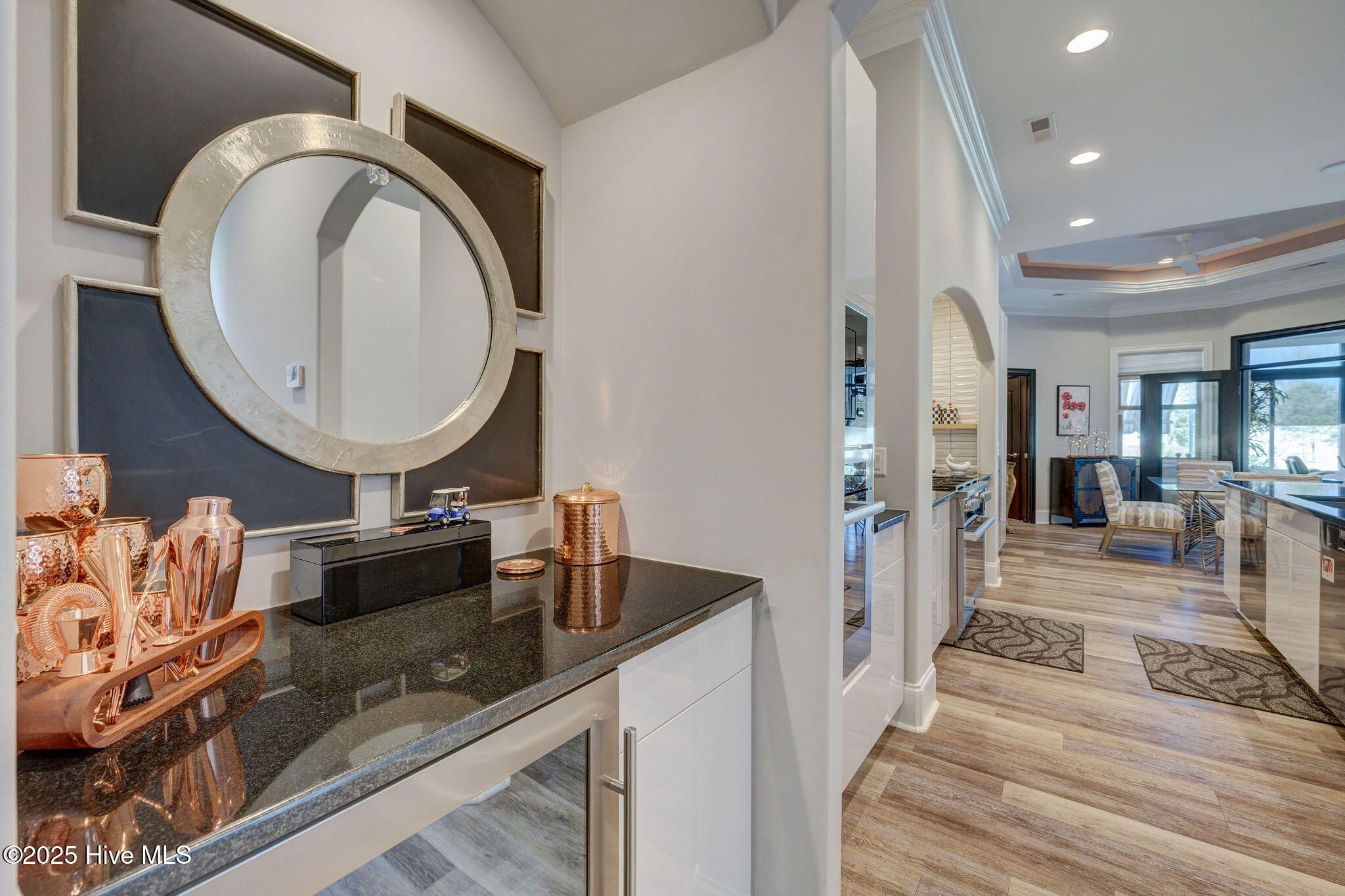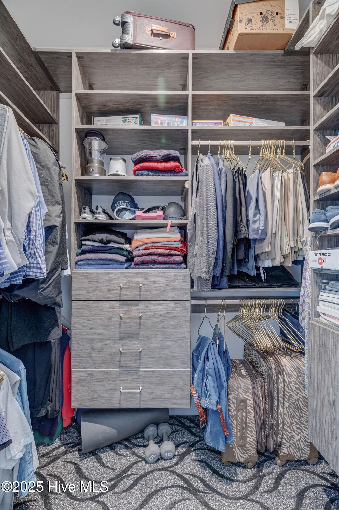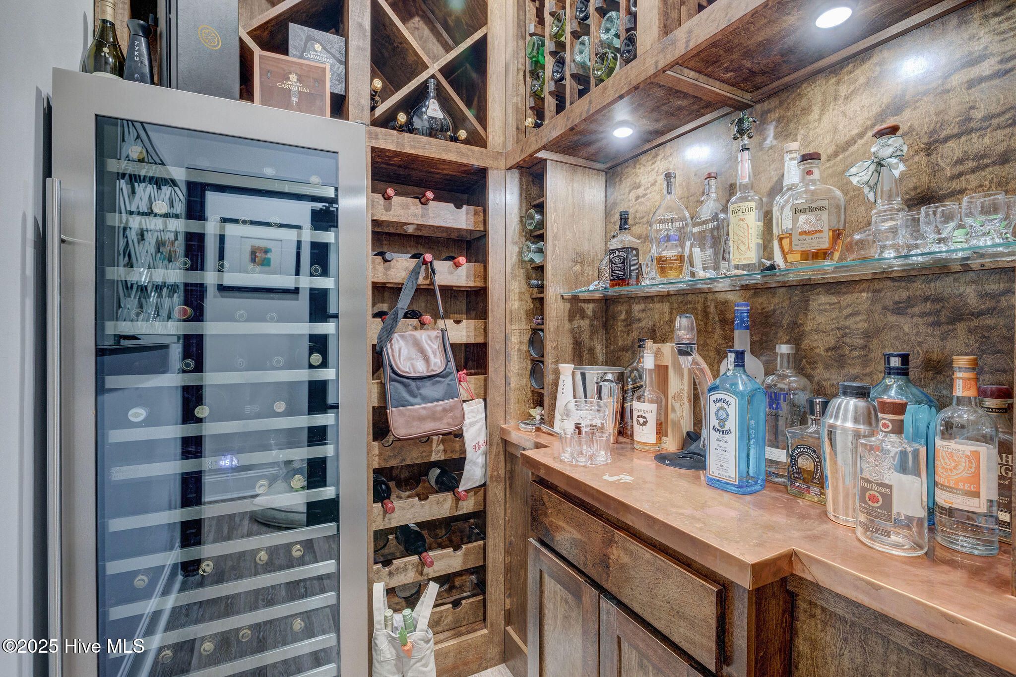 - Sound System, Master Downstairs, Walk-In Closet(s), Tray Ceiling(s), High Ceilings, Mud Room, Bookcases, Kitchen Island, Ceiling Fan(s), Pantry, Walk-In Shower, Wet Bar, Blinds