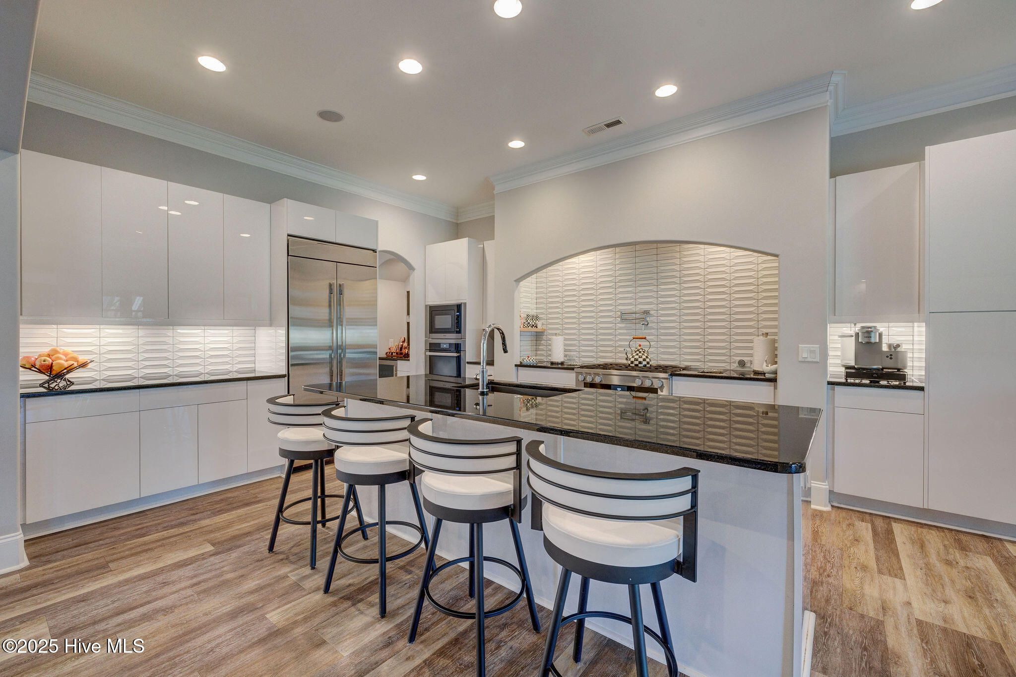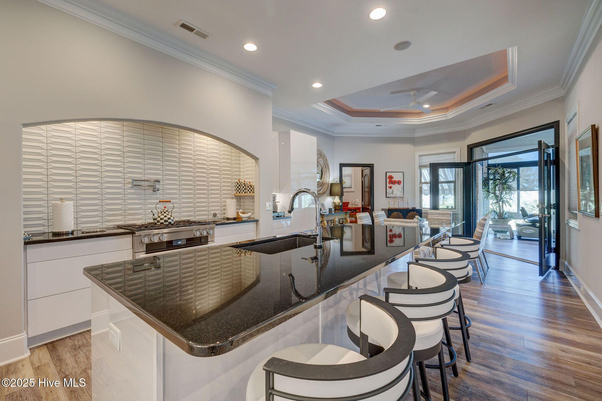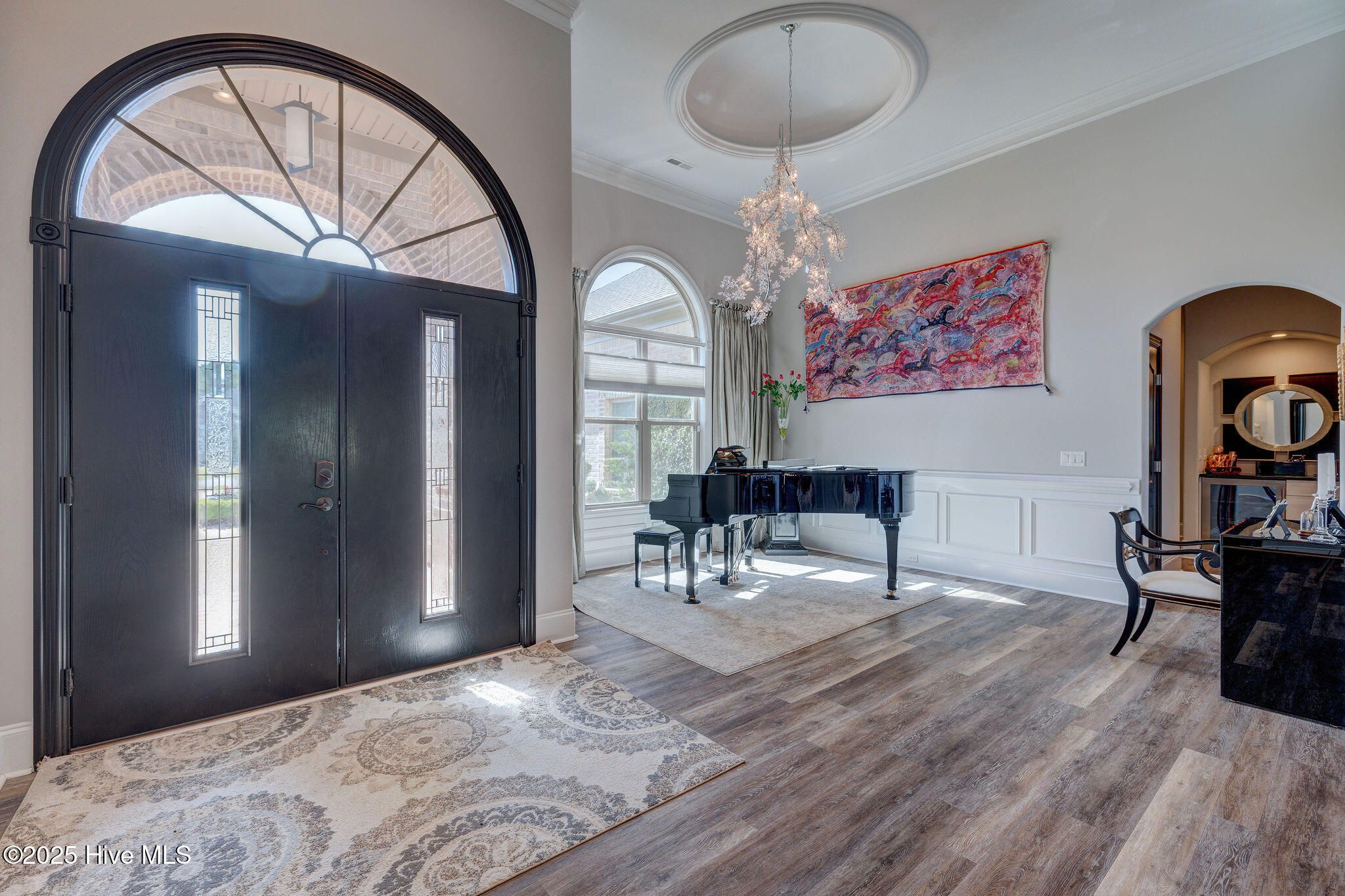 - Sound System, Master Downstairs, Walk-In Closet(s), Tray Ceiling(s), High Ceilings, Mud Room, Bookcases, Kitchen Island, Ceiling Fan(s), Pantry, Walk-In Shower, Wet Bar, Blinds