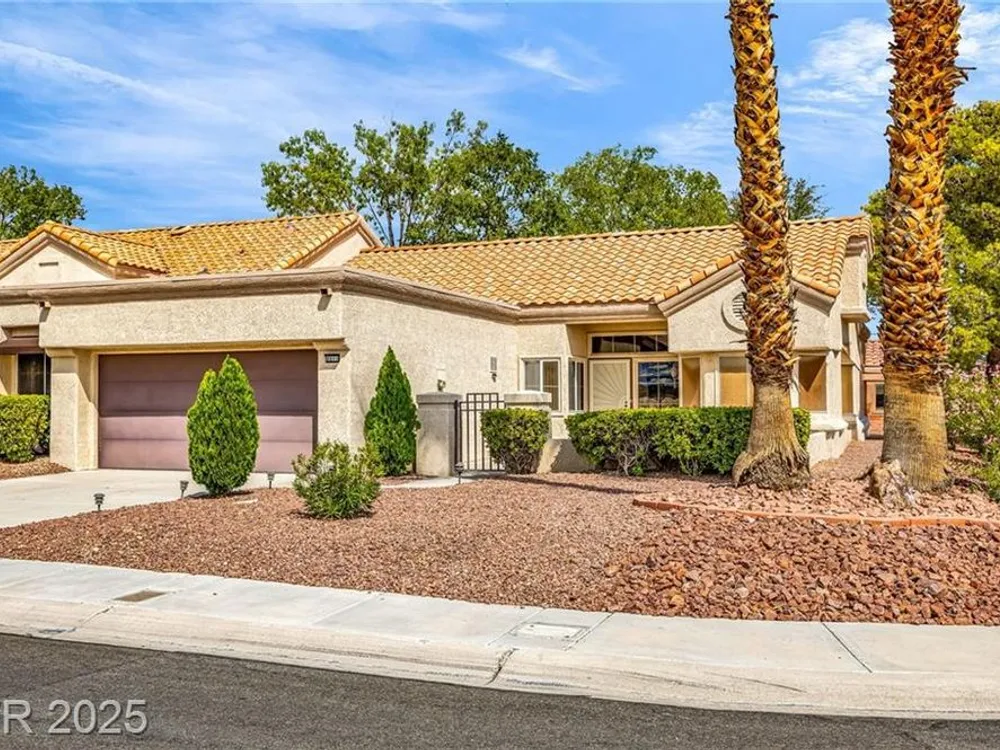 Well maintained townhome with beautiful terracotta tile floors through-out except bathrooms and kitchen, beautiful stained-glass window in the front entrance. Washer/Dryer/refrigerator all stay with the house. Large corner lot with huge concrete courtyard, security screen door and cement covered patio backyard. Sun City Summerlin is a 55+ community by Del Webb in Las Vegas, Nevada. Part of the Summerlin master-planned community, this Sun City neighborhood is nestled within the Spring Mountain Range at an elevation of 3,000 feet. 7,779 attached and single-family homes make up Sun City Summerlin. 34 different amenities to this beautiful community.