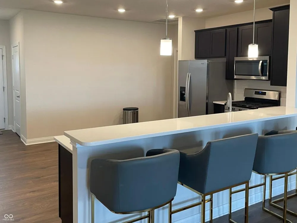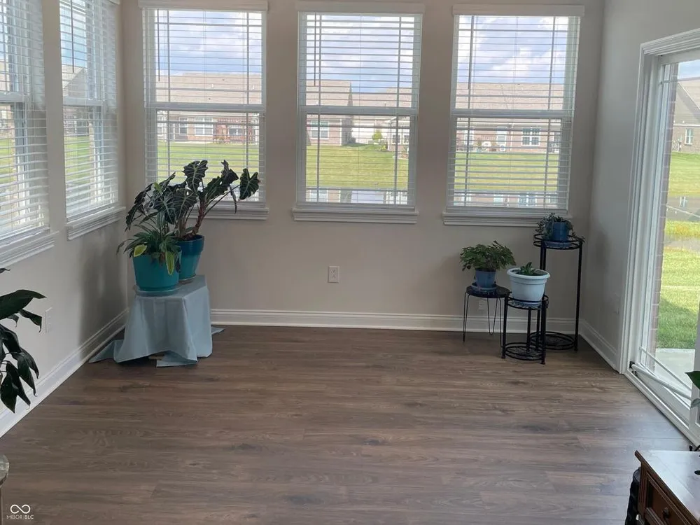 Welcome home to this spacious 3 bedroom/2 bath patio home. This split level ranch home offers a flex room, sunroom, and a finished 2 car garage. Each bedroom has a walk in closet with lighting. The kitchen is beautiful with 42-inch cabinets with crown, pantry and quartz countertops. Bar seating adds room for entertaining. Primary suite has huge lighted walk in closet, tiled walk-in shower. Enjoy the many amenities this community offers to include a swimming pool, basketball court, playground and miles of walking trails. This community also offers a low maintenance lifestyle with lawn care & snow removal. This home is equipped with water softener, alarm system, Smart Home Technology featuring a smart video doorbell, smart Honeywell thermostat, Amazon Echo Pop, smart door lock, Deako plug-n-play lighting and much more.