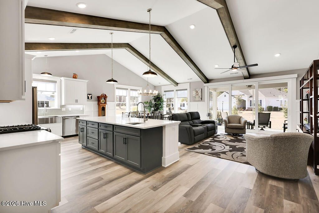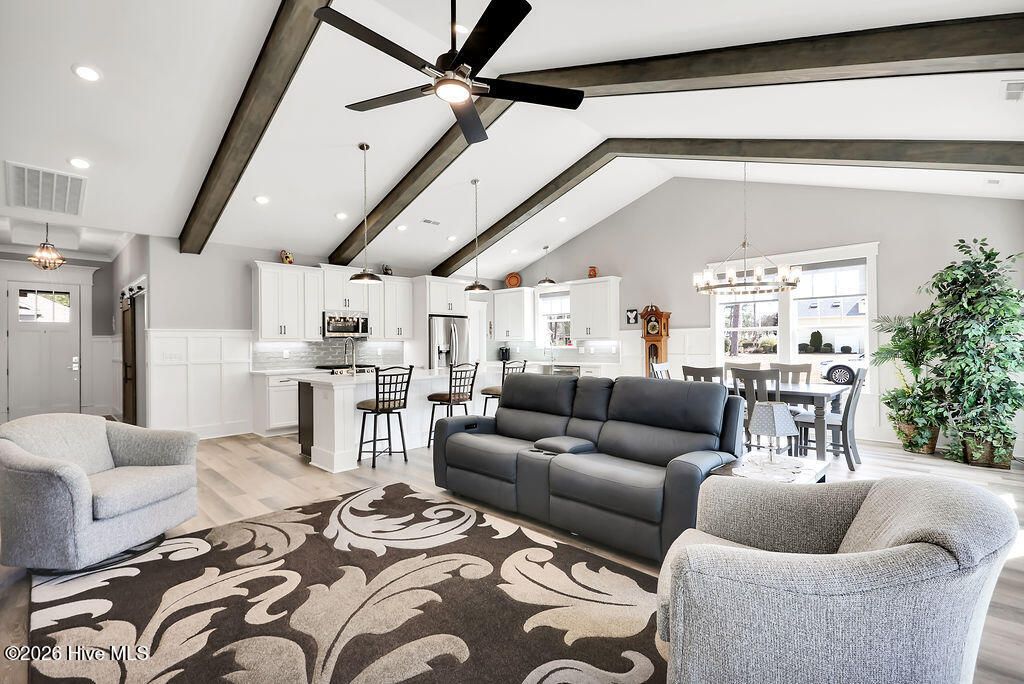 There is nothing on the market like this Beautiful home built by none other than Fox Homes! A One level living, cottage patio home with stunning Wainscotting and Trim work and all the details anyone could want! Soaring ceilings with Beautiful Beams, Exquisite Lighting that leaves all of the others speechless. A Stunning spa-like Primary Bathroom you will never want to leave. Luxury Vinyl Plank throughout that you and your guests will love and built in wood shelving that says quality. Usually it is the kitchen that is the show stopper and this home is no different! There are 2 sinks, the stainless steel sink by the sunny window for the gourmet cook who loves with food and the smaller sink in the Island for the aspiring drink maker! Of course this quartz covered island is a beauty and the farm sconce lighting over the Island really keeps everyone looking up! Lets talk about the walk-in pantry that has electric outllets, and wood shelving with exceptional space for those extra big trips to Costco. As the natural light floods the open spaces there will be those days you want to cover those big bright windows and the seller has installed Motorized blinds and beautiful shades for the days you want to just wrap up in a blanket with a great book and enjoy the quiet peaceful neighborhood of Brunswick Plantation. The man in your life will love the oversized garage, the extended driveway and the Slop sink for all of those messy projects. These are details that you will not see in New Home Construction.You usually have to pay ''extra '' for them if you can even get them. The owners will graciously convey the 1 year old refrigerator as well as the washer and dryer with the purchase. There are several items the owners are willing to sell outside of the contract. Take a peek at the list in the documents section. I hope your whistle is wet and you will not waste any time seeing this one of kind Fox Home. The owners love this home and they are sure you will