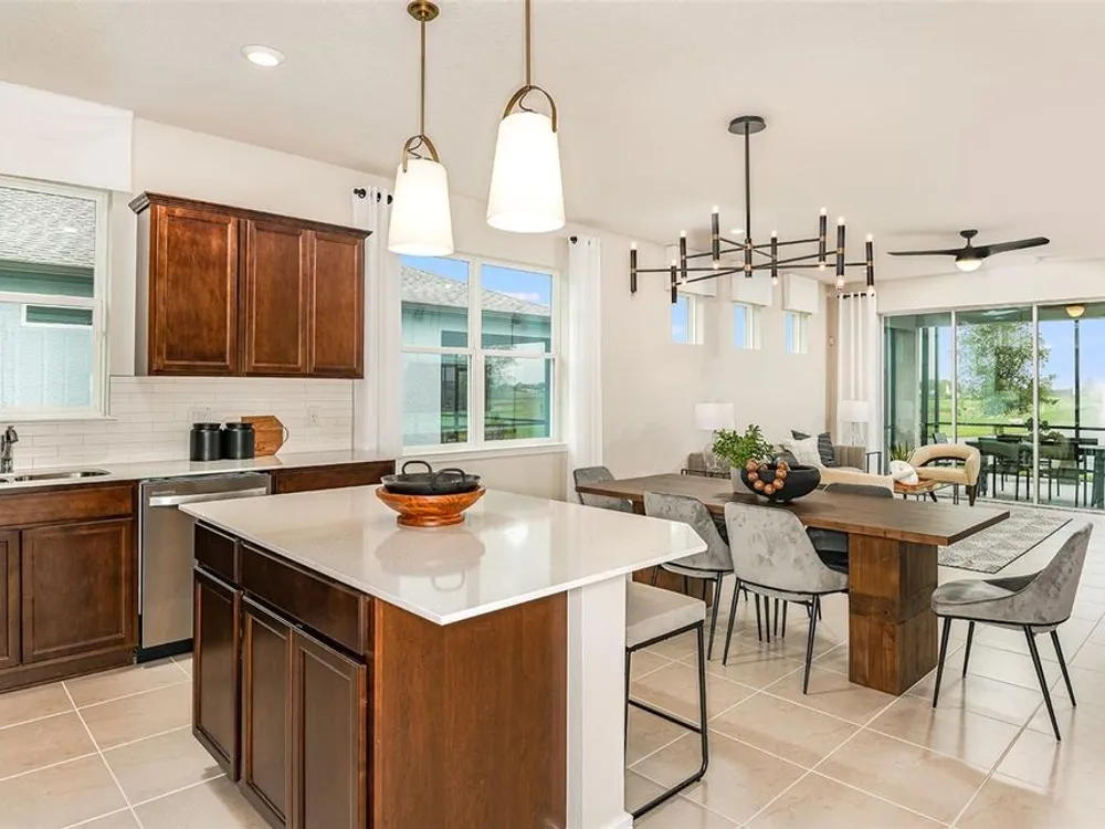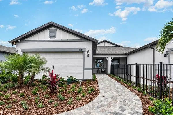 Final opportunities to purchase a new construction home and experience a new level of retirement living at Del Webb BayView, with a free Golf Cart included. This active adult community is located 30 minutes from downtown Sarasota, St. Petersburg, and Tampa. BayView is centered around signature resort-style amenities so you can stay active and where your neighbors become long-time friends. Featuring the perfectly sized Ellenwood villa, this home has the space you need and the finishes you’ll love. The designer kitchen showcases an island and a large single-bowl sink with an upgraded faucet, white cabinets, quartz countertops, tiled backsplash, a pantry, and Whirlpool stainless steel appliances including a refrigerator, dishwasher, microwave, and gas range. The bathrooms have flagstone cabinets, quartz countertops, a walk-in shower and dual sinks in the Owner's bath. There is luxury vinyl plank flooring in the main living areas and enclosed flex room, tile flooring in the baths and laundry room, and stain-resistant carpet in the bedrooms. Additional upgrades and features include a screened lanai, whole house gutters, flat panel TV prep in the gathering room, impact glass windows, a 2-car garage with floor epoxy, LED downlights in select areas of the home, upgraded lighting and door hardware, Whirlpool washer and dryer, and a Smart Home technology package with a video doorbell. Enjoy peace of mind with Pulte’s transferable, 10-year Limited Structural Warranty that covers materials and workmanship in the 1st year, workability of plumbing, electrical, HVAC, and other mechanical systems through the 2nd year, various types of water infiltration and internal leaks through the 5th year, and the structural integrity of the home through the 10th year. Plus, we’re currently offering limited-time incentives and below-market rates!