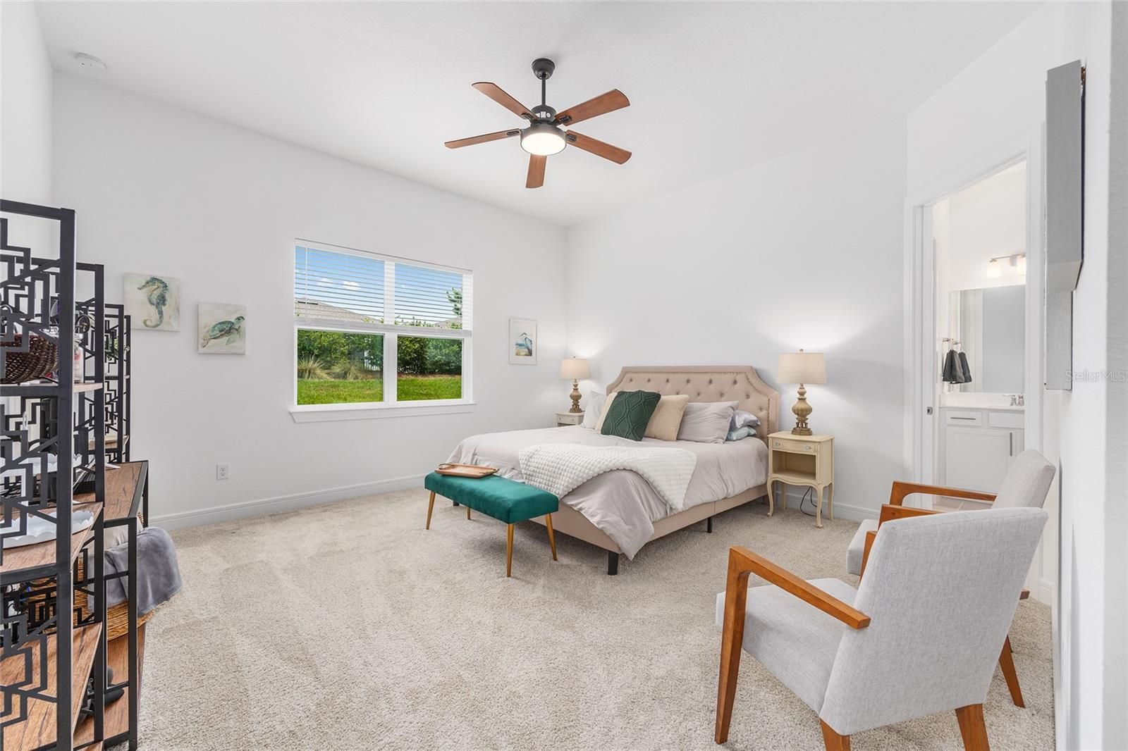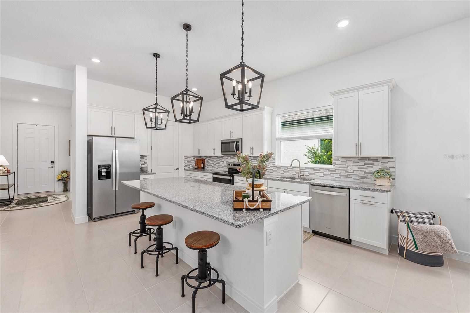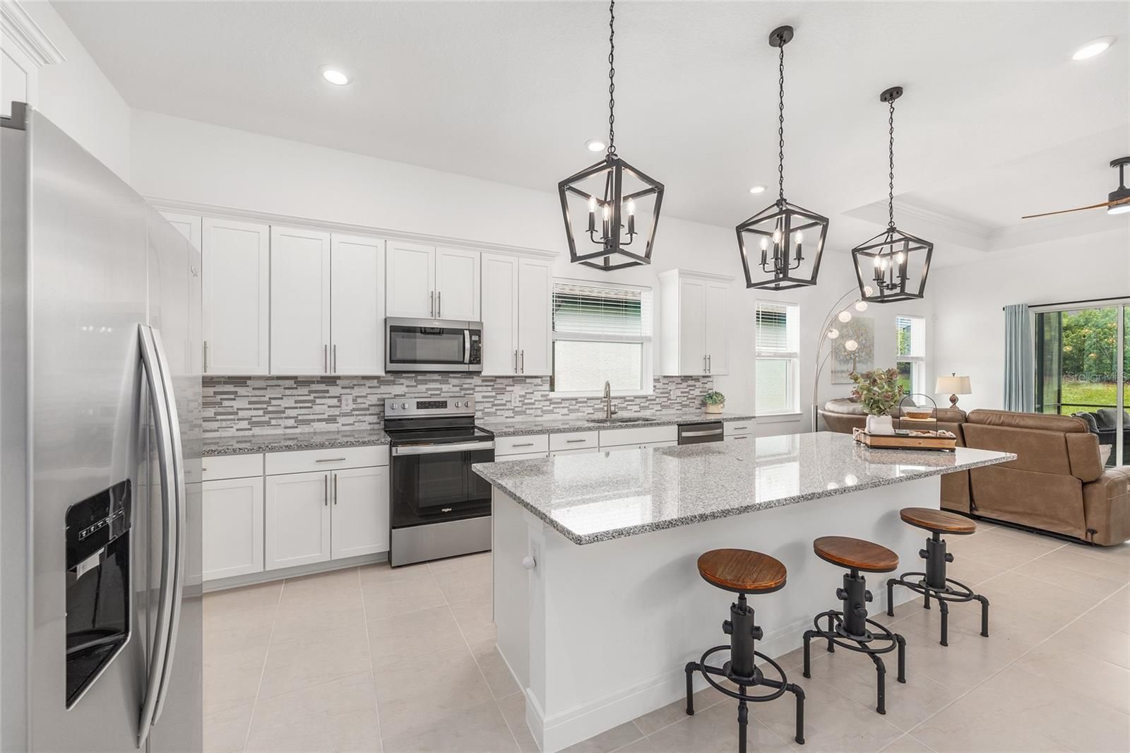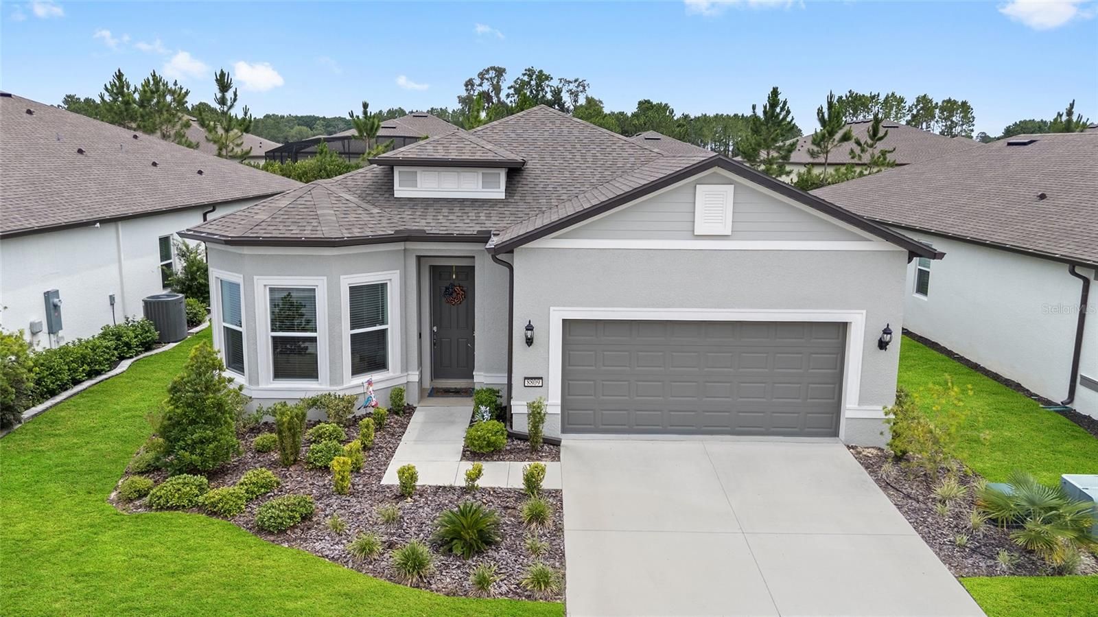 Welcome to your dream retreat, an exquisite haven designed for those who desire a seamless blend of elegance and convenience without the wait to build. Located in the Lexington neighborhood of the Stone Creek by Del Webb community, this barely used, immaculate Mainstay model seasonal home invites you to luxuriate in its polished design and captivating features. With its pristine condition, this property promises to be the perfect home for those seeking tranquility and style in a vibrant community. Displaying a carefully curated design, this home boasts 2 spacious bedrooms and 2 well-appointed bathrooms, crowned by generous 10 ft ceilings that impart an airy grandeur. The heart of the home lies in its expansive kitchen, a culinary enthusiast's dream that features gleaming granite countertops, stainless steel appliances, upgraded cabinetry, and a tasteful backsplash complemented by upgraded pendant lighting. The ample walk-in pantry ensures all your culinary essentials are within easy reach. Ceramic tile floors are throughout the main living areas, bathrooms, and laundry room, while plush carpeting adds warmth and comfort to the bedrooms. Blinds throughout provide privacy and control over your personal sanctuary. The primary bedroom indulges you with an en suite retreat equipped with a luxurious zero-entry large walk-in shower, a quartz-topped vanity, and a spacious walk-in closet. The guest bathroom, equally refined, features a tiled tub and quartz countertop. An office or flex room with a captivating bay window, solid French doors, and an upgraded direct connection to high-speed internet offers a serene space for work or relaxation. Extend your living outdoors with the expansive screened lanai, perfect for savoring the Florida climate in privacy. Additional features include an ecobee smart thermostat, a MyQ wireless garage door, a water softening system, a sink in the garage, a hard-wired security camera and a TV connection on the lanai. The home also comes with a transferable termite bond. This extraordinary home awaits its future residents, providing a remarkable opportunity to step into a lifestyle of comfort, elegance, and ease. Don't miss your chance to make this remarkable home your own. Contact us today to schedule a private viewing or for further information. Embrace the life you've always dreamed of.