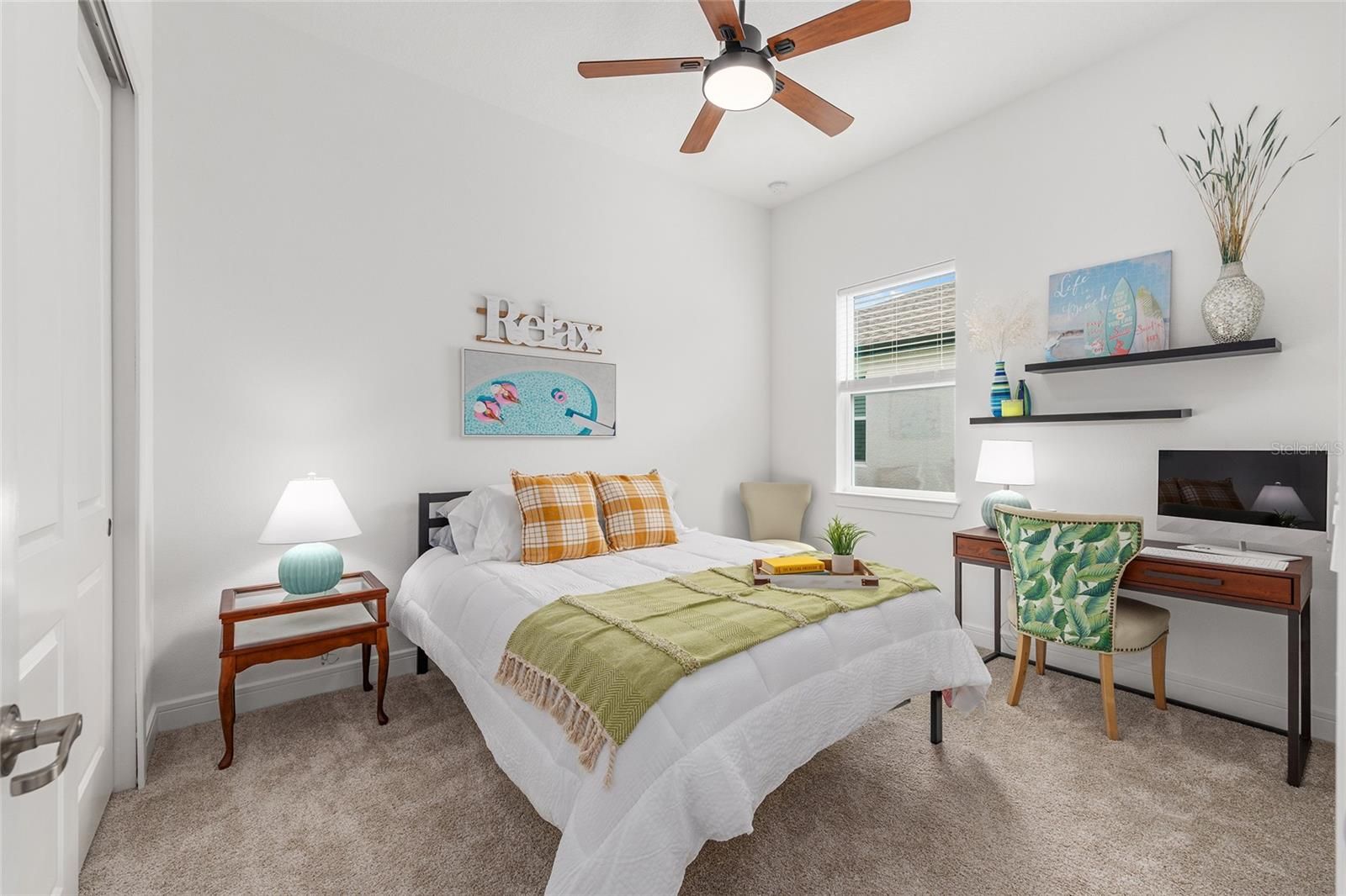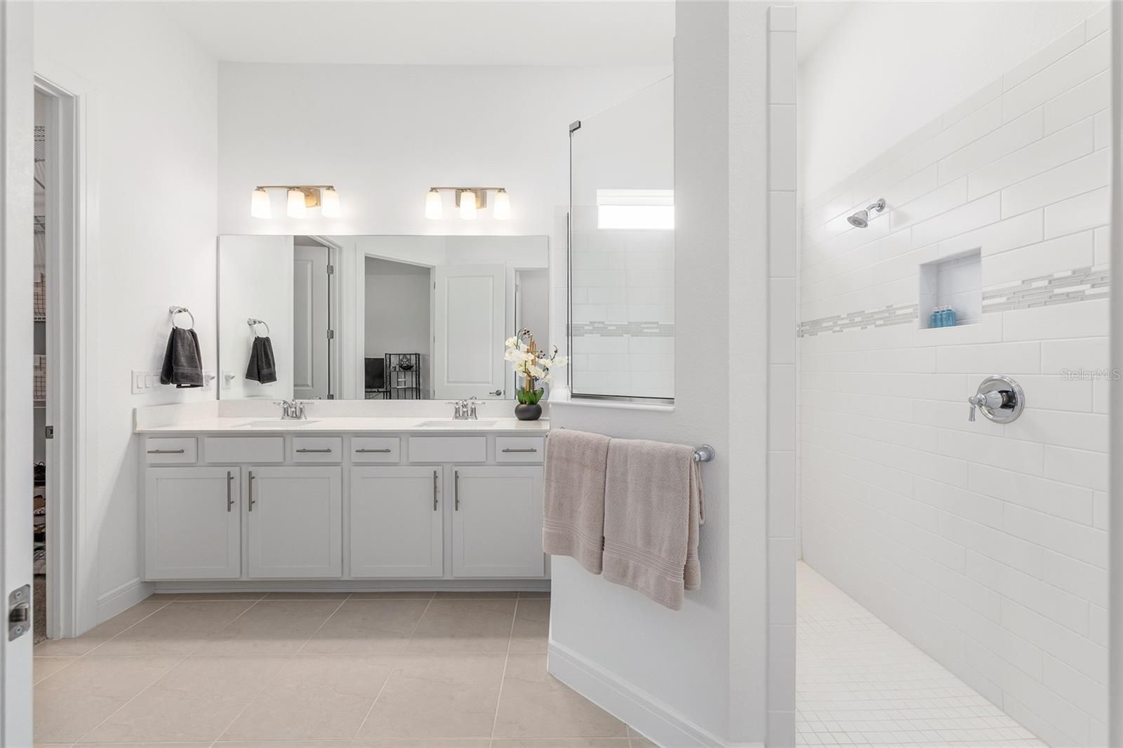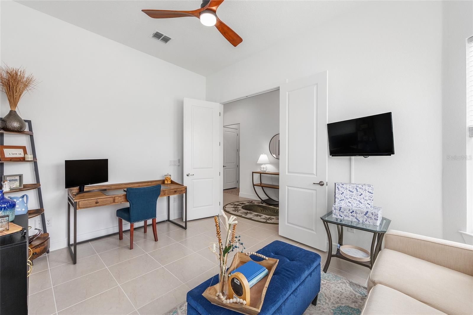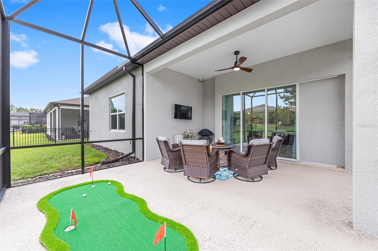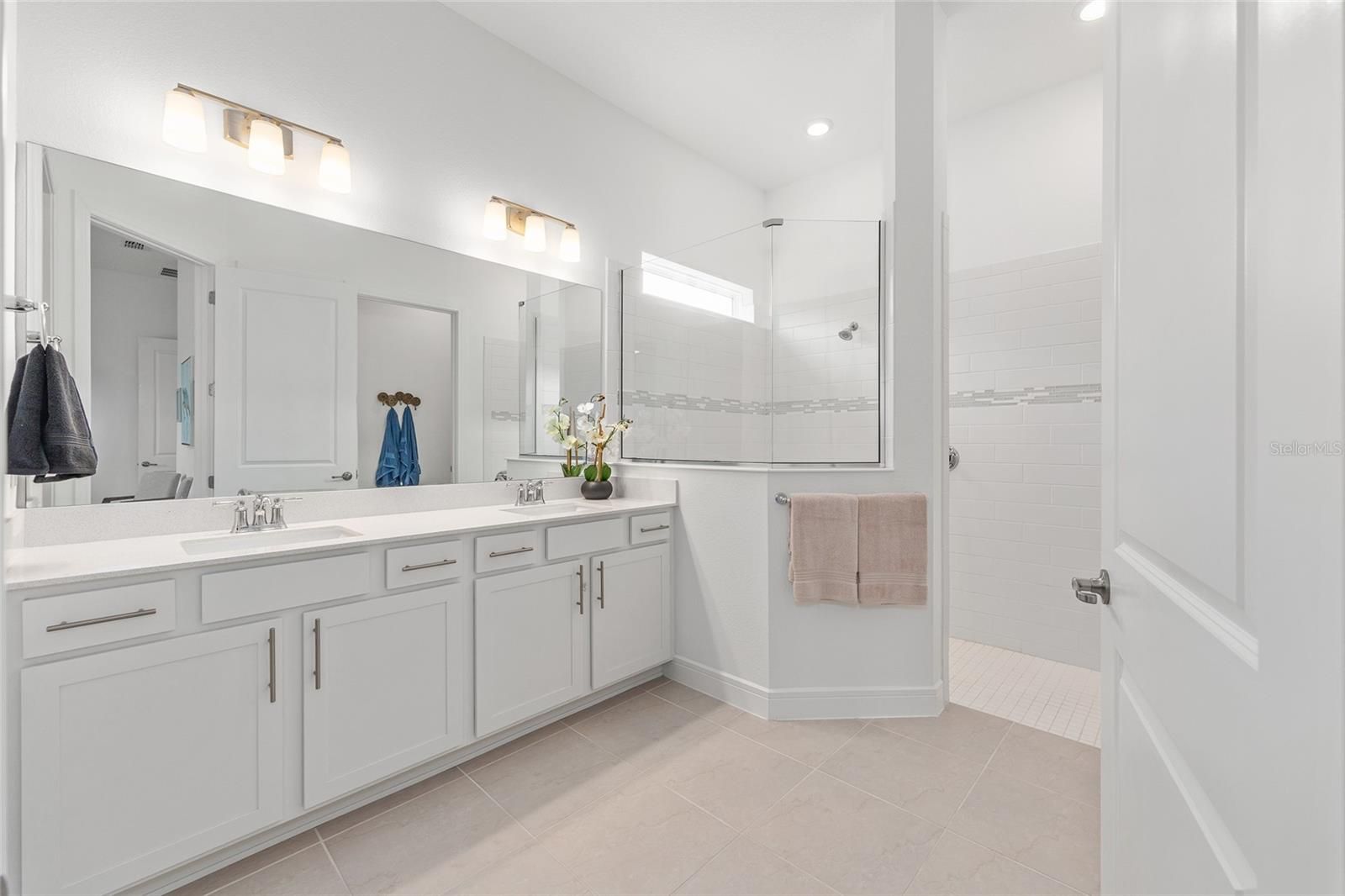 Welcome to your dream retreat, an exquisite haven designed for those who desire a seamless blend of elegance and convenience without the wait to build. Located in the Lexington neighborhood of the Stone Creek by Del Webb community, this barely used, immaculate Mainstay model seasonal home invites you to luxuriate in its polished design and captivating features. With its pristine condition, this property promises to be the perfect home for those seeking tranquility and style in a vibrant community. Displaying a carefully curated design, this home boasts 2 spacious bedrooms and 2 well-appointed bathrooms, crowned by generous 10 ft ceilings that impart an airy grandeur. The heart of the home lies in its expansive kitchen, a culinary enthusiast's dream that features gleaming granite countertops, stainless steel appliances, upgraded cabinetry, and a tasteful backsplash complemented by upgraded pendant lighting. The ample walk-in pantry ensures all your culinary essentials are within easy reach. Ceramic tile floors are throughout the main living areas, bathrooms, and laundry room, while plush carpeting adds warmth and comfort to the bedrooms. Blinds throughout provide privacy and control over your personal sanctuary. The primary bedroom indulges you with an en suite retreat equipped with a luxurious zero-entry large walk-in shower, a quartz-topped vanity, and a spacious walk-in closet. The guest bathroom, equally refined, features a tiled tub and quartz countertop. An office or flex room with a captivating bay window, solid French doors, and an upgraded direct connection to high-speed internet offers a serene space for work or relaxation. Extend your living outdoors with the expansive screened lanai, perfect for savoring the Florida climate in privacy. Additional features include an ecobee smart thermostat, a MyQ wireless garage door, a water softening system, a sink in the garage, a hard-wired security camera and a TV connection on the lanai. The home also comes with a transferable termite bond. This extraordinary home awaits its future residents, providing a remarkable opportunity to step into a lifestyle of comfort, elegance, and ease. Don't miss your chance to make this remarkable home your own. Contact us today to schedule a private viewing or for further information. Embrace the life you've always dreamed of.