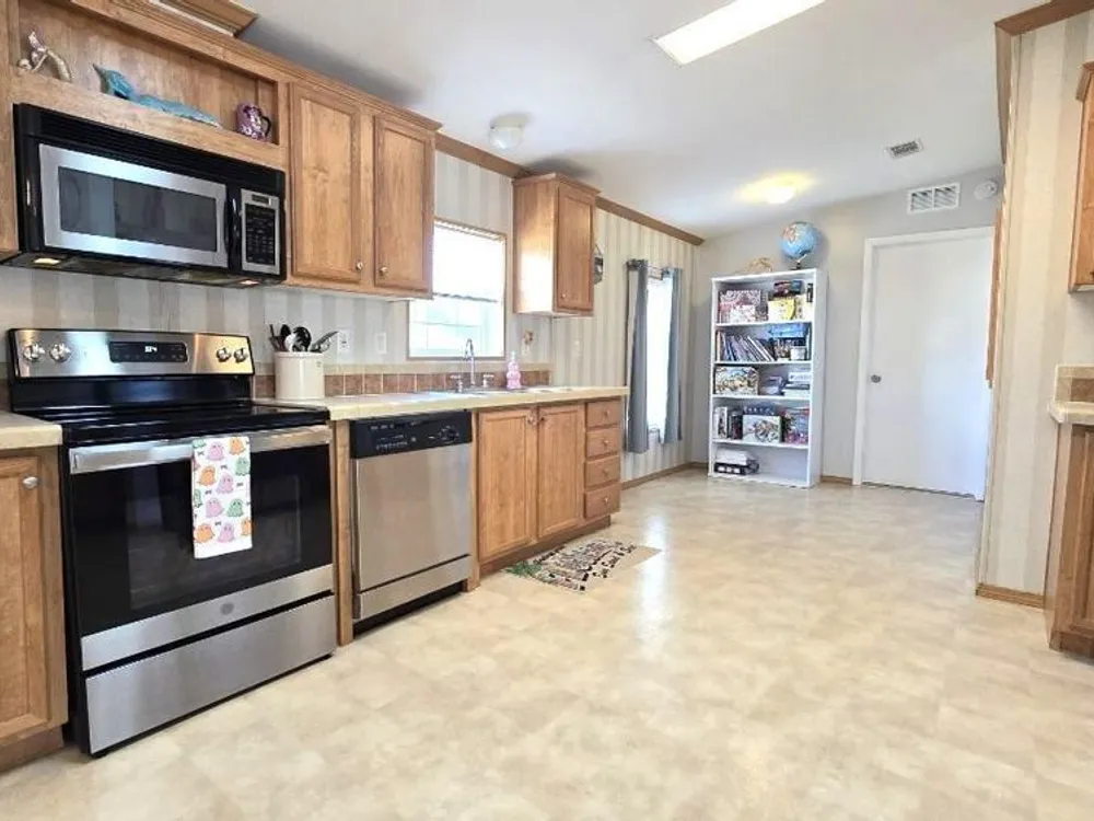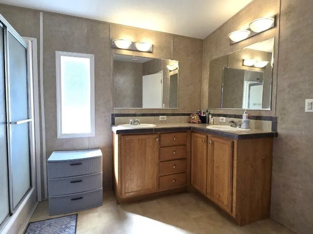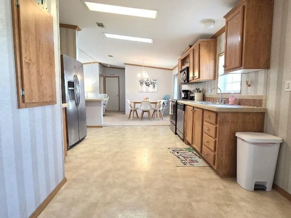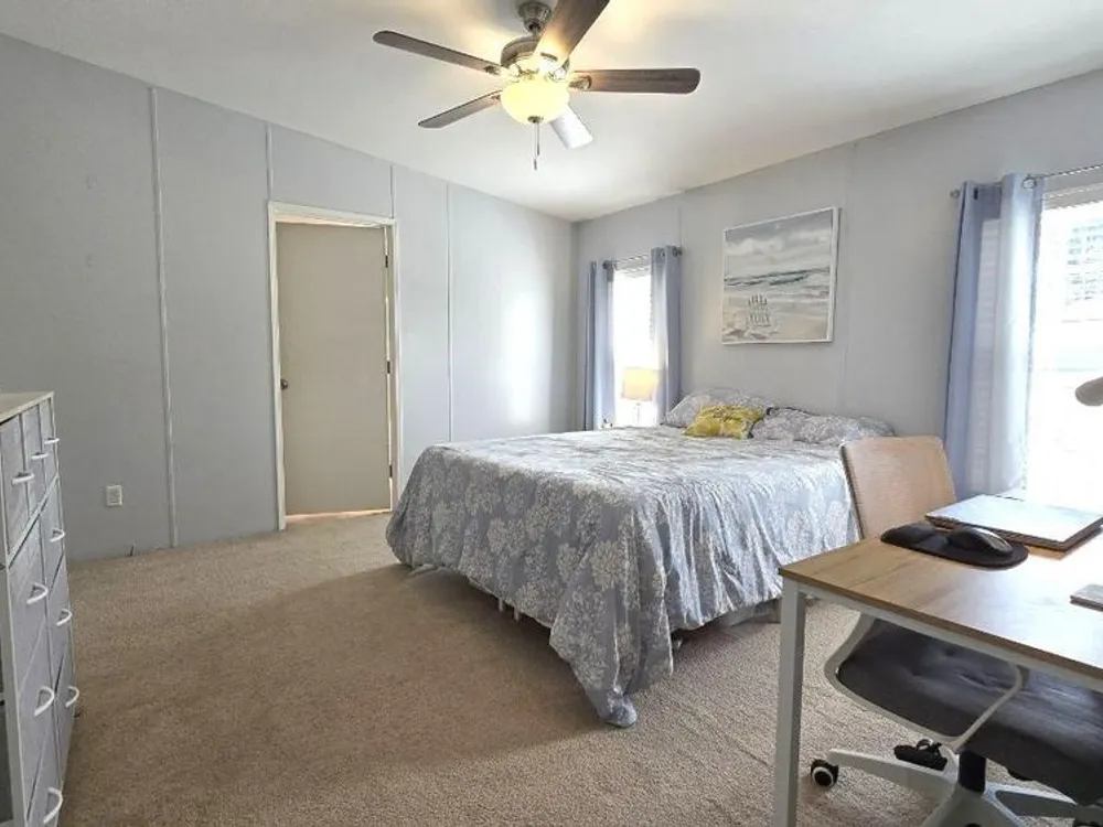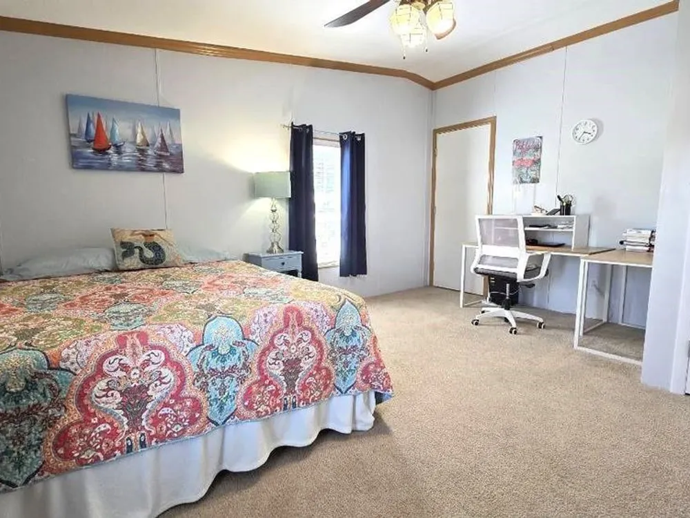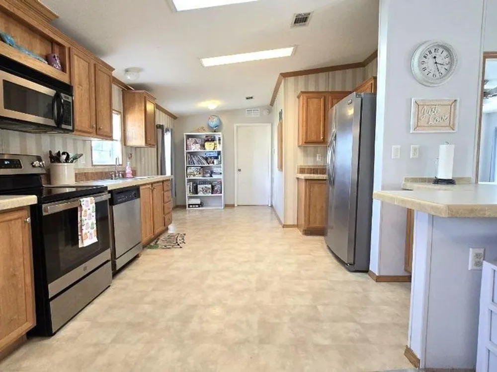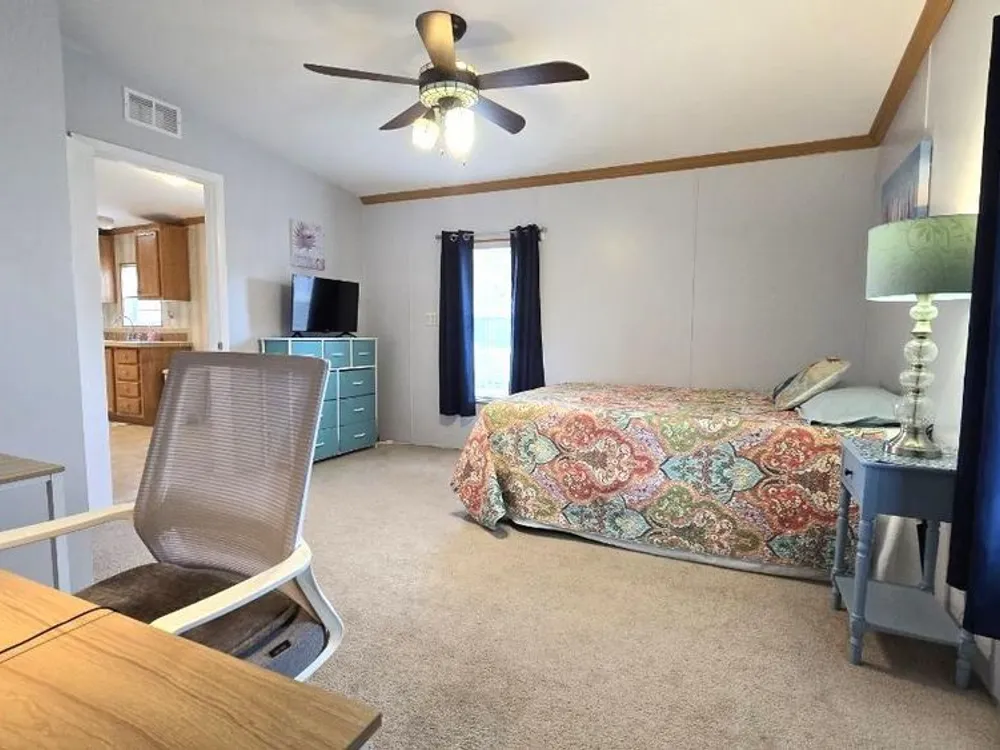 Welcome home to your spacious & thoughtfully updated 4-Bedroom home with in-law suite potential, fruit trees & room for a pool! Your future 4-bedroom, 2-bathroom home offers the perfect blend of comfort, functionality, and peace of mind—all nestled in a quiet neighborhood with no HOA, no lot rent, and no flood zone. Major updates bring peace of mind including a NEW ROOF & HVAC in 2022, gutters added in the front & the back as well as new skirting in 2023, and a new water heater in 2024. Inside, enjoy fresh interior paint, crown molding, and an inviting flow that’s perfect for everyday living and entertaining. One of the four bedrooms features a private exterior entrance, making it ideal for a guest suite, in-law quarters, or home office. All bedrooms boast walk-in closets, while the spacious master suite includes dual vanities, a relaxing jacuzzi tub, and a separate walk-in shower. The huge kitchen is a standout, offering stainless steel appliances, ample counter space, and plenty of room for a cozy breakfast nook. Step outside to your own private butterfly garden and a variety of fruit trees—including cherry, banana, lemon/lime, blueberry, mandarin, and mulberry. Plus, there’s plenty of room to add a pool and make the space your own. A large 10' x 12' storage shed with windows and electric hookups was added in 2024, giving you plenty of space to park your lawn mower and store away your gardening equipment and holiday decorations. Your future home is conveniently located off of HWY 200 where shopping, medical facilities, dining and entertainment are plentiful, however, it's nestled far enough into the neighborhood that you don't hear the noise - Truly a prime location! Don't miss your chance to call this exceptional property home—schedule your private showing today and discover the lifestyle you've been dreaming of!