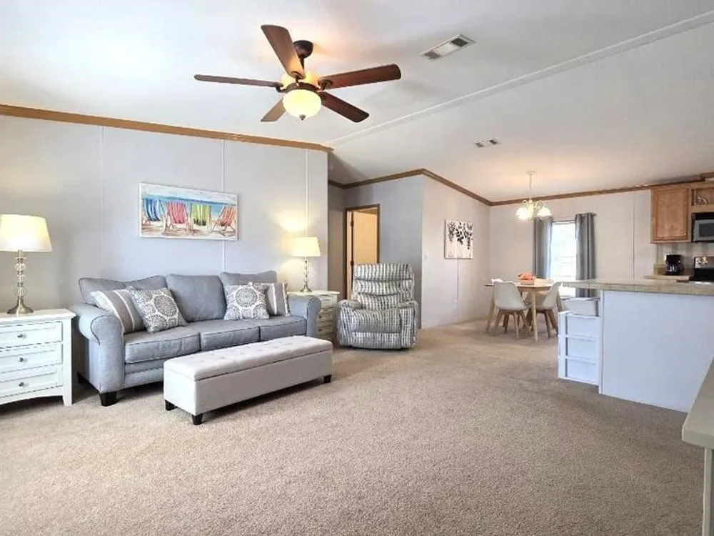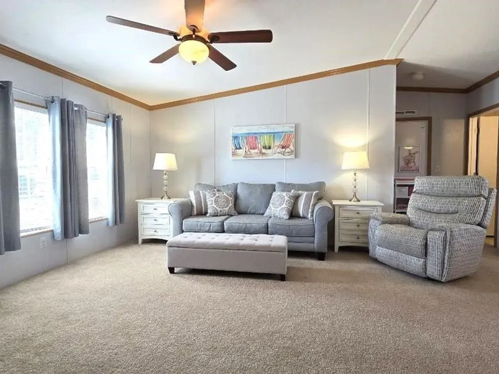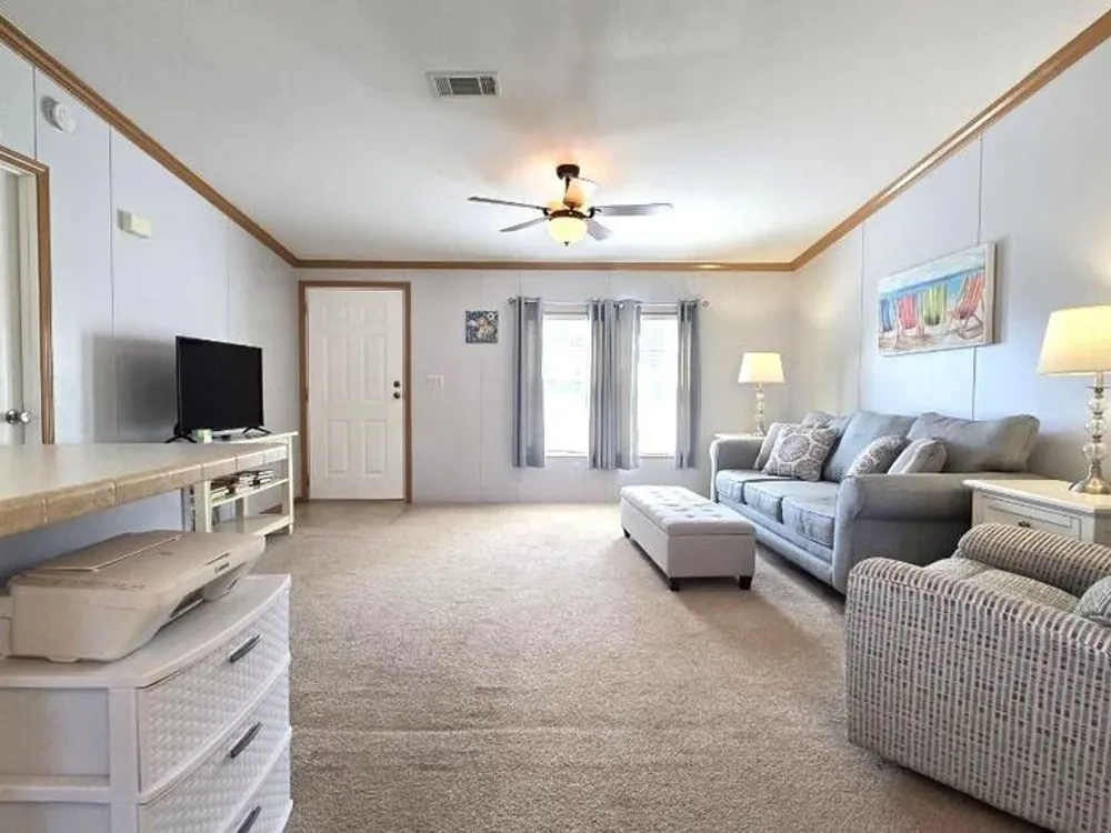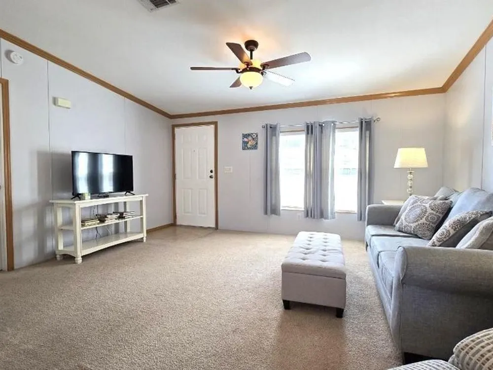 - Ceiling Fan(s), Crown Molding, Eat-in Kitchen, Living/Dining Room, Open Floorplan, Main Level Primary, Split Bedrooms, Thermostat, Walk-In Closet(s)