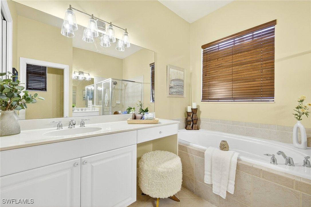 - Bedroom on Main Level, Breakfast Area, Bathtub, Coffered Ceiling(s), Dual Sinks, Eat-in Kitchen, Family/Dining Room, Living/Dining Room, Main Level Primary, Pantry, Split Bedrooms, Separate Shower, Walk-In Closet(s), High Speed Internet