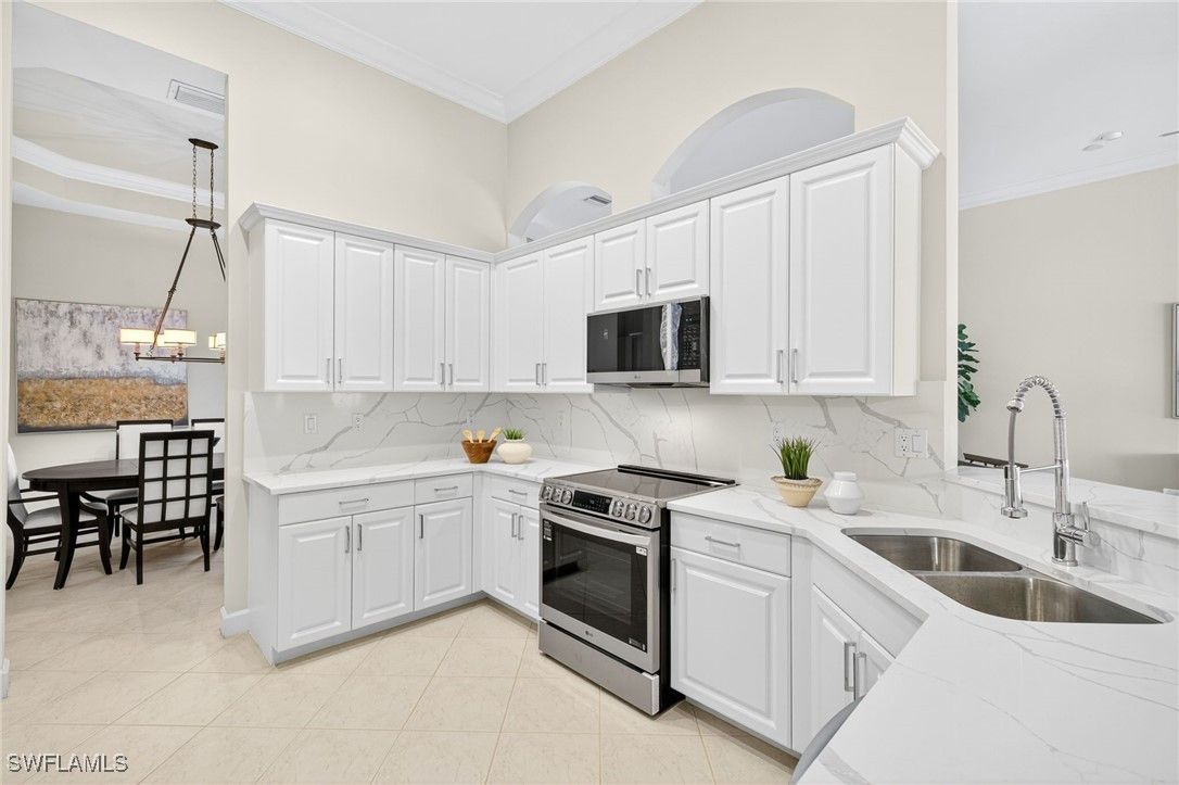 Welcome to your dream home located in the sought-after gated community of Mustang Island at Lely Resort in beautiful Naples! This stunning property boasts picturesque golf course views that can be enjoyed from the expansive screened-in lanai complete with a heated pool and spa, perfect for entertaining or relaxing in style. Inside, you'll find a culinary haven with brand new stainless steel kitchen appliances, complemented by exquisite new quartz countertops and backsplash. The primary bedroom offers plush comfort with fresh new carpet. Recent upgrades include a new tile roof in 2024 and fresh exterior paint. As a Mustang Island resident, indulge in the Players Club and Spa, a 15-acre tropical paradise offering clubhouse and Tiki Bar dining and entertainment, expansive fitness center with trainers and classes, 2 resort style pools, 1 lap pool, 13 tennis courts, 4 pickleball courts and 4 bocce courts. Lely Resort is also home to three golf courses, including one private and two public options. You'll love the convenience of being just a short distance from the vibrant shopping and dining scene of 5th Ave, as well as the pristine beaches of Naples and Marco Island. This home is the perfect blend of luxury, comfort, and location, offering you a lifestyle of unparalleled ease and enjoyment. 1 year Home-Tech Silver Plan Home Warranty included. The staged furniture is available for purchase from the Stager.