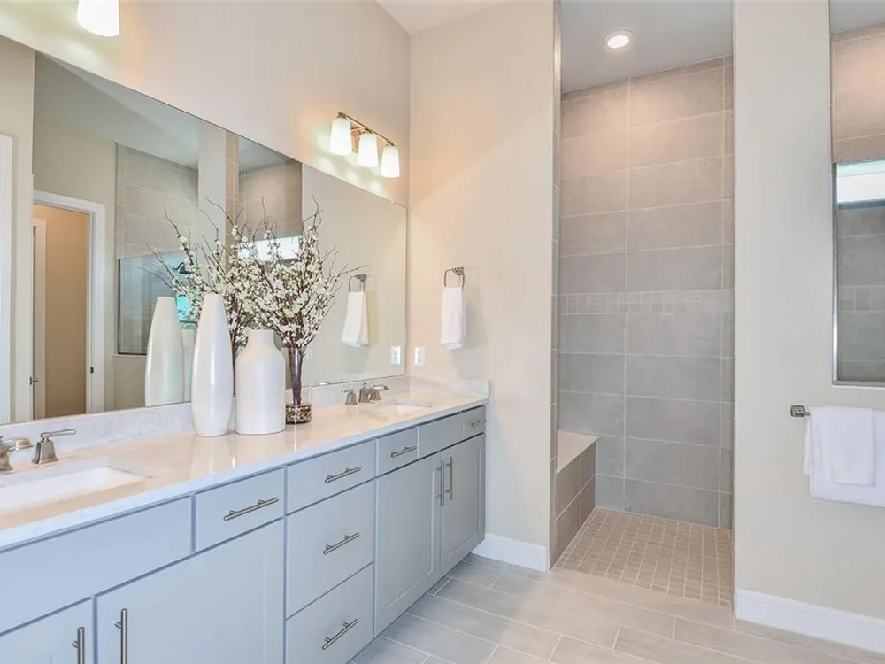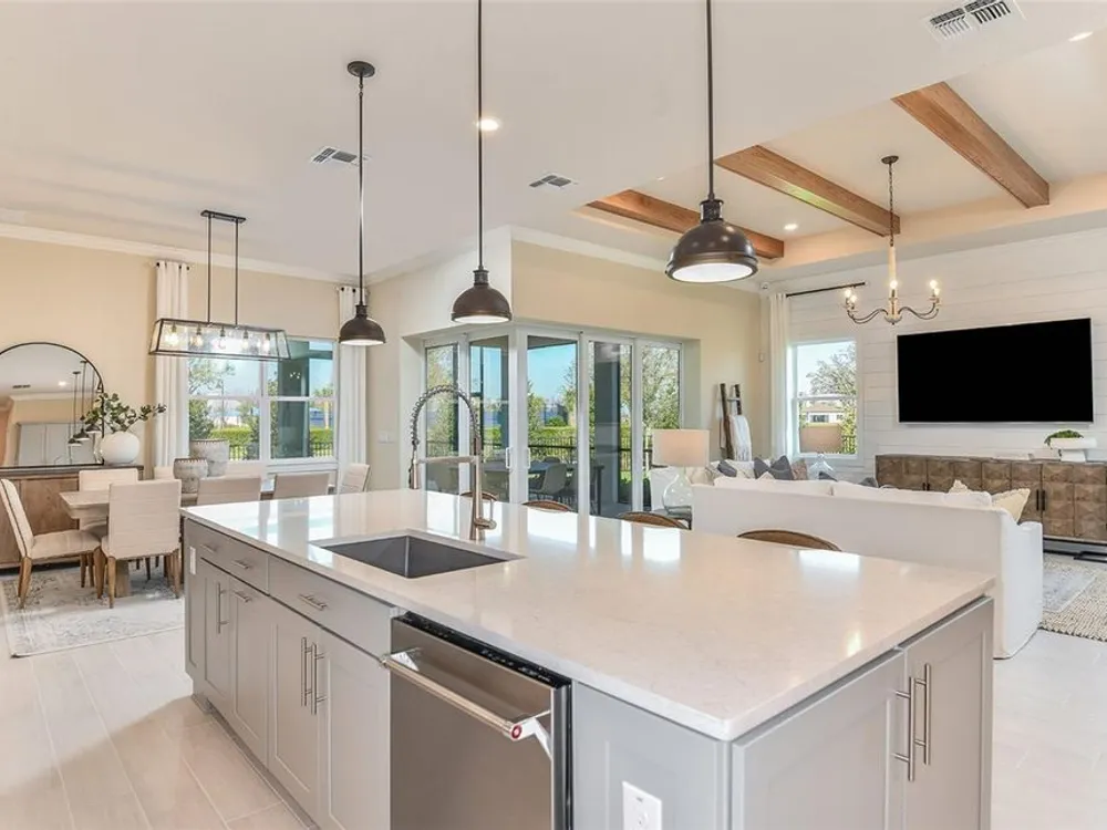 Under Construction. Final opportunities to purchase a new construction home and experience a new level of retirement living at Del Webb BayView. This active adult community is located 30 minutes from downtown Sarasota, St. Petersburg, and Tampa. BayView is centered around signature resort-style amenities so you can stay active and where your neighbors become long-time friends. This stunning Renown floor plan is the dream home you’ve been looking for. This home has all the upgrades you’ve ever wanted with a gourmet kitchen featuring an oversized island, single bowl granite sink, stylish white cabinets, upgraded quartz countertops, tiled backsplash, Whirlpool stainless steel appliances including a built-in oven and microwave, cooktop with a range hood, dishwasher and refrigerator. There is luxury vinyl plank flooring in the main living areas, flex room and bedrooms and 12”x24” tile flooring in the baths and laundry room. The Owner’s suite boasts 2 large walk-in closets and the Owner’s bath has dual sinks and a walk-in shower. Bedrooms 2 and 3 both have private full baths and walk-in closets, and there’s a versatile enclosed flex room, ideal for a home office or entertaining space. Additional features and upgrades include speckled epoxy flooring in the 3-car garage with 4’ extension, upgraded interior doors, 2” faux wood blinds throughout, impact glass windows, upgraded lighting and door hardware, LED downlights in the gathering room and a Smart Home technology package with video doorbell. Enjoy peace of mind with Pulte’s transferable, 10-year Limited Structural Warranty that covers materials and workmanship in the 1st year, workability of plumbing, electrical, HVAC, and other mechanical systems through the 2nd year, various types of water infiltration and internal leaks through the 5th year, and the structural integrity of the home through the 10th year. Plus, we’re currently offering limited-time incentives and below-market rates!